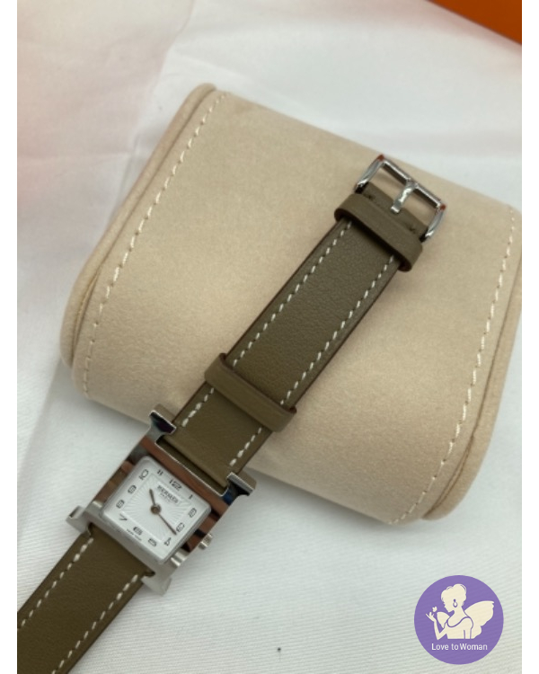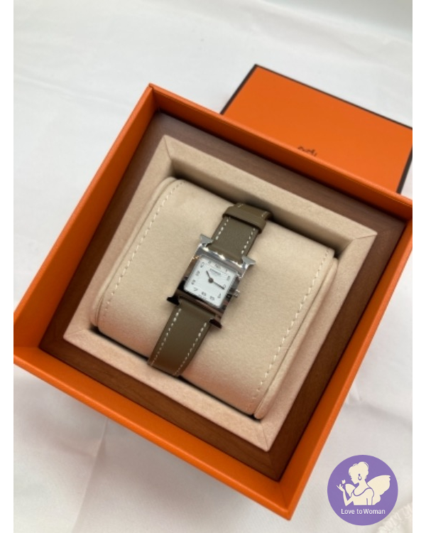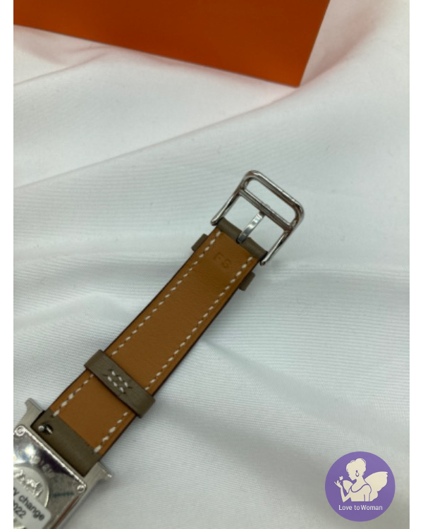 全新Hermes 大象灰銀色H-Hour 手錶 PM尺寸