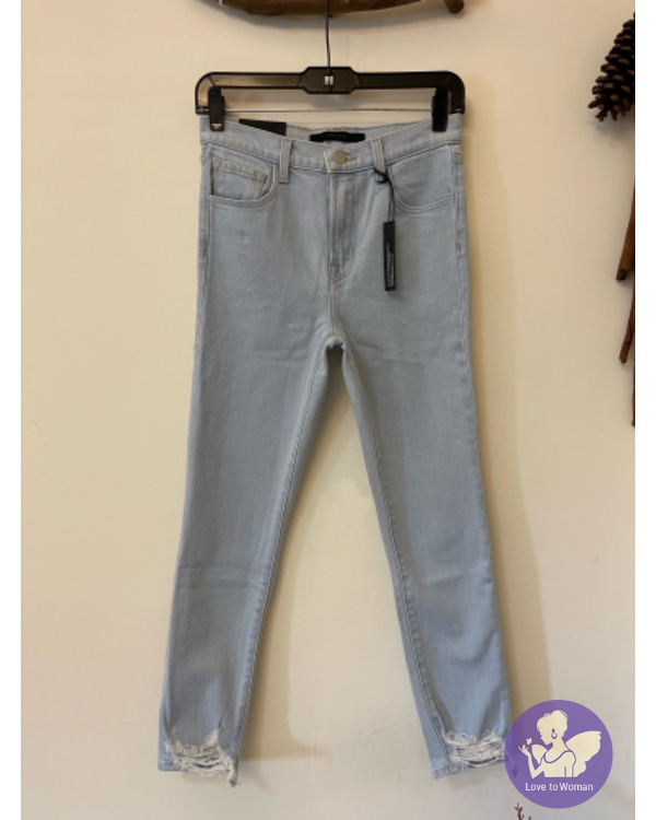 全新美國牛仔王牌J BRAND淺藍毛邊刷破skinny牛仔褲