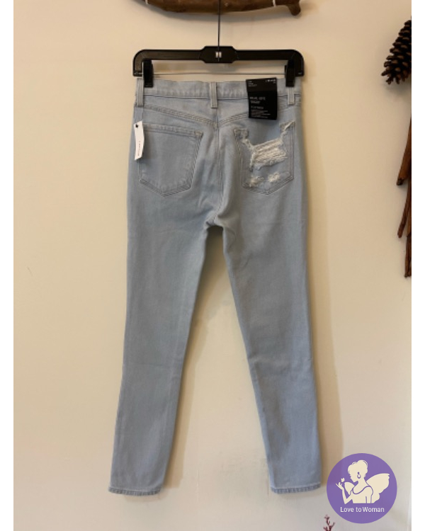 首頁 精品服飾 全新美國牛仔王牌J BRAND淺藍毛邊刷破skinny牛仔褲