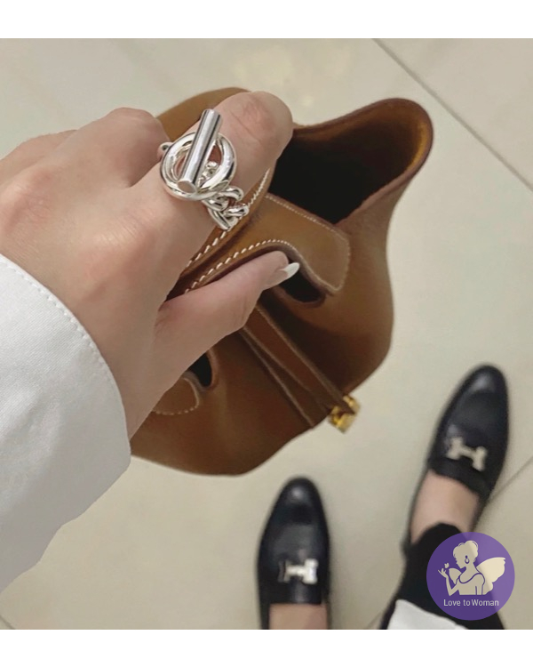 Hermès 愛馬仕 經典925純銀Croisette ring 搶手 缺貨 小Q 戒指 52 號 全新✨