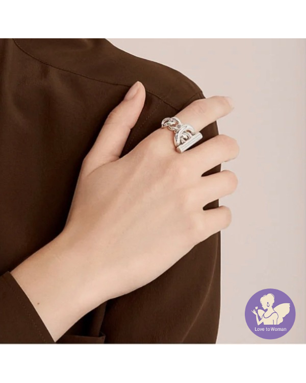 首頁 精品手錶 Hermès 愛馬仕 經典925純銀Croisette ring 搶手 缺貨 小Q 戒指 52 號 全新✨