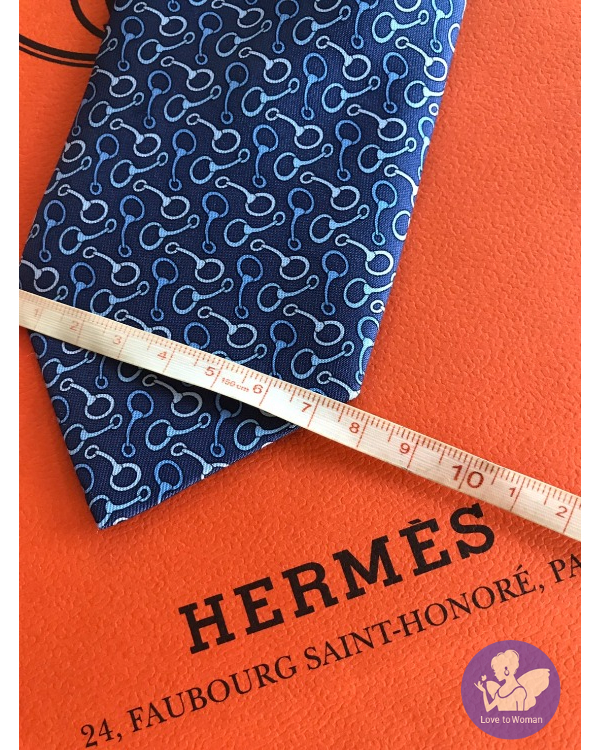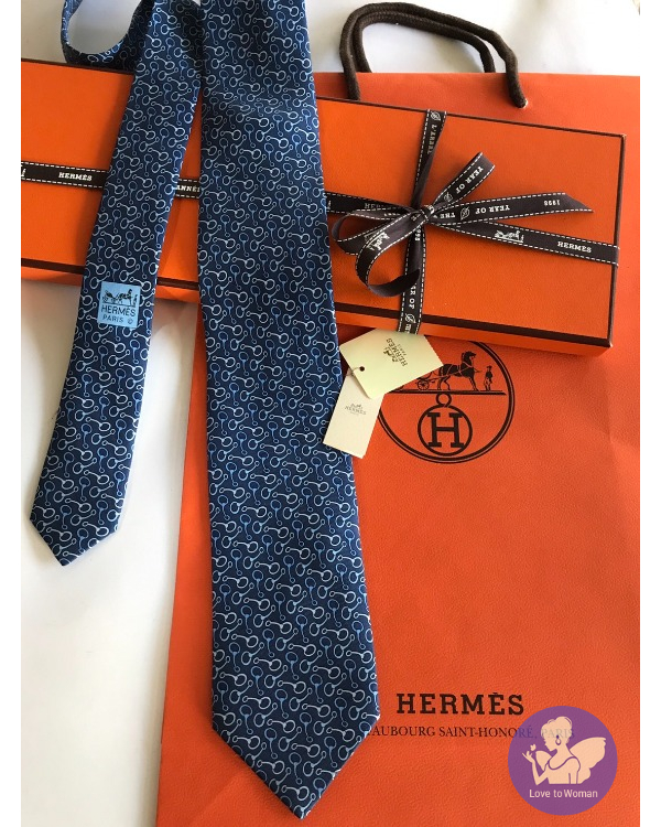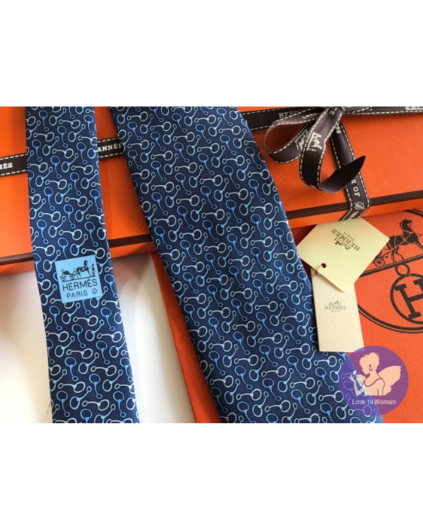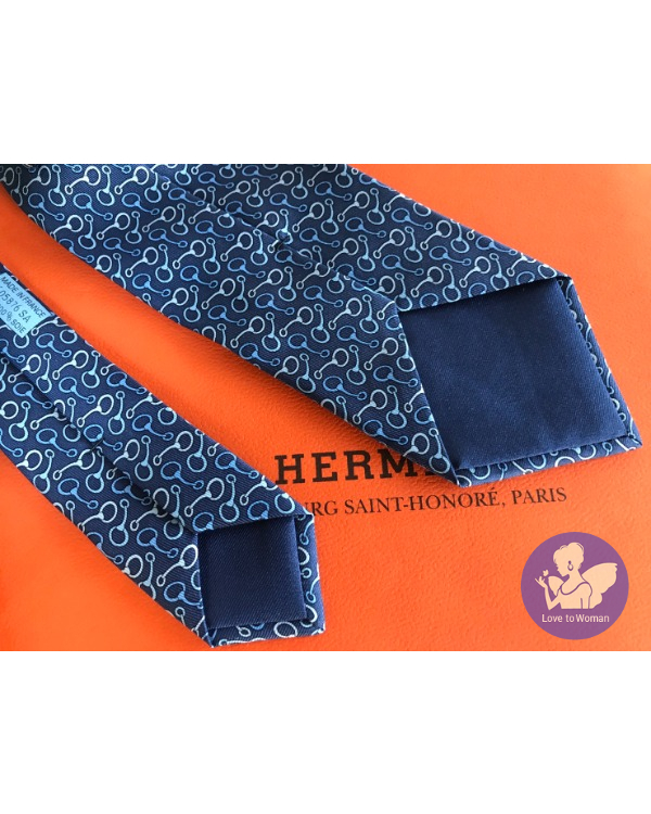 ~HERMES 全新 藍色底 馬蹄鎖圖領帶