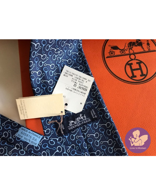 首頁 精品手錶 ~HERMES 全新 藍色底 馬蹄鎖圖領帶