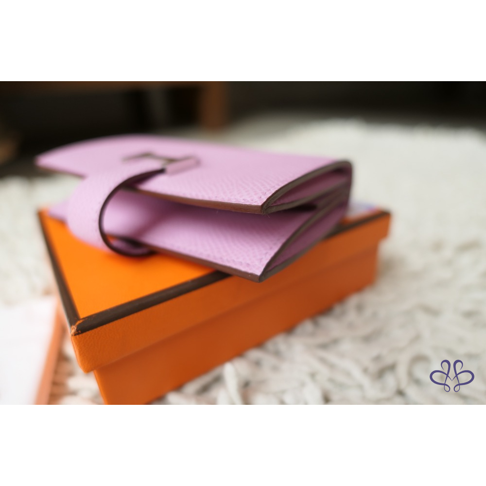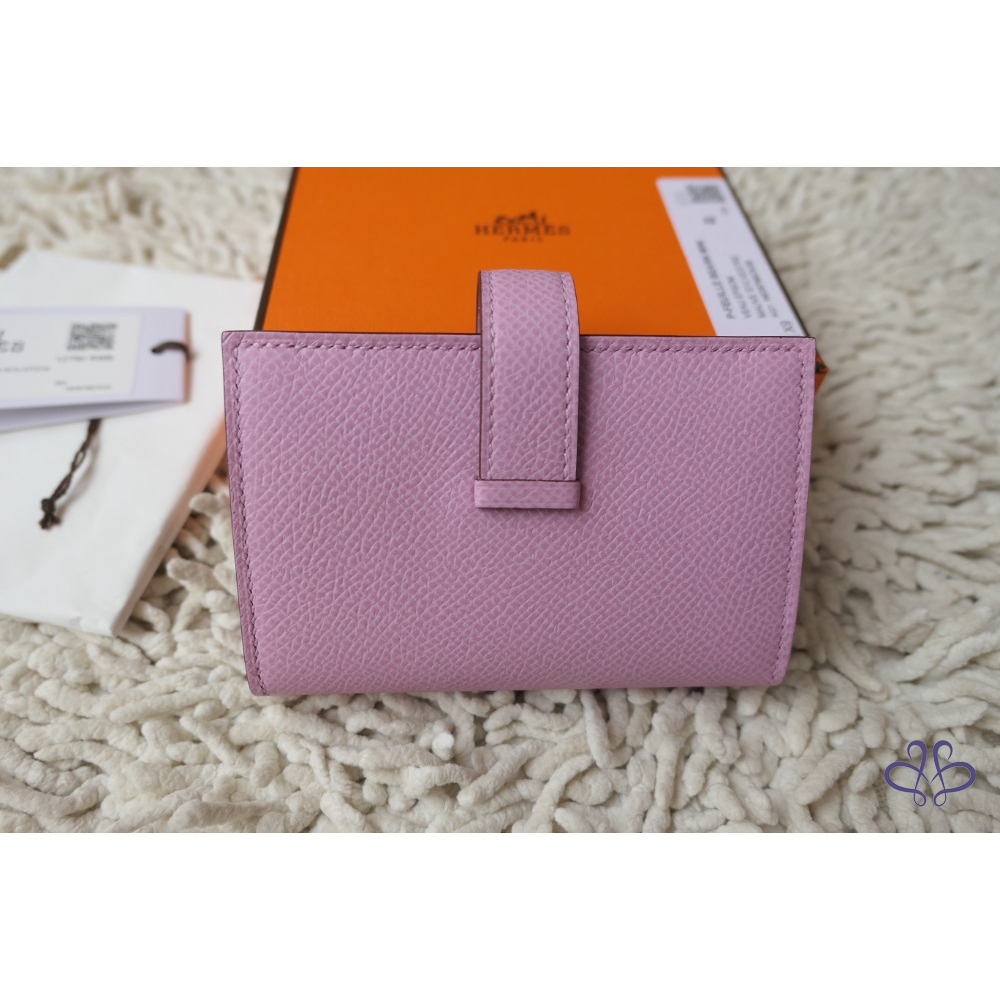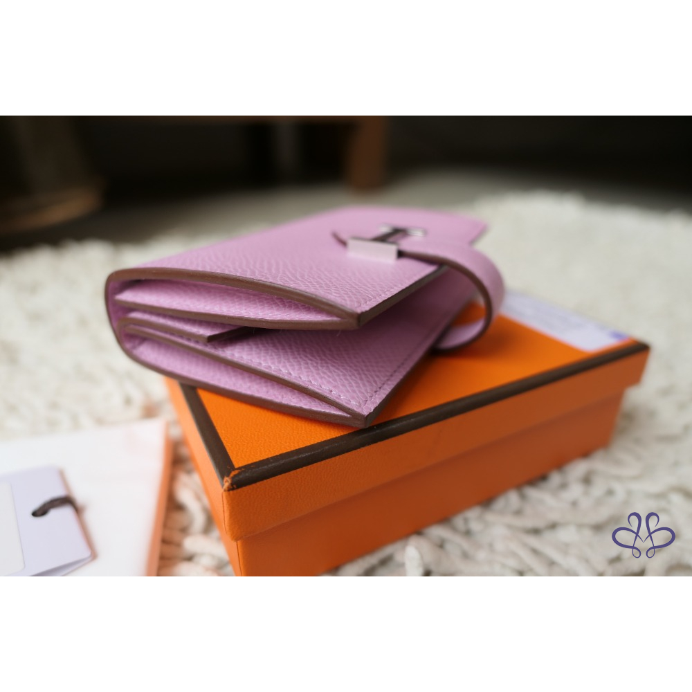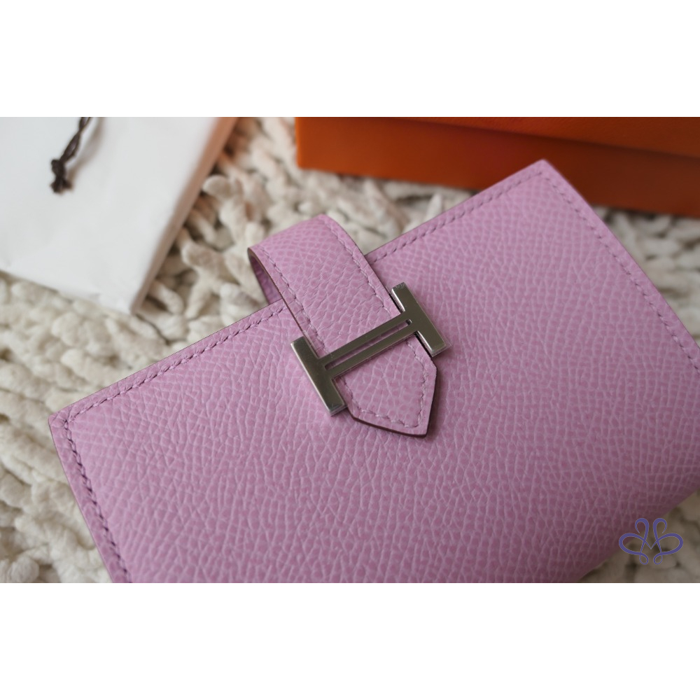 愛馬仕HERMÈS MINI BEARN 小短夾/零錢卡包 X9錦葵紫 Epsom 銀扣 (U刻)