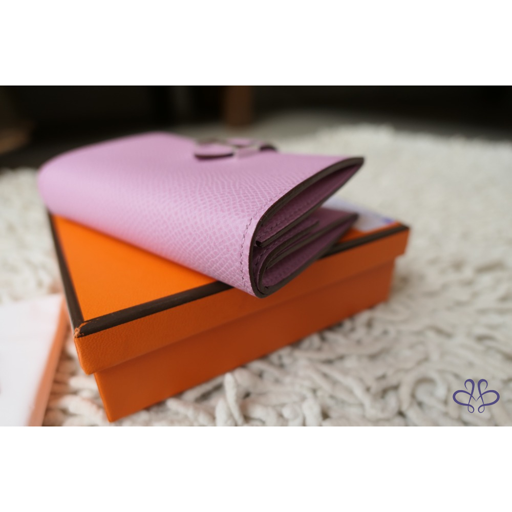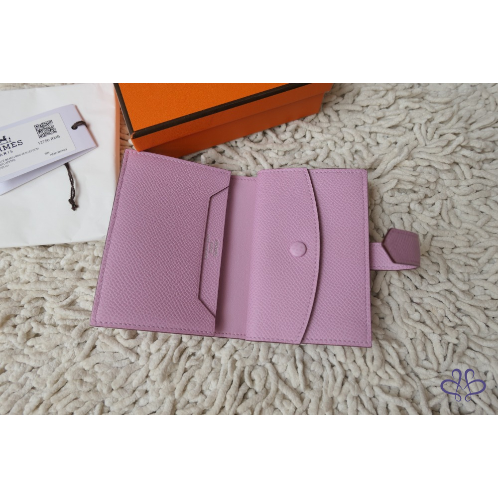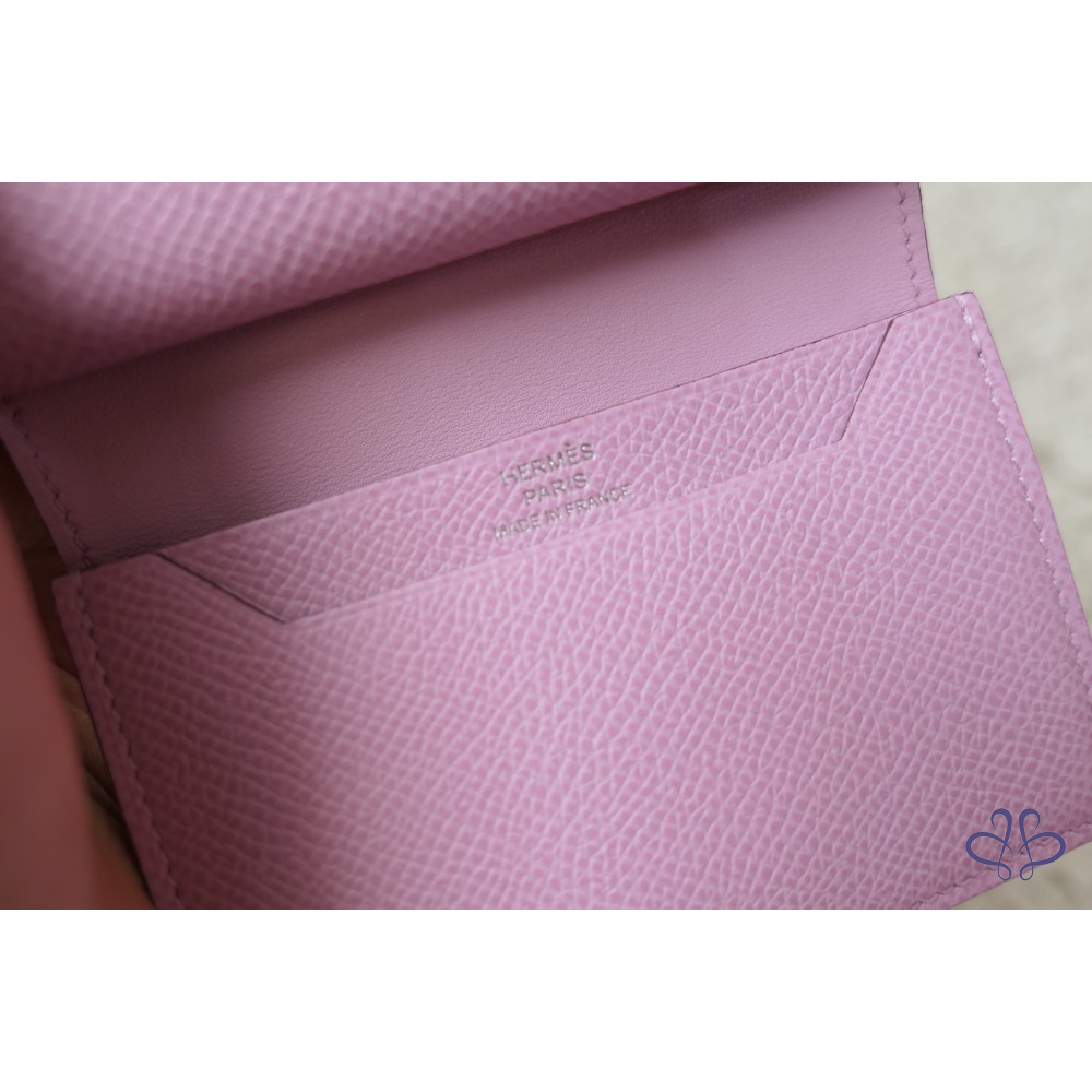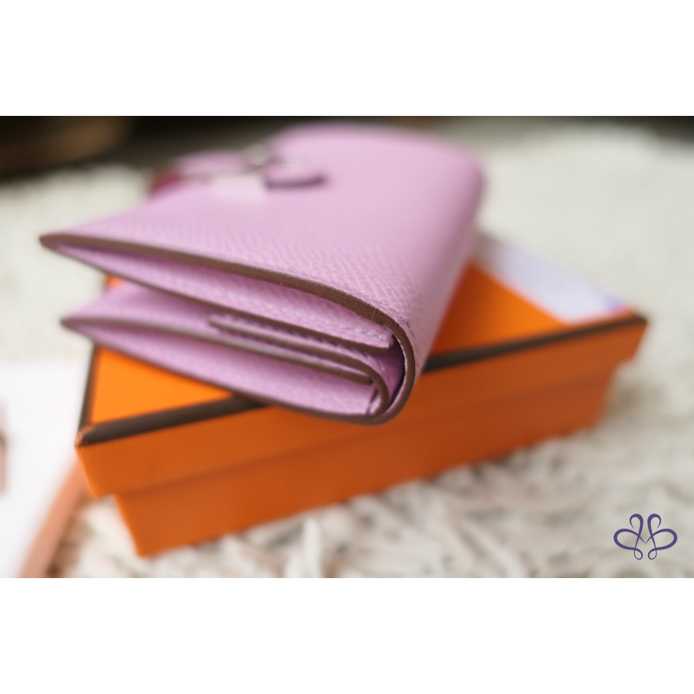 愛馬仕HERMÈS MINI BEARN 小短夾/零錢卡包 X9錦葵紫 Epsom 銀扣 (U刻)