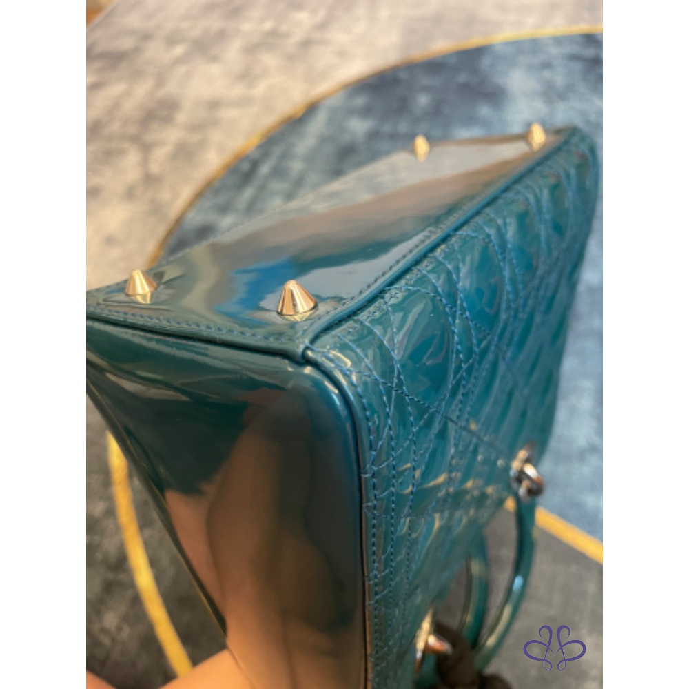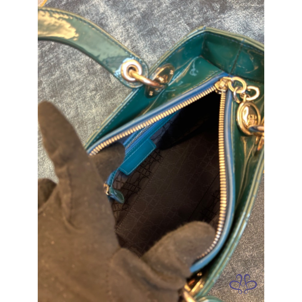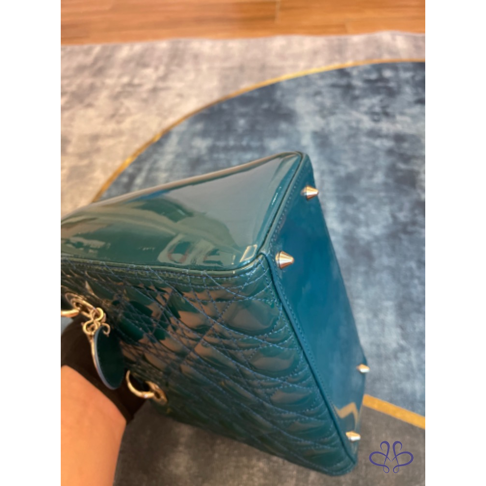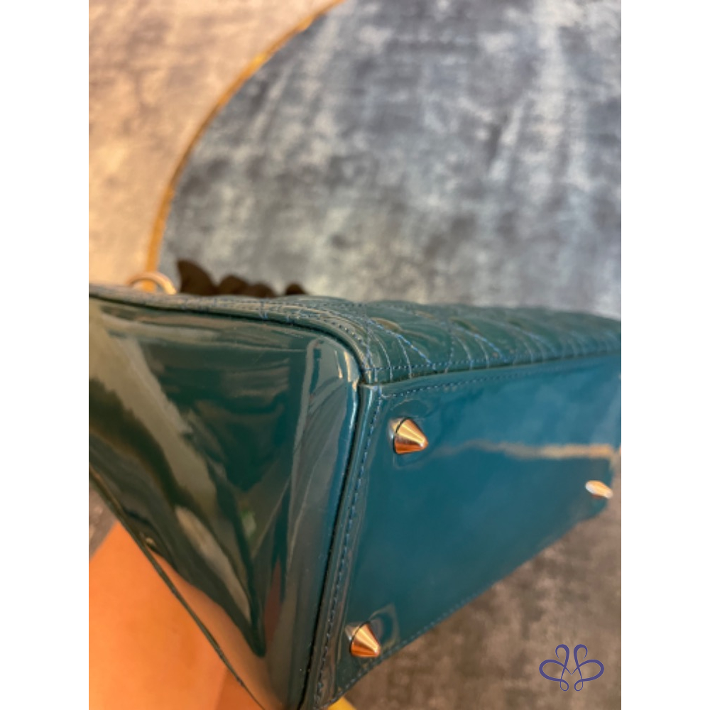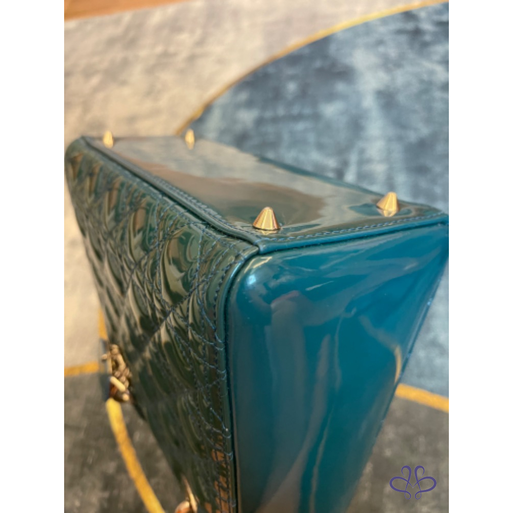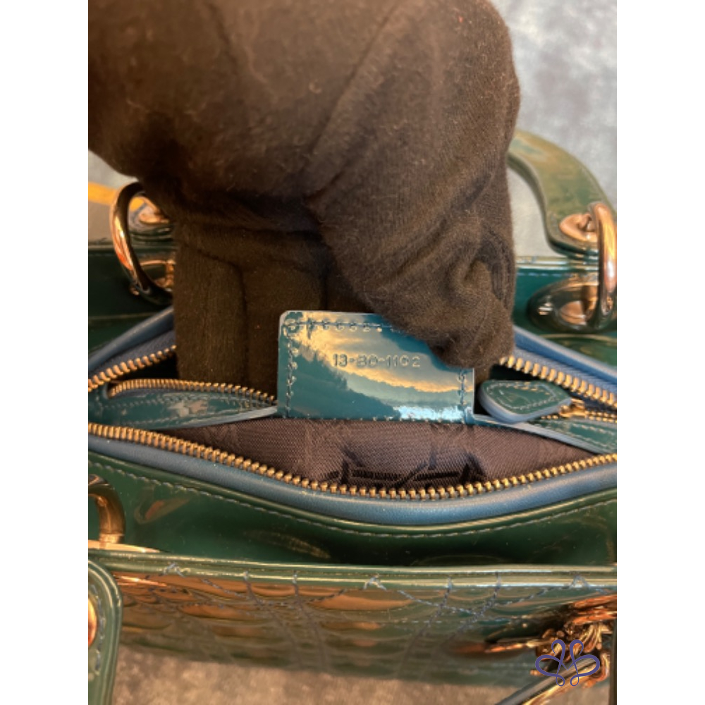 【商品名稱】Dior 黛妃包中號綠色漆皮