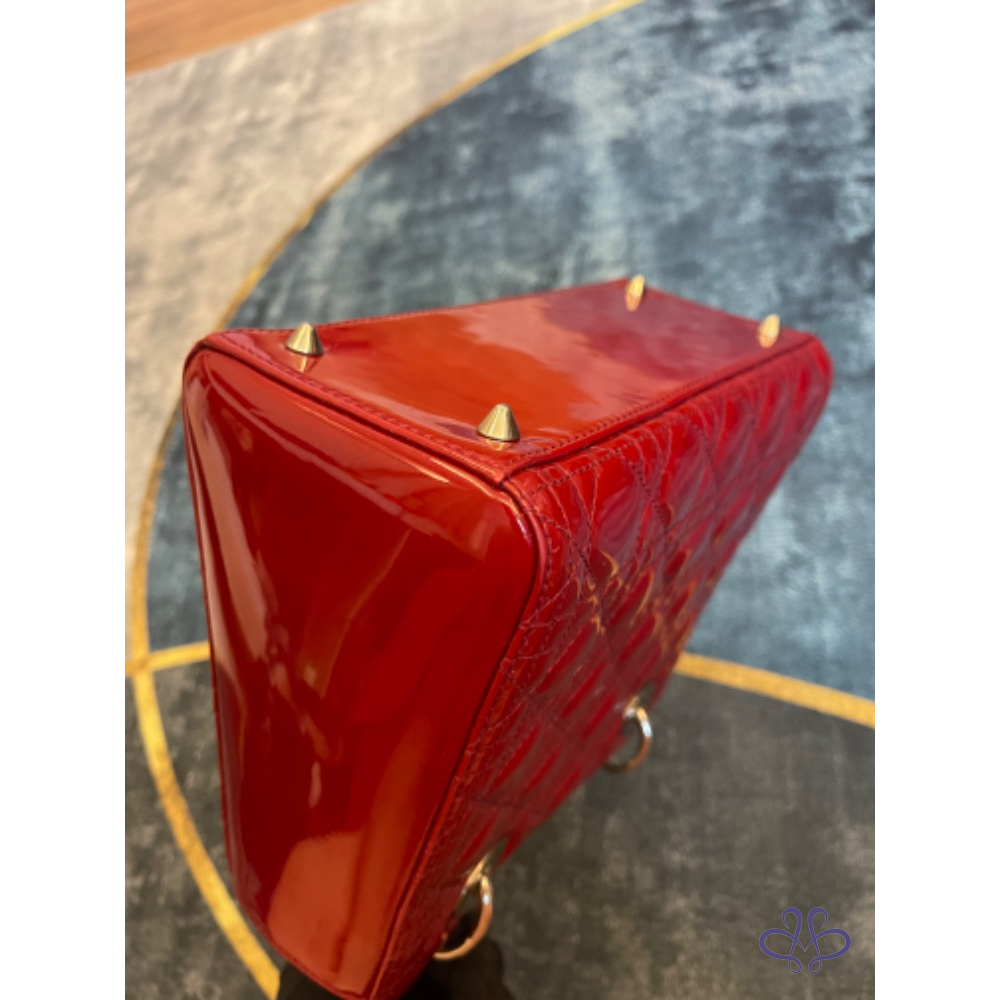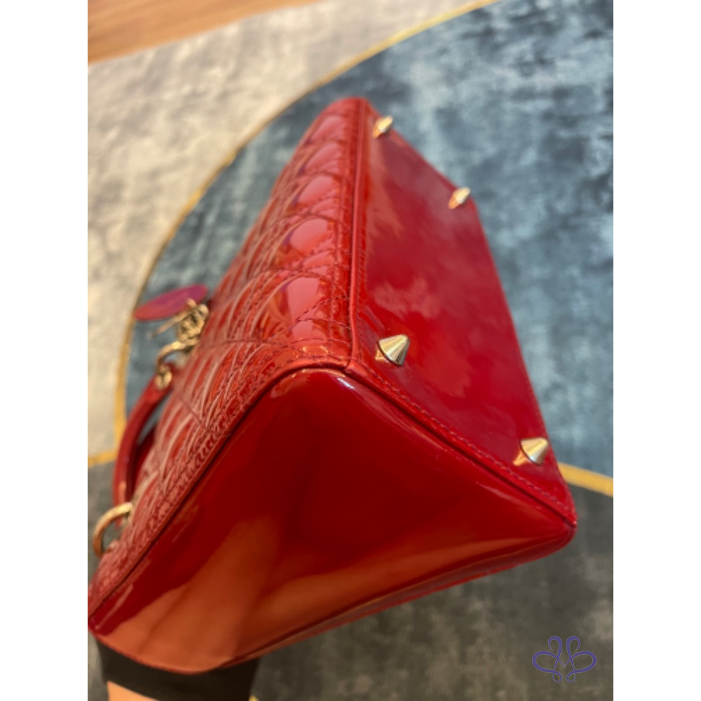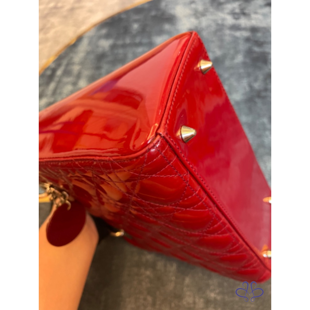 【商品名稱】Dior 黛妃包中號紅色漆皮