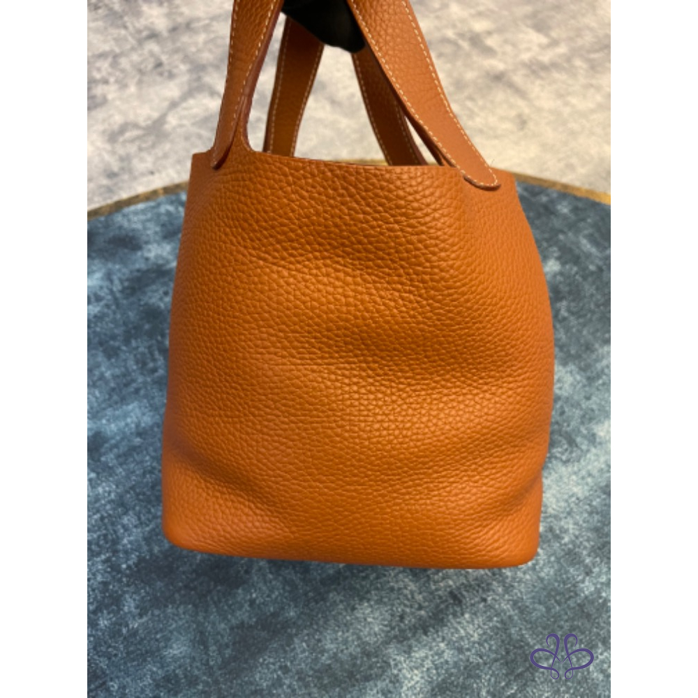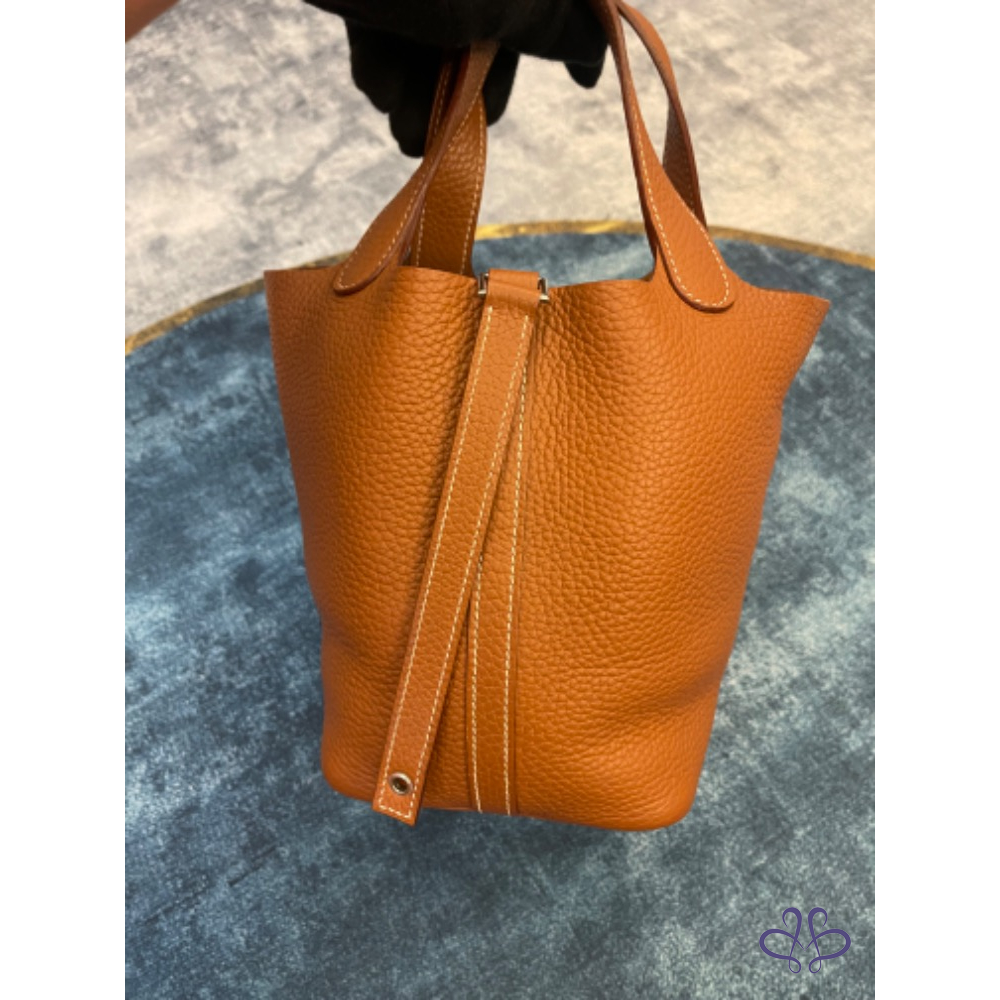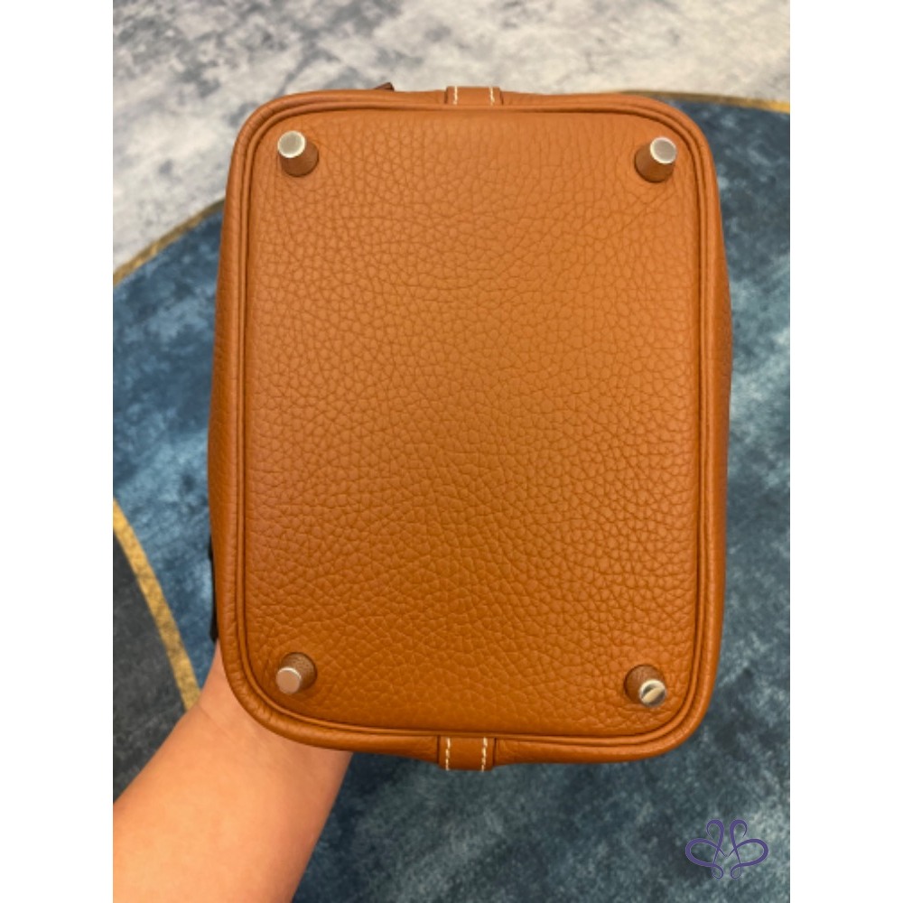 產品信息 ❤️感謝版大審核成功❤️ 寵編:A032013 【商品名稱】愛馬仕菜籃子 金棕銀 【商品尺寸】18公分 【新舊陳述】方塊R 2015年的購證 【商品售價】89999 【交寄方式】郵寄、面交 【附件】塵套 【備注】外部皮革沒有任何傷,皮革紋路深色澤亮,內裏底部和上方有些重使用痕跡有拍出來