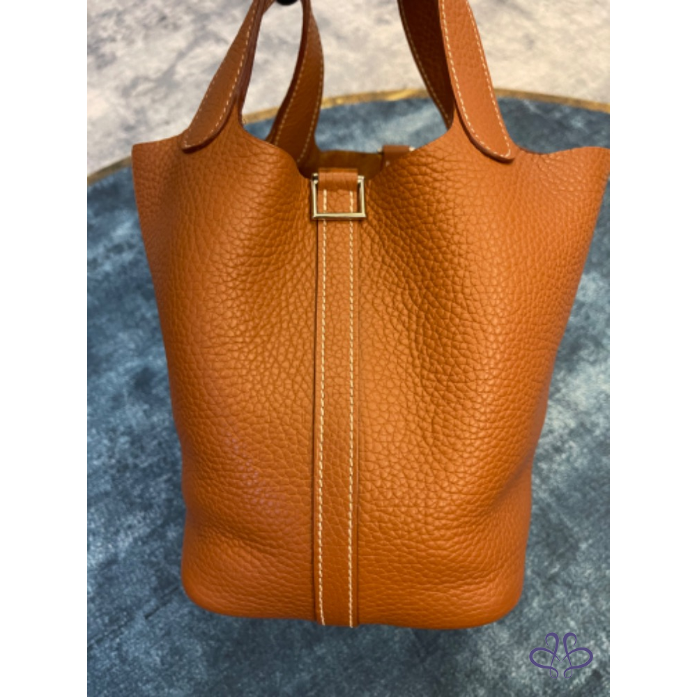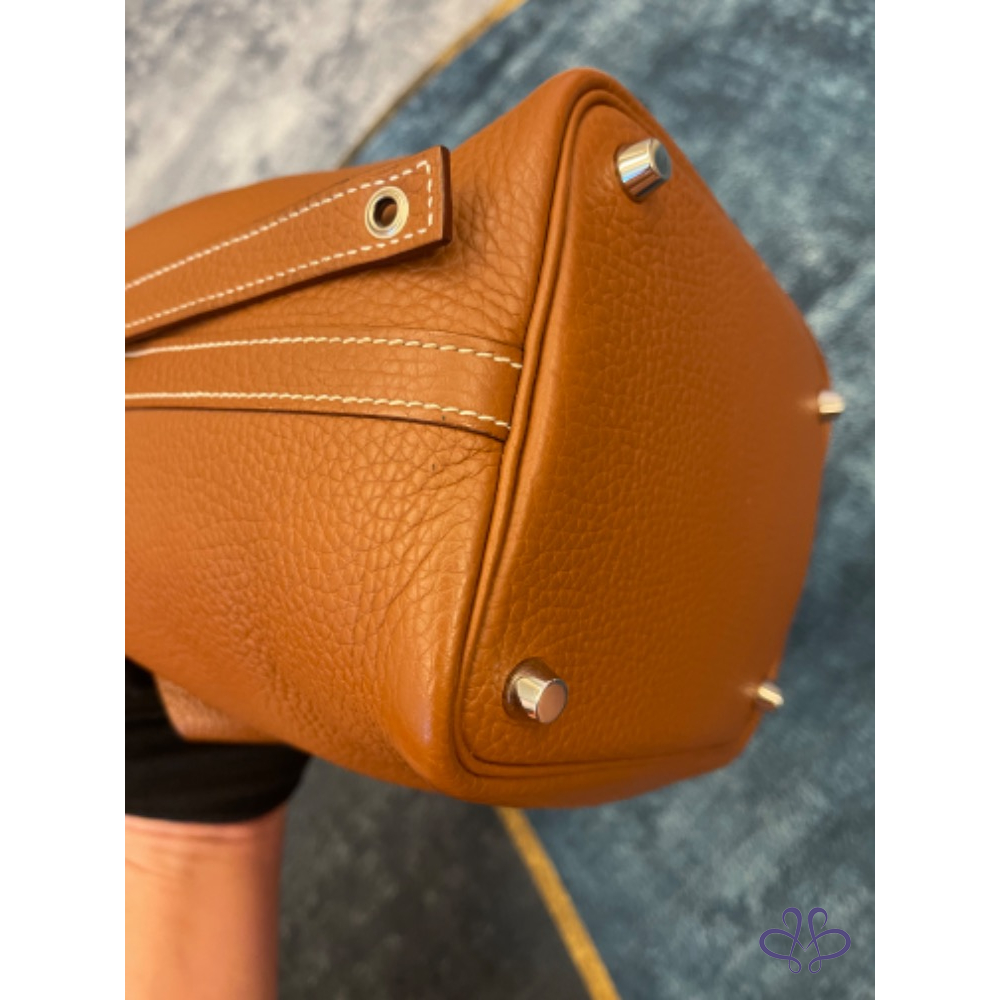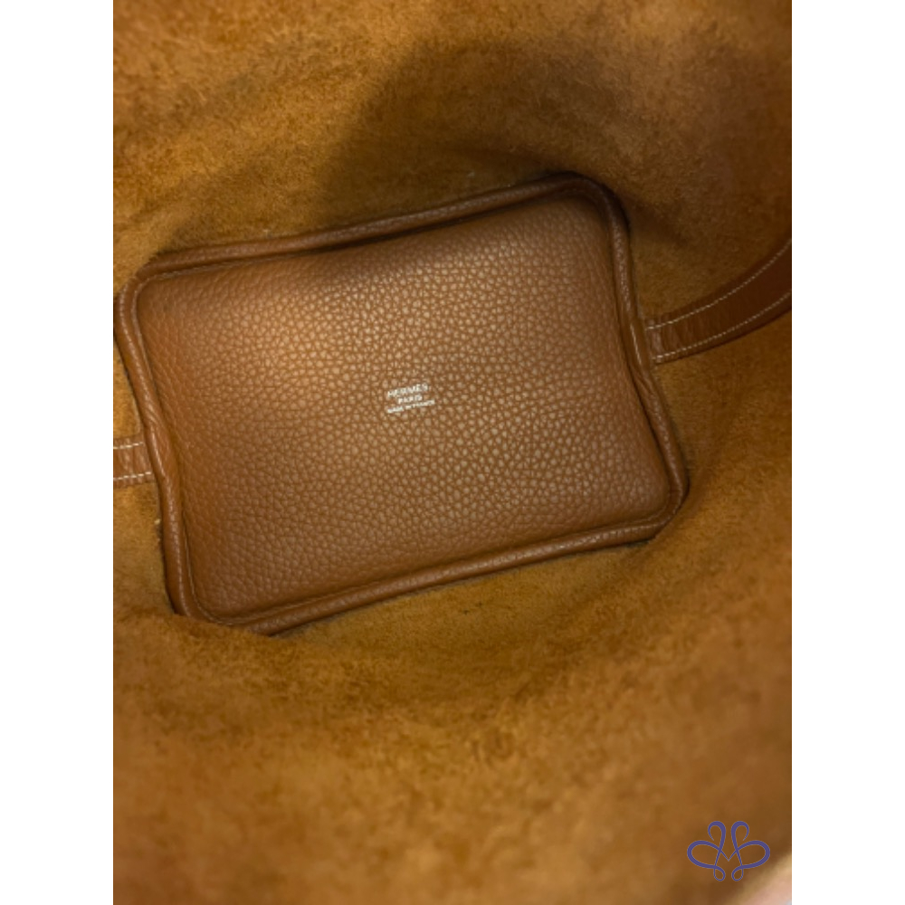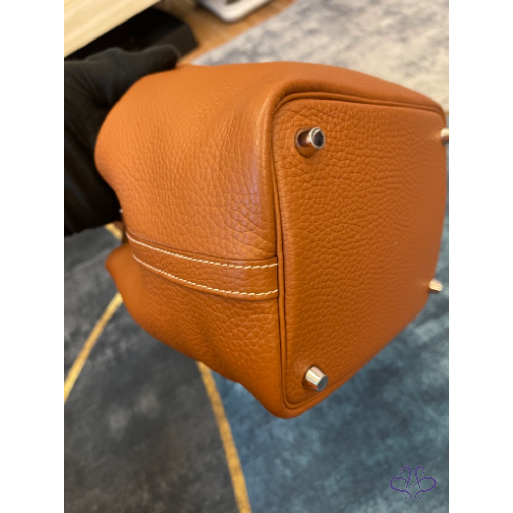 產品信息 ❤️感謝版大審核成功❤️ 寵編:A032013 【商品名稱】愛馬仕菜籃子 金棕銀 【商品尺寸】18公分 【新舊陳述】方塊R 2015年的購證 【商品售價】89999 【交寄方式】郵寄、面交 【附件】塵套 【備注】外部皮革沒有任何傷,皮革紋路深色澤亮,內裏底部和上方有些重使用痕跡有拍出來