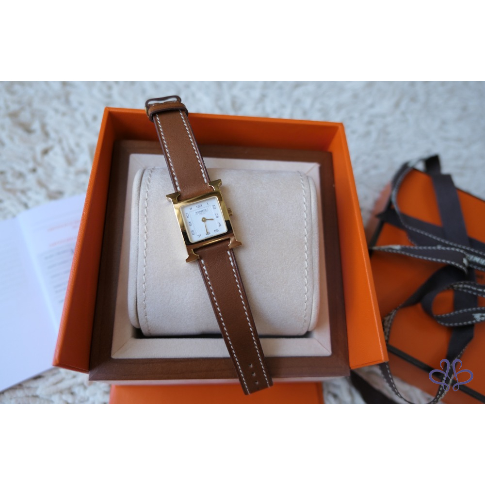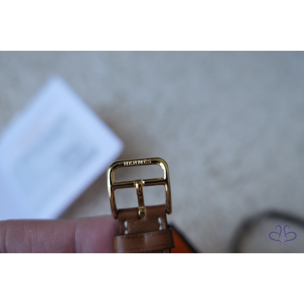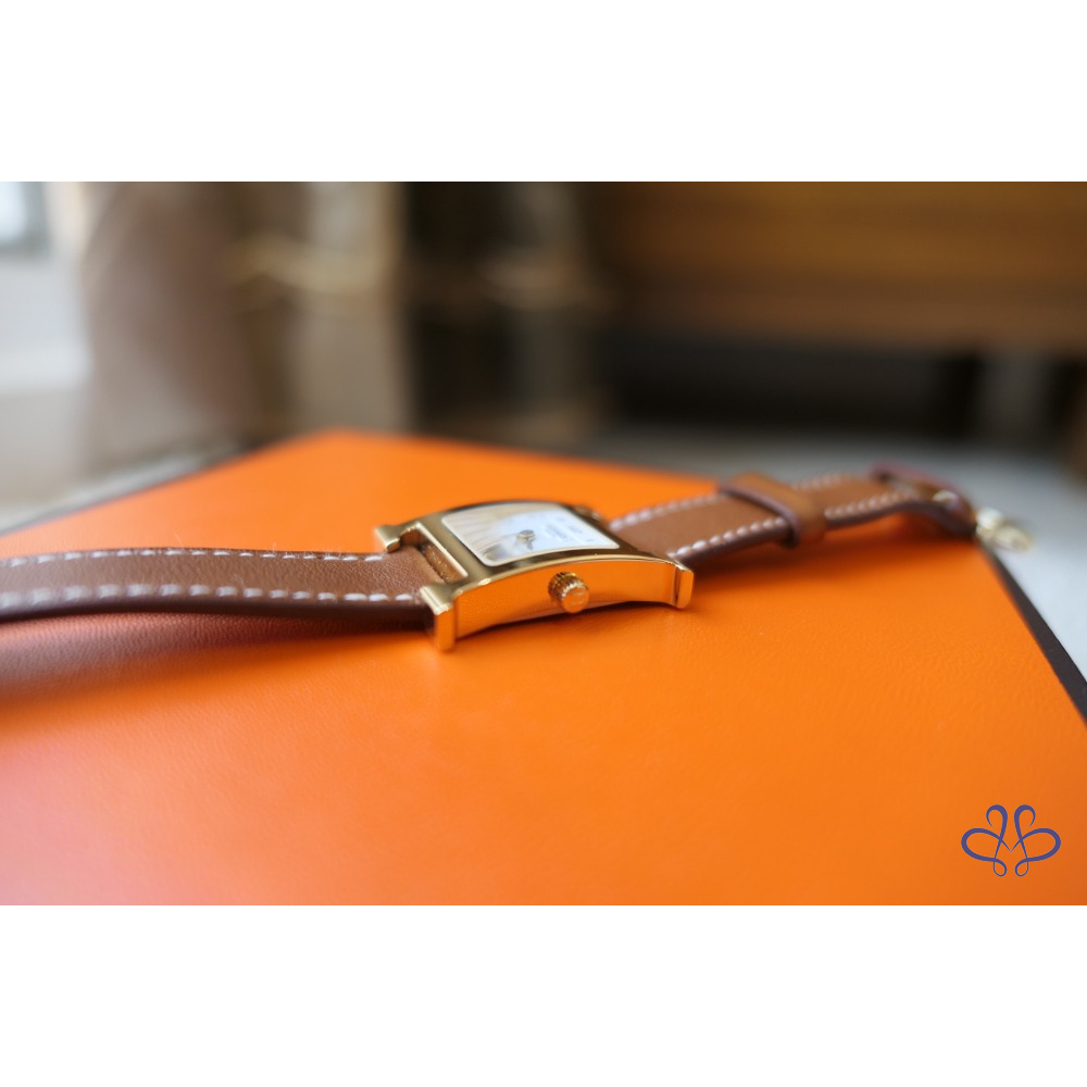 HERMES Heure 手錶 金框+ 原色natural Barenia小牛皮錶帶