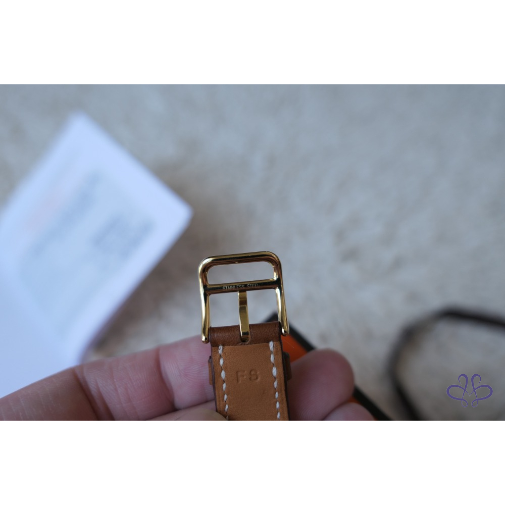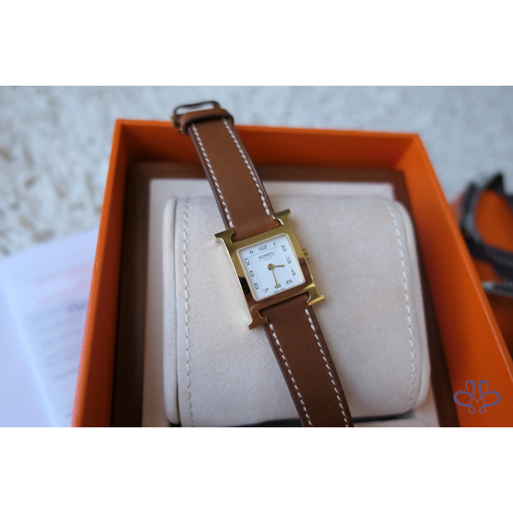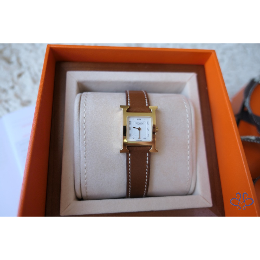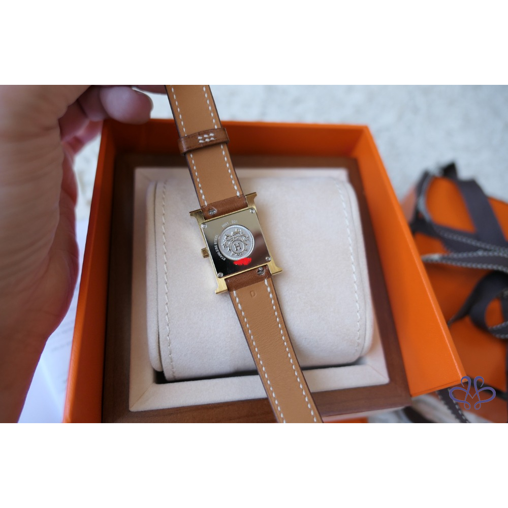 HERMES Heure 手錶 金框+ 原色natural Barenia小牛皮錶帶