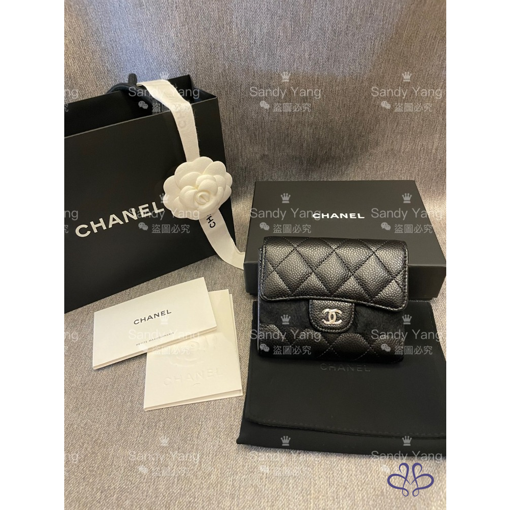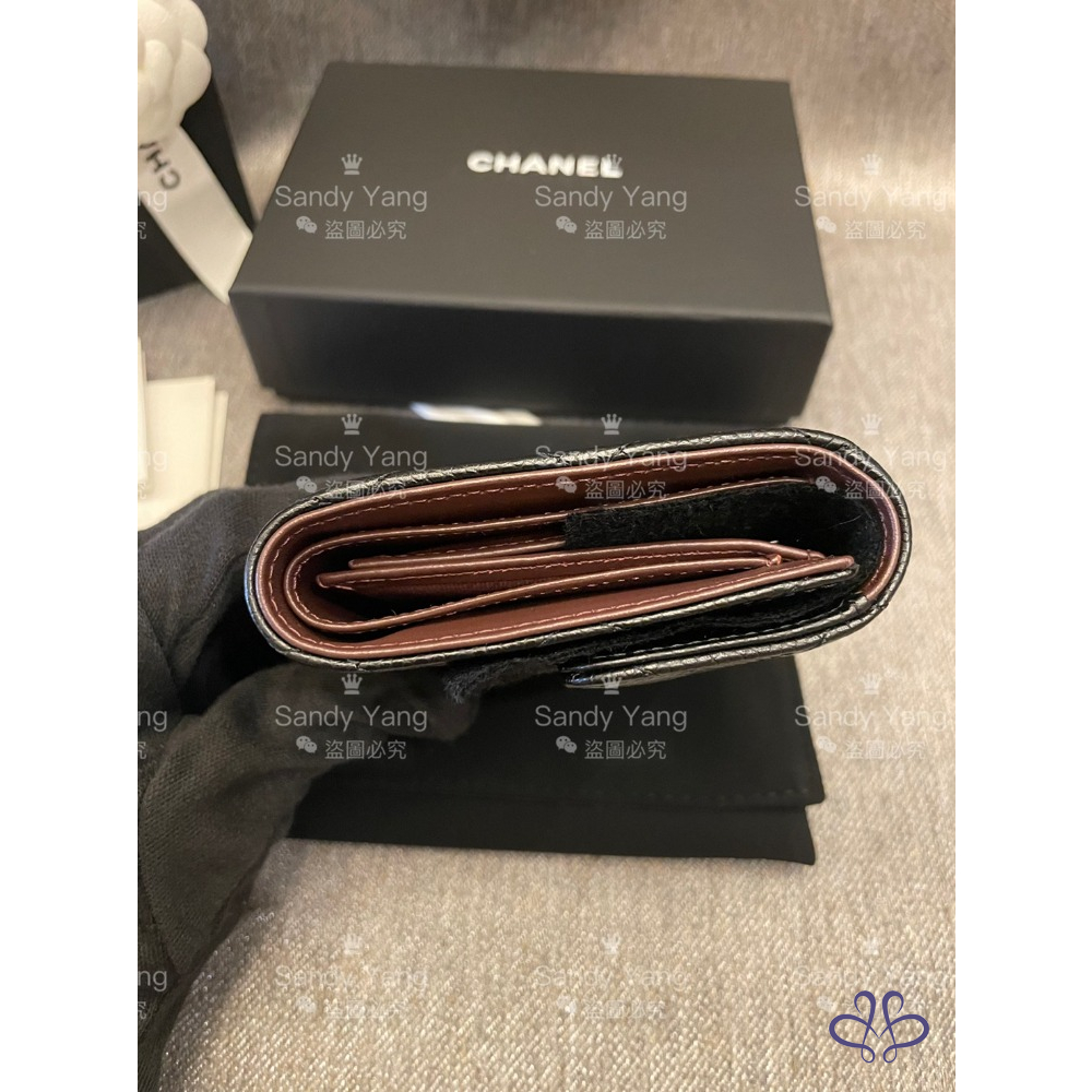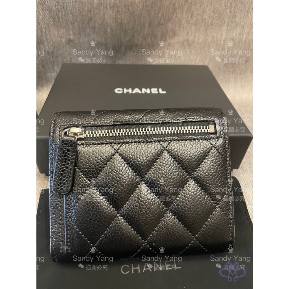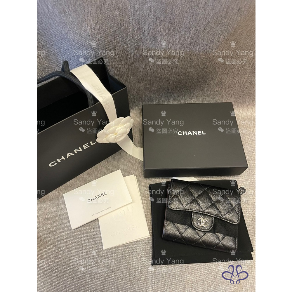 香奈兒 三折短夾黑銀荔枝 全新全配芯片款