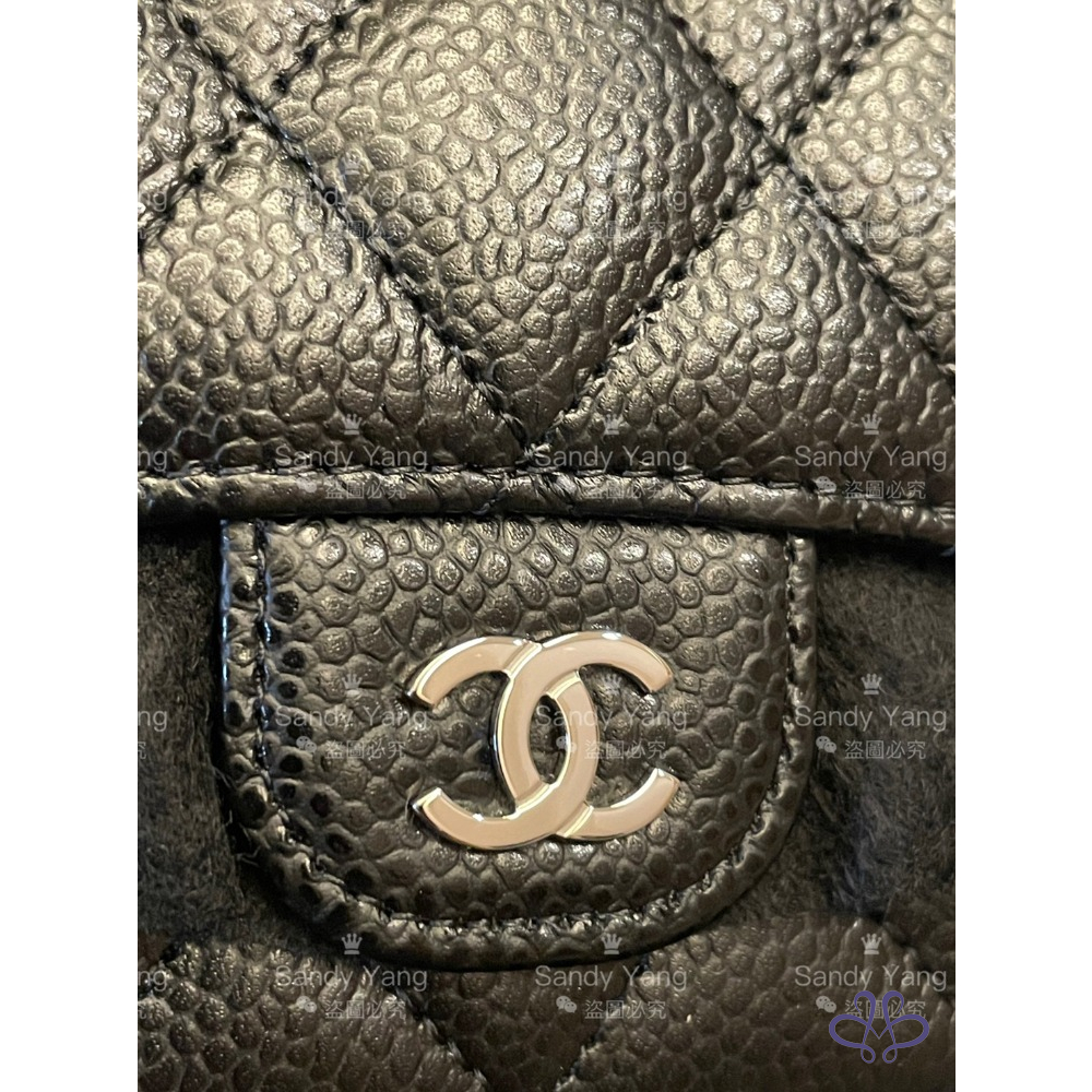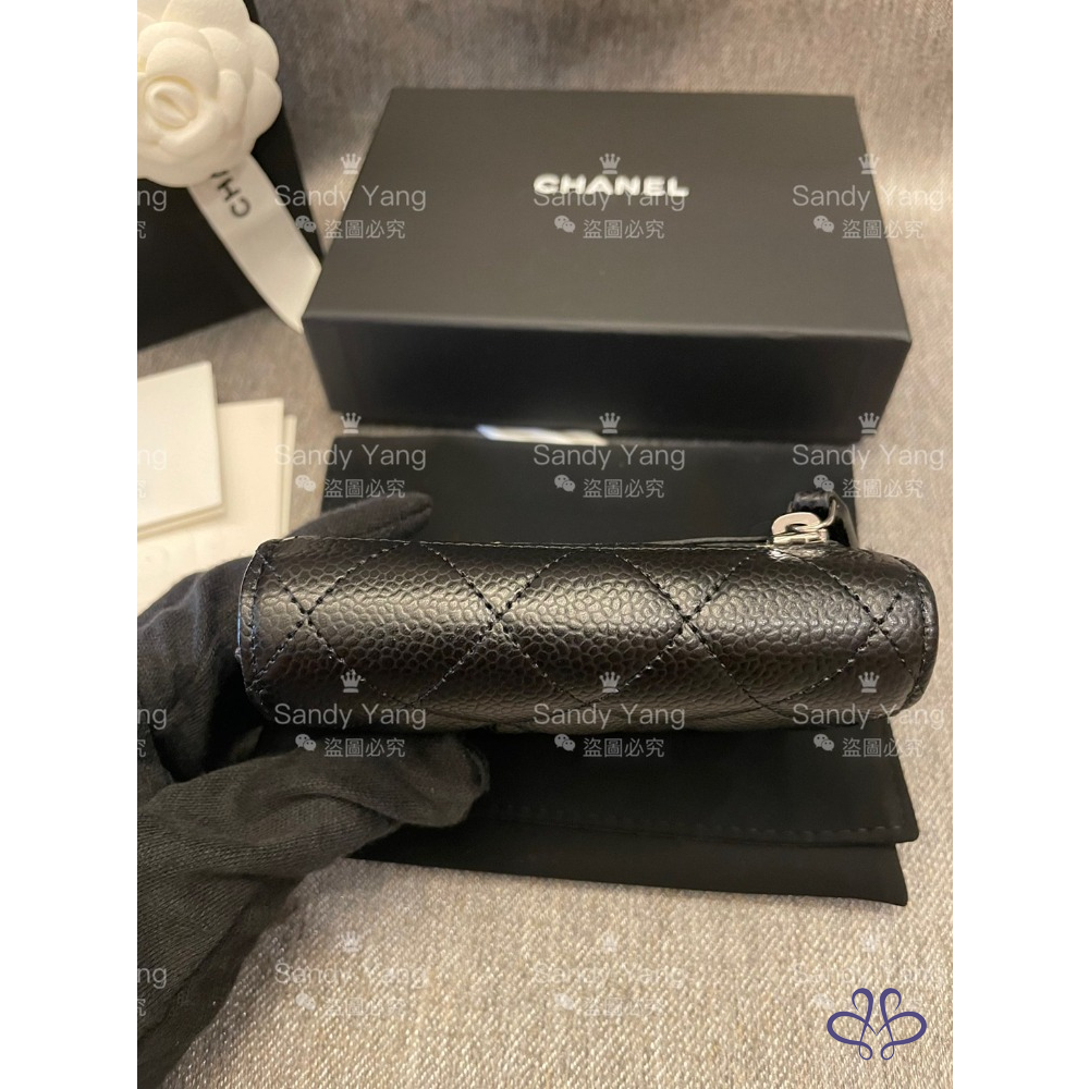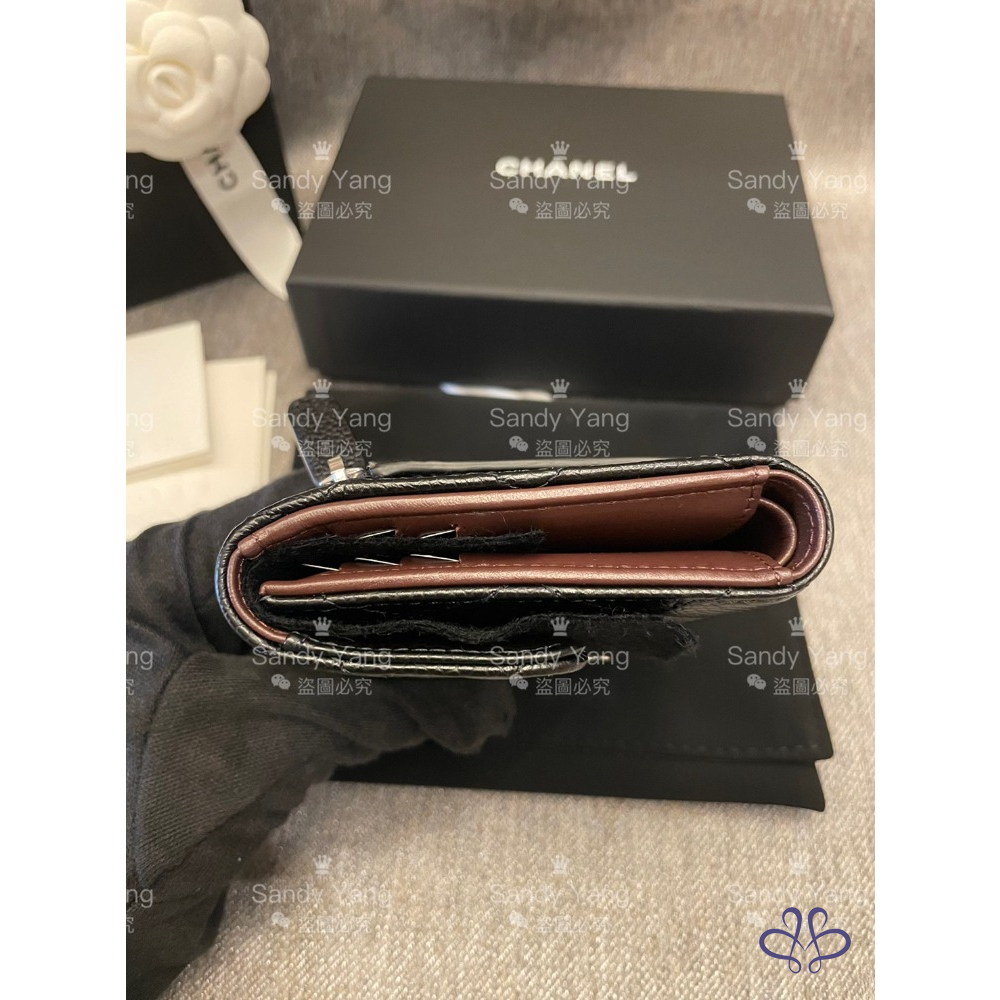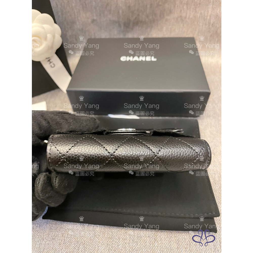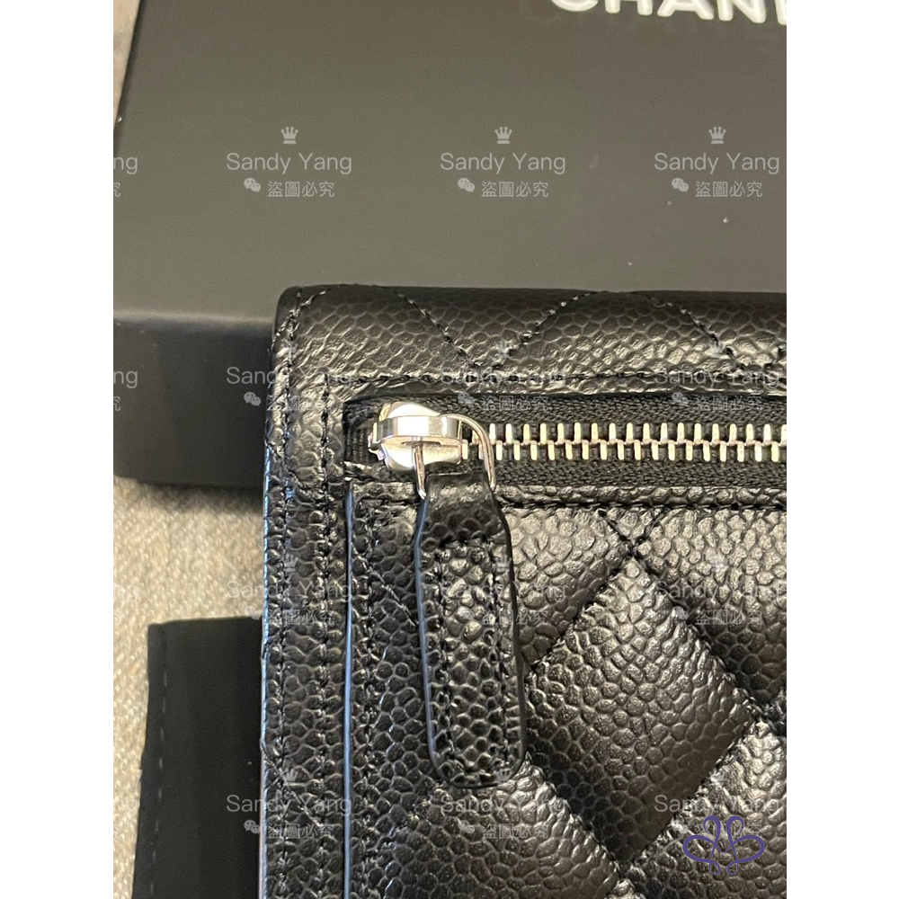 香奈兒 三折短夾黑銀荔枝 全新全配芯片款