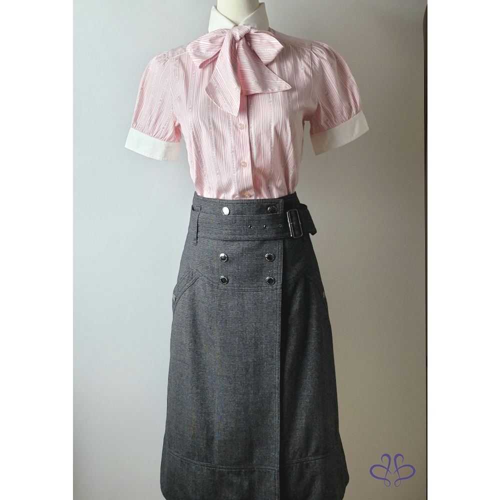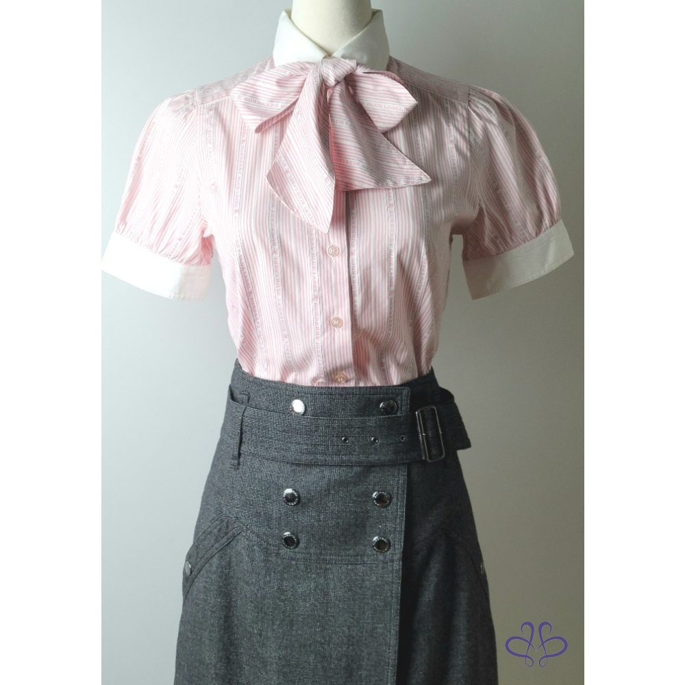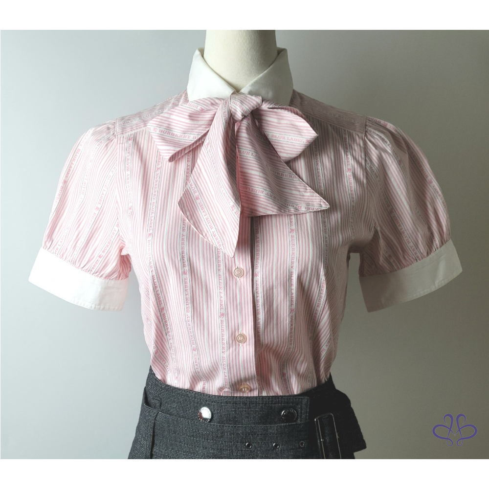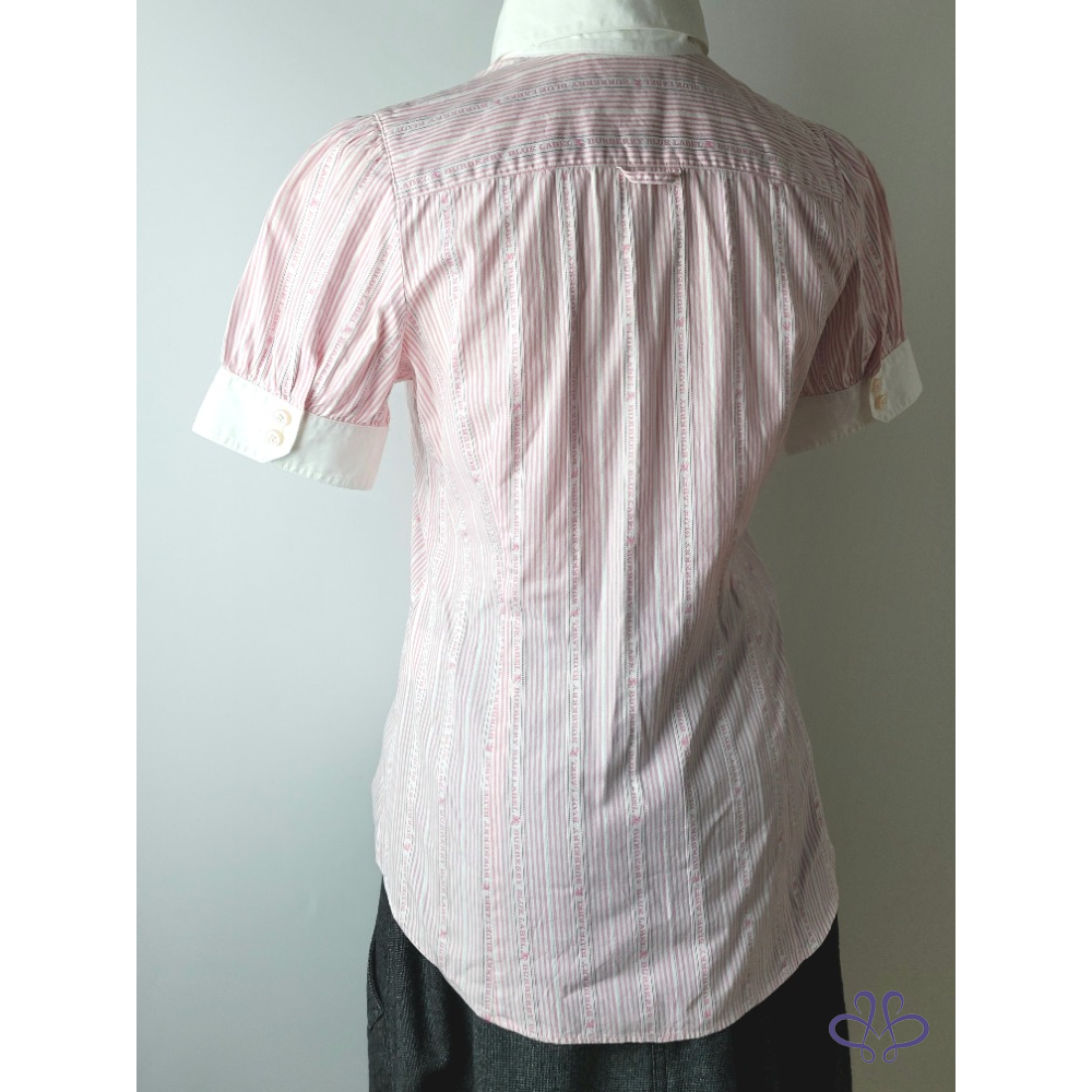 ~BURBERRY 短袖粉色品牌字體LOGO條紋白領上衣38號
