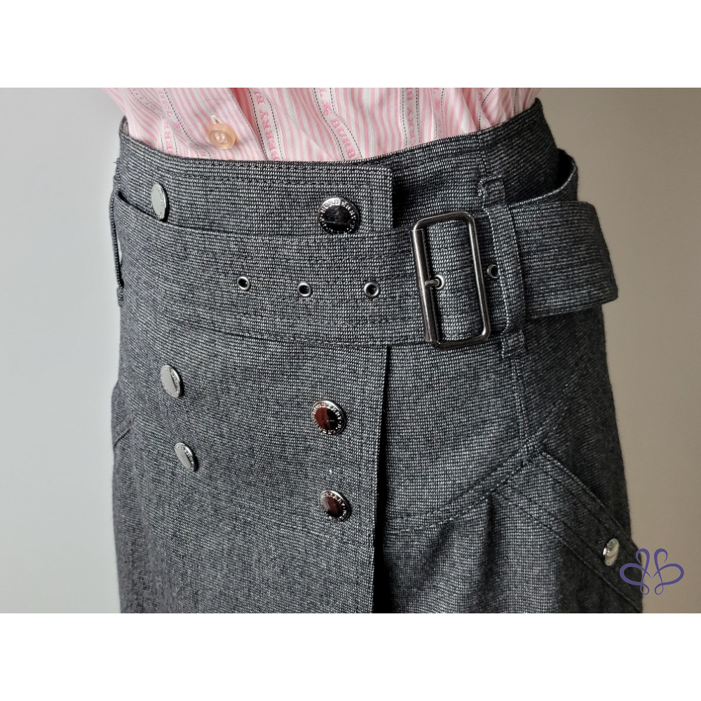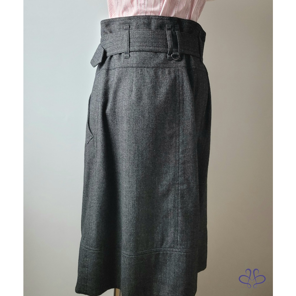 ~BURBERRY 極新極美灰黑色毛料藍標中長裙~38號