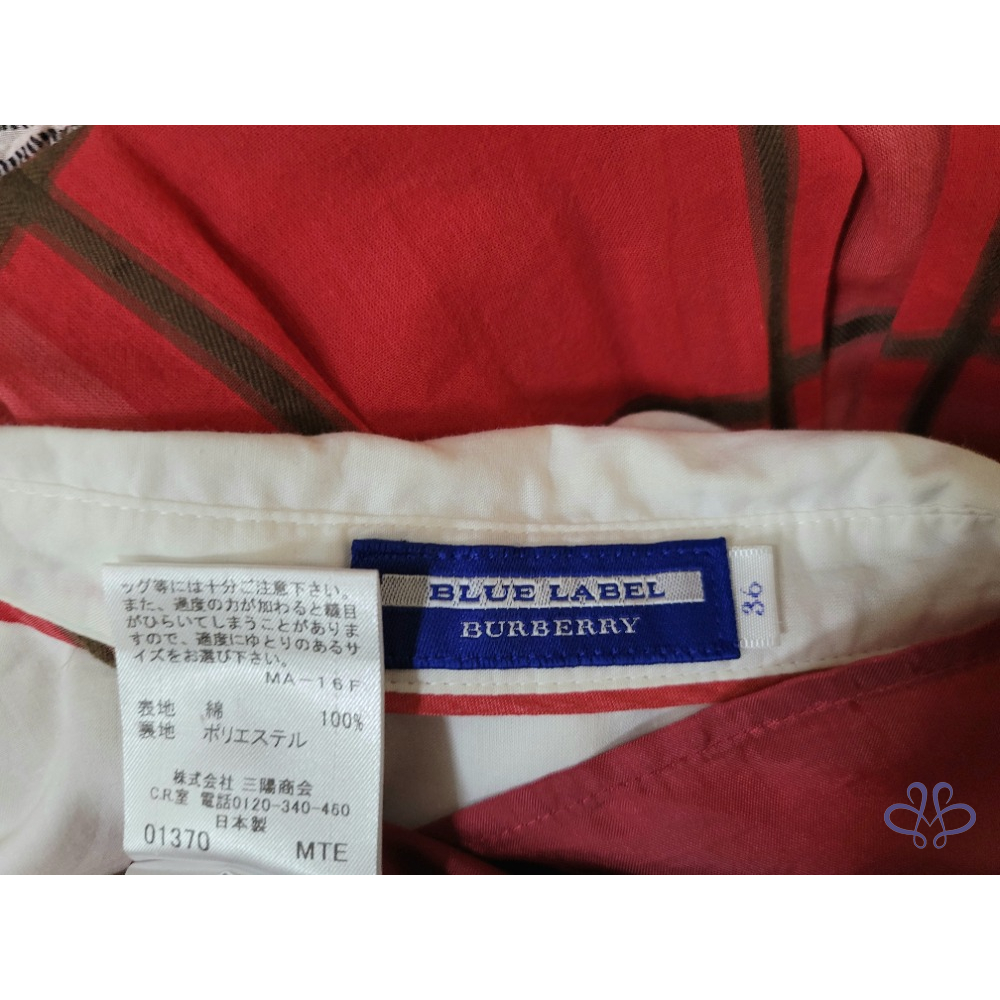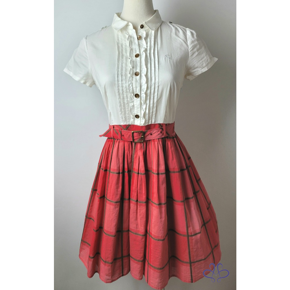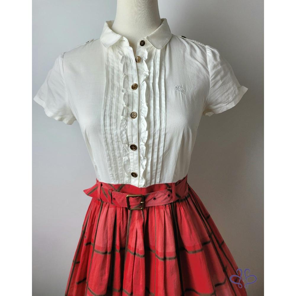 ~BURBERRY白上衣紅底方格子裙洋裝36號