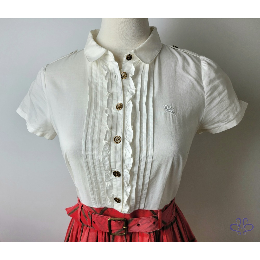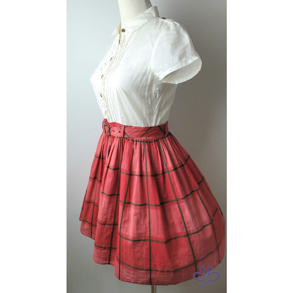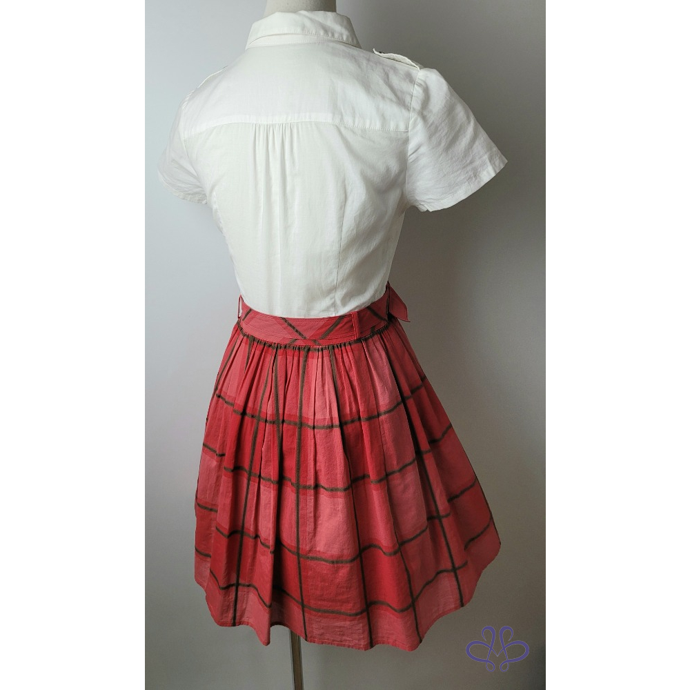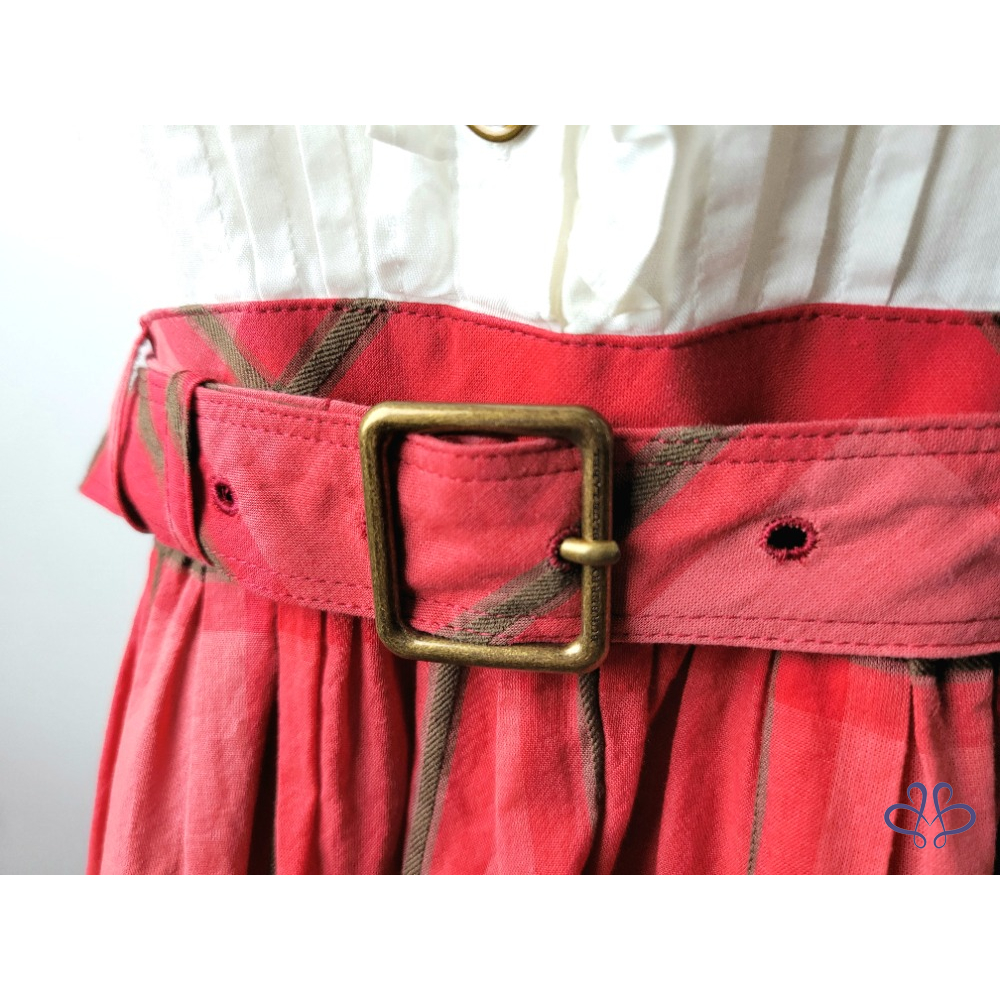 ~BURBERRY白上衣紅底方格子裙洋裝36號