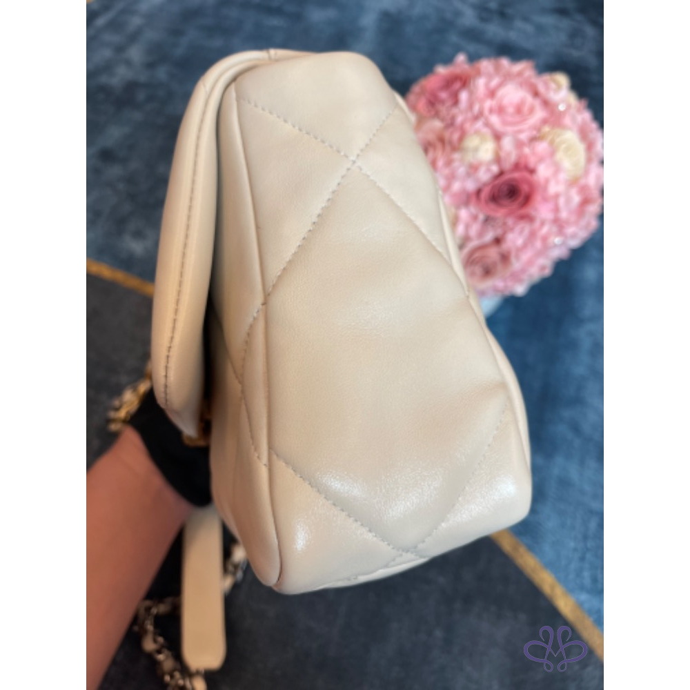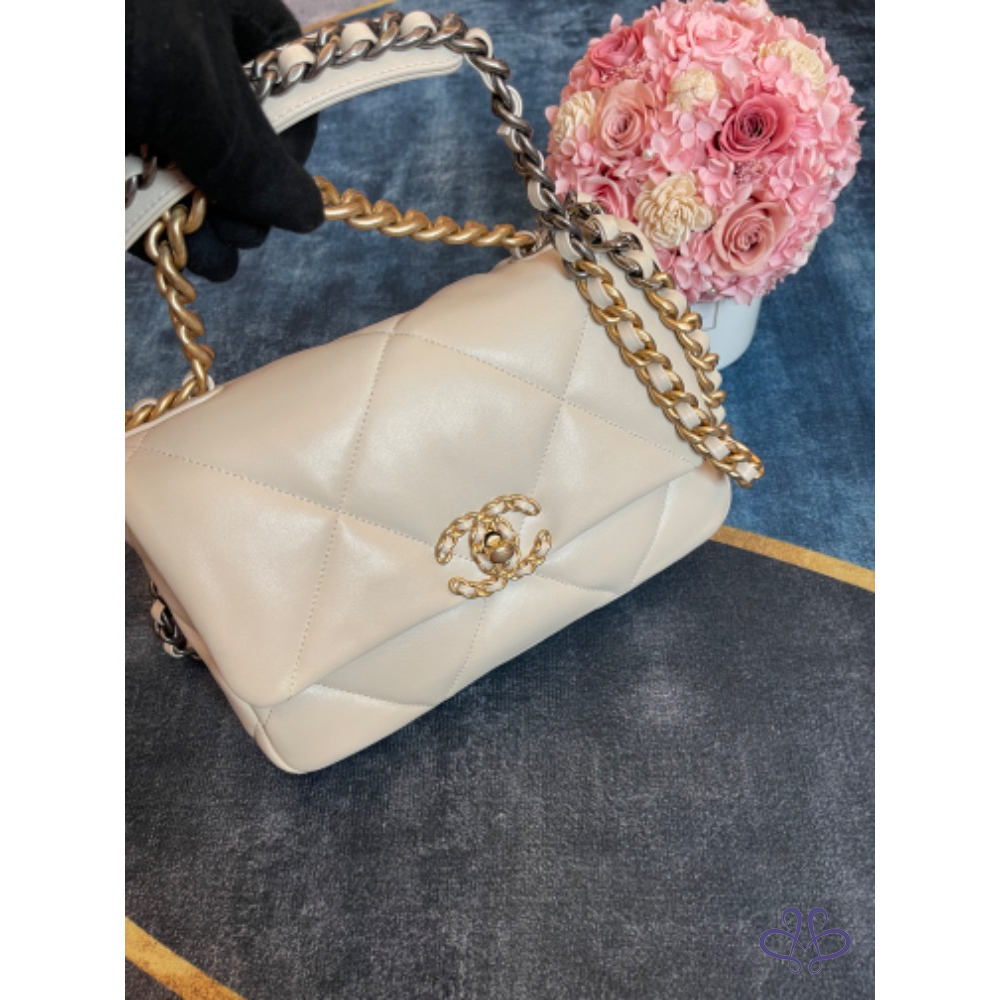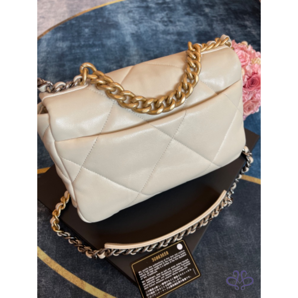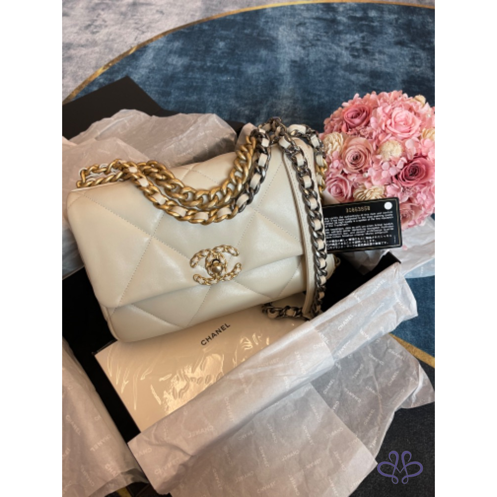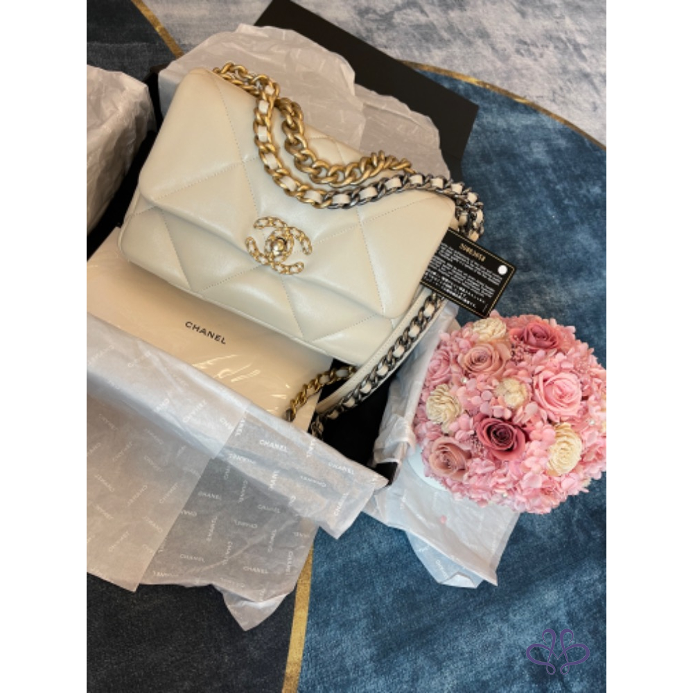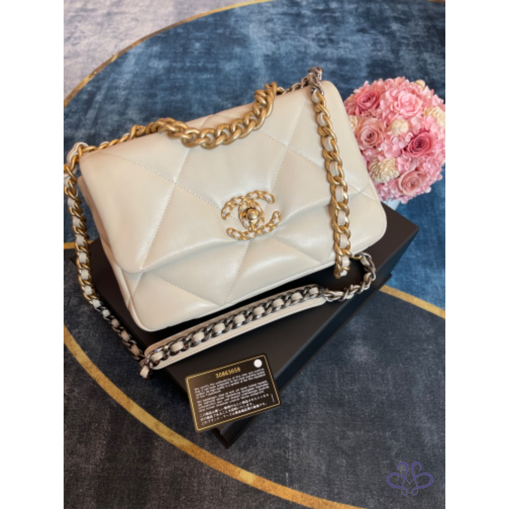【商品名稱】香奈兒 19bag奶白金扣 芯片款 台灣購證大全配
