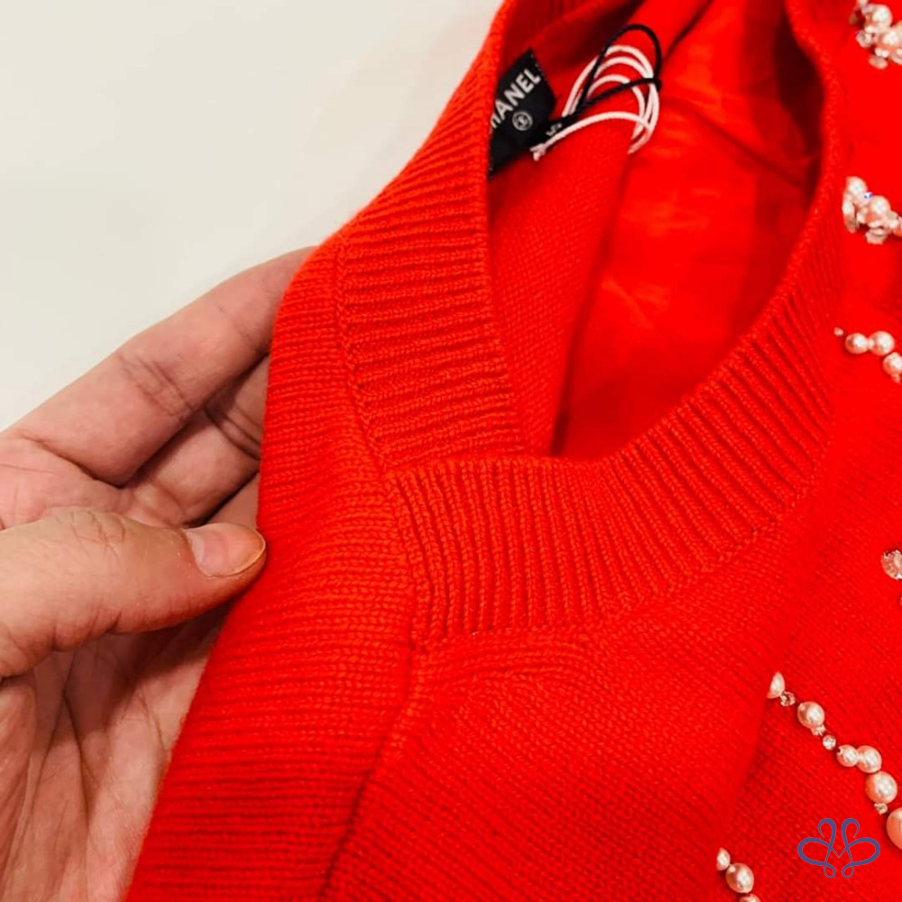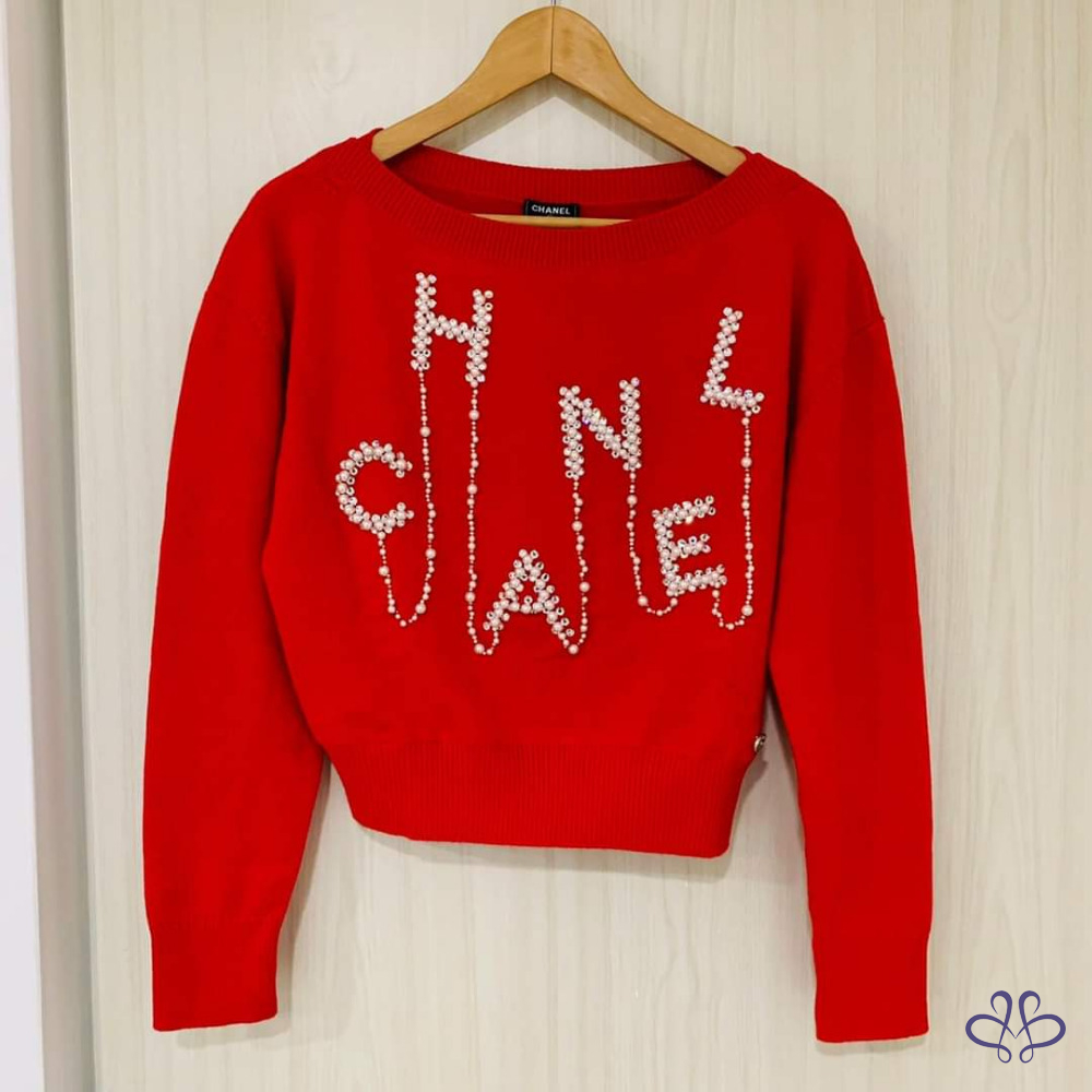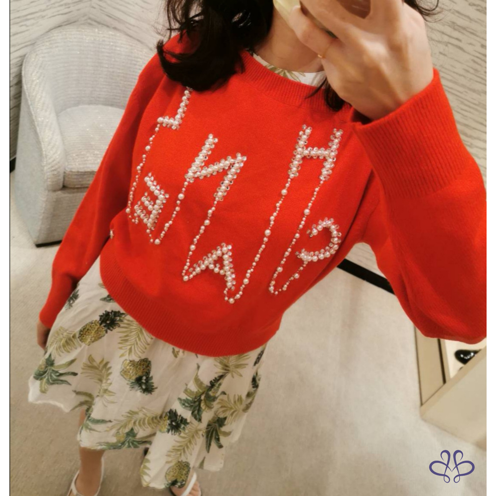 售 Chanel 香奈兒 Jennie 同款 珍珠/水鑽/字母 絕美顯瘦紅色針織衫/上衣