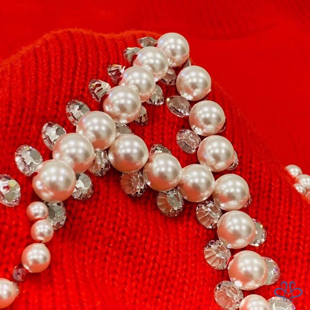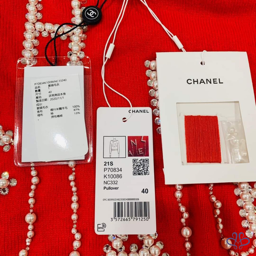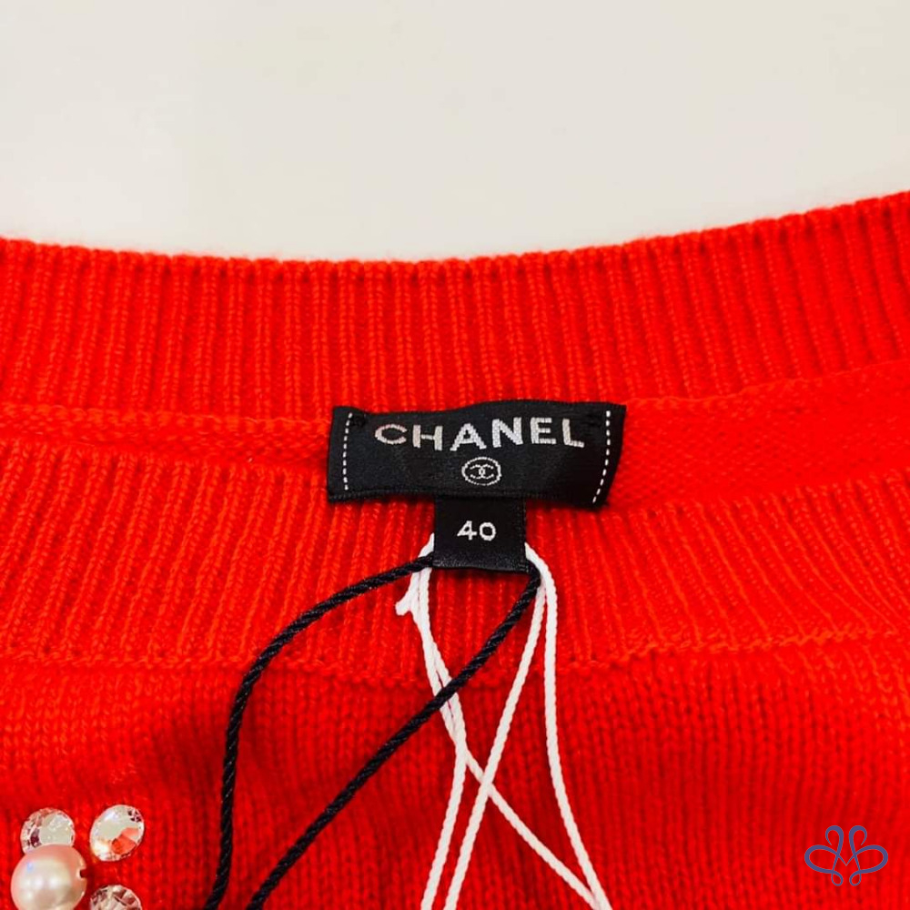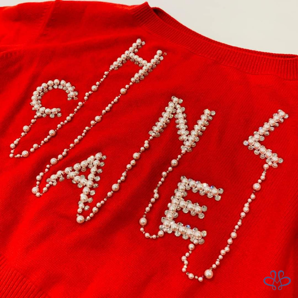 售 Chanel 香奈兒 Jennie 同款 珍珠/水鑽/字母 絕美顯瘦紅色針織衫/上衣