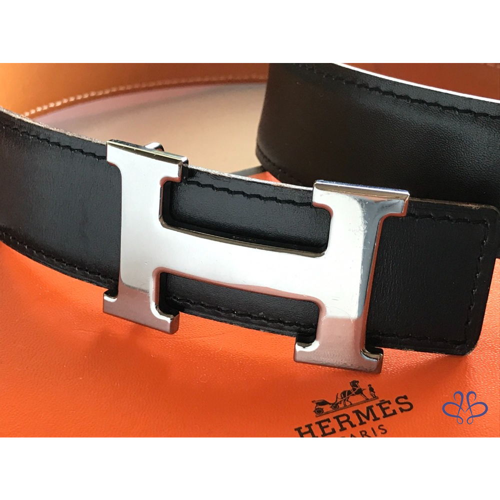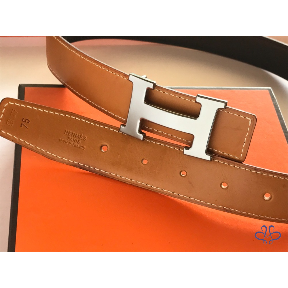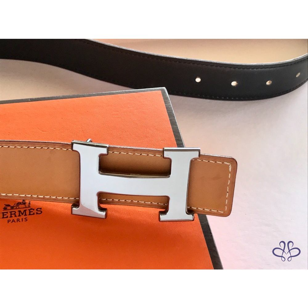 ~HERMES 銀色H頭+黑色/駝色雙色 腰帶75刻印
