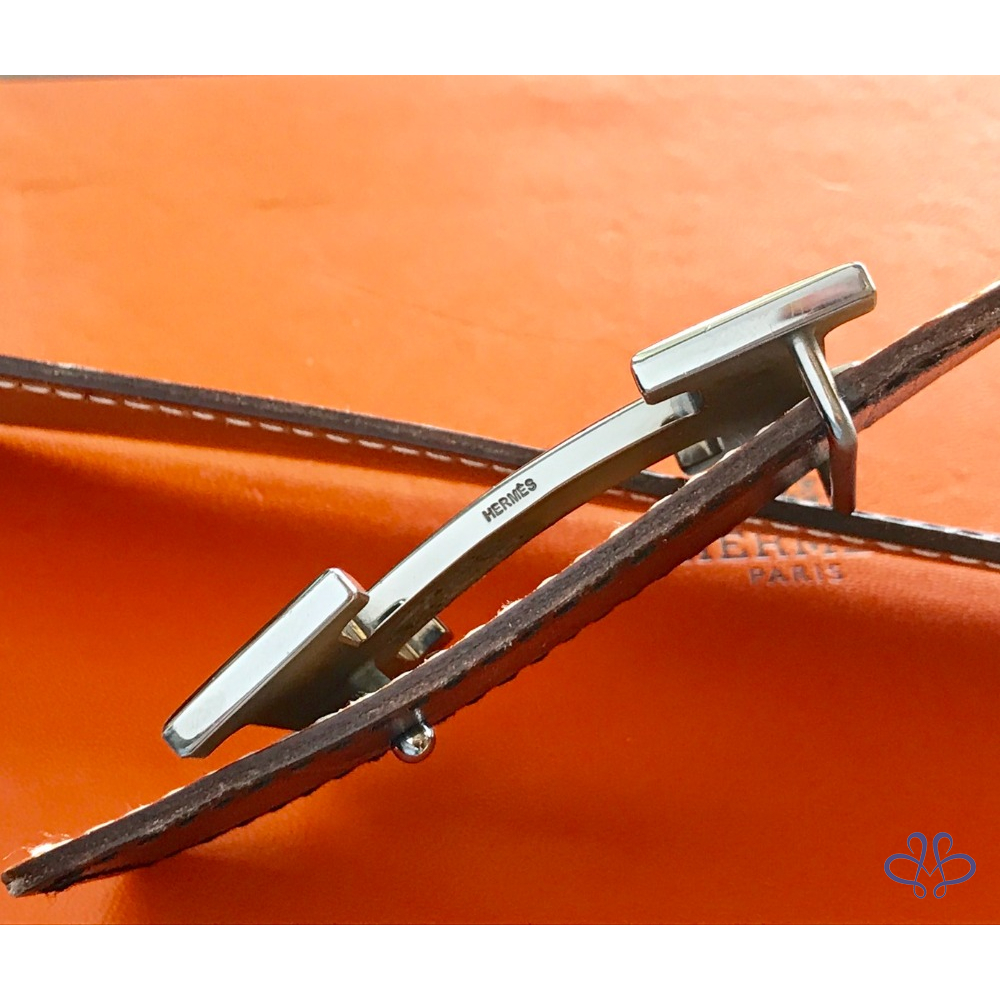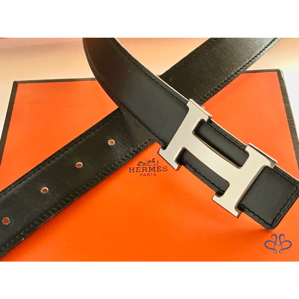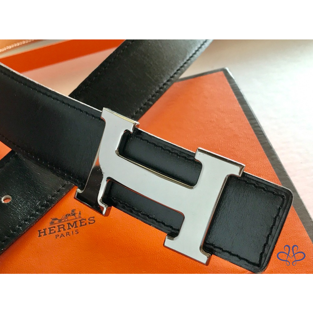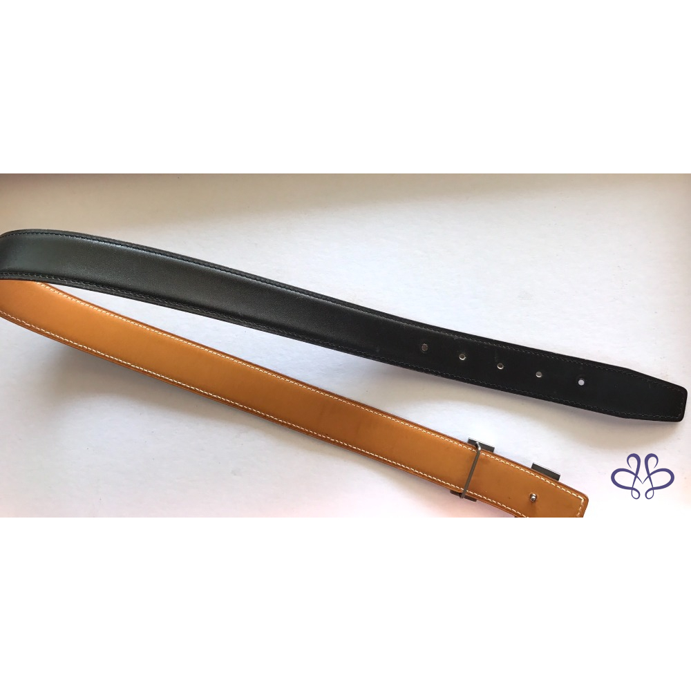 ~HERMES 銀色H頭+黑色/駝色雙色 腰帶75刻印