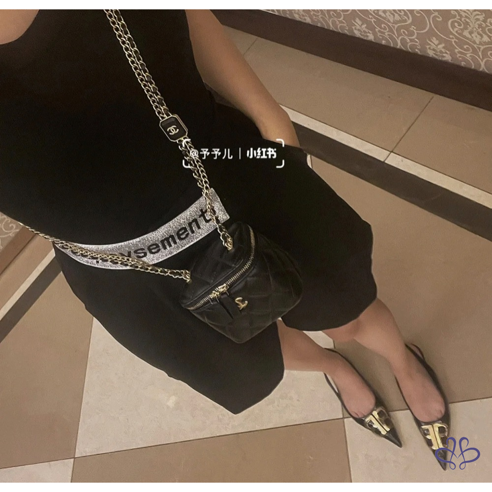 在鍊帶上加上可愛皮革方糖金屬牌,細節非常精緻,盒子包改了款,加了鏡子,不用帶鏡子包包自帶喔~