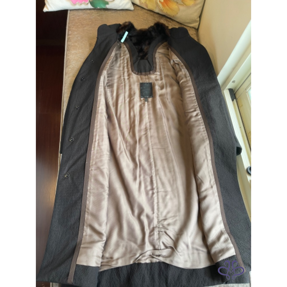 夏姿 咖啡色 貂毛領飾 長大衣(他團同售)