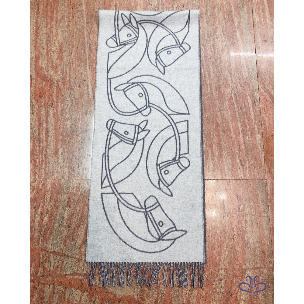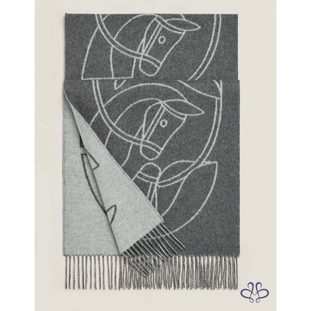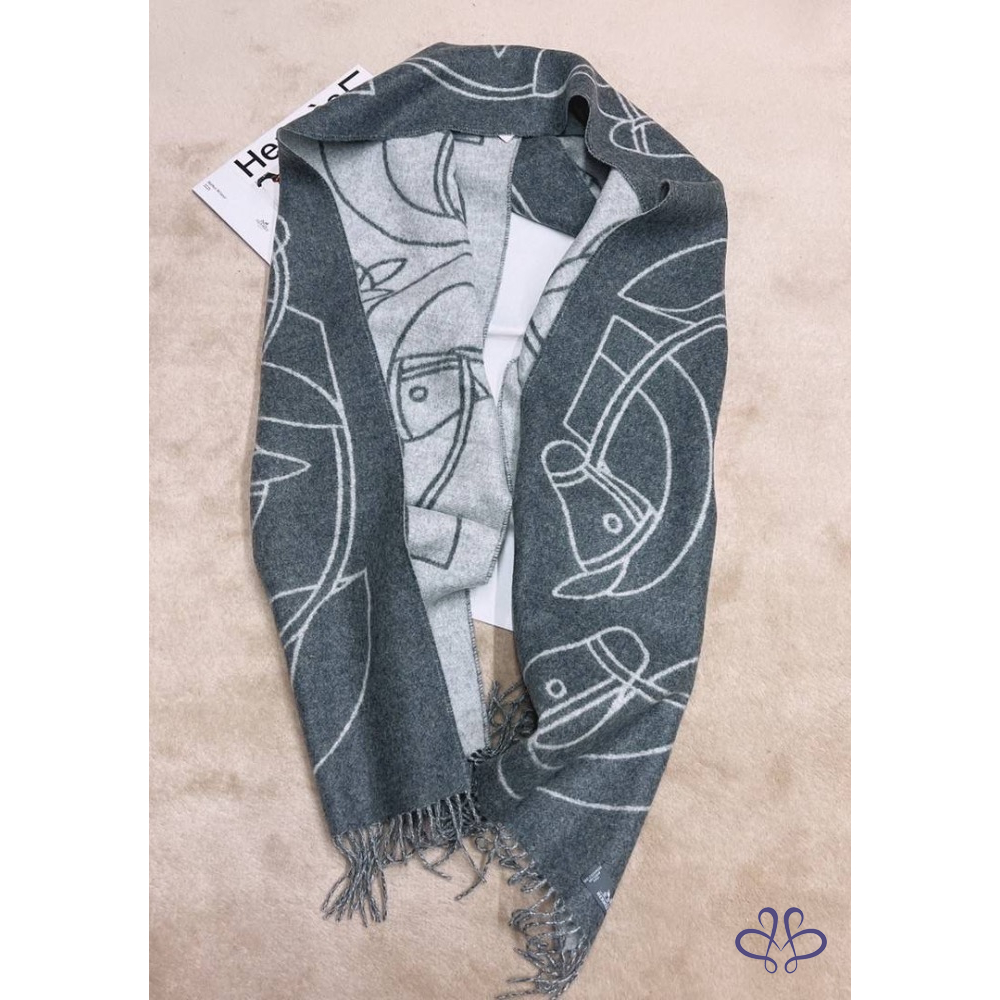 Hermes 愛馬仕 Casaque Entrelacs Equestres 馬頭 小馬 Anthracite炭灰 / Gris Clair淺灰色 喀什米爾羊毛 圍巾全新✨