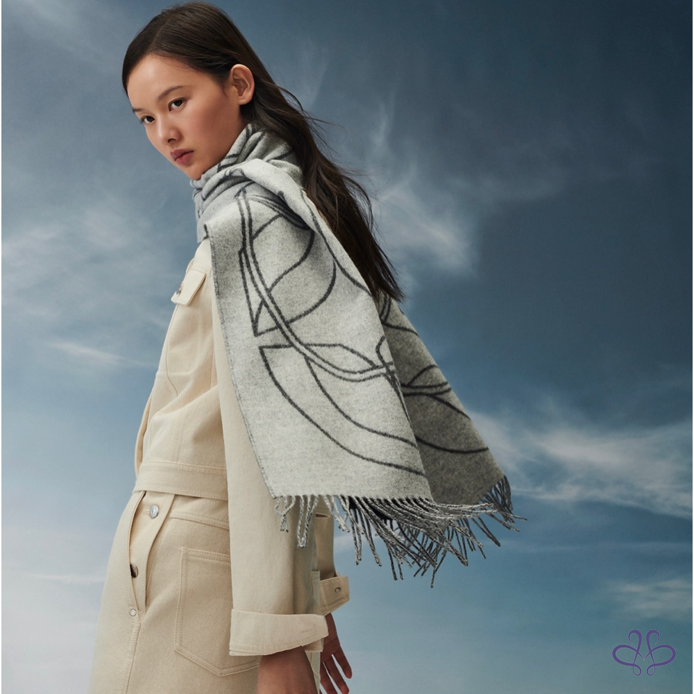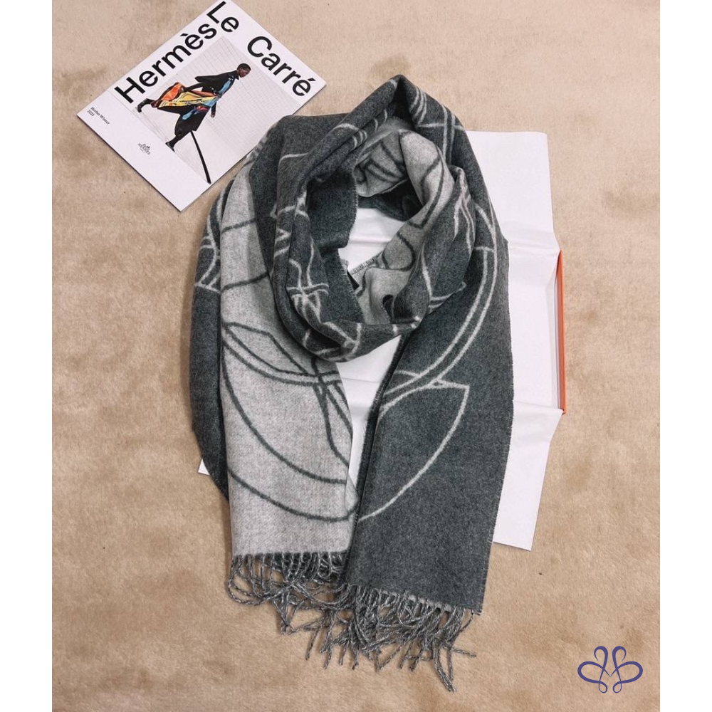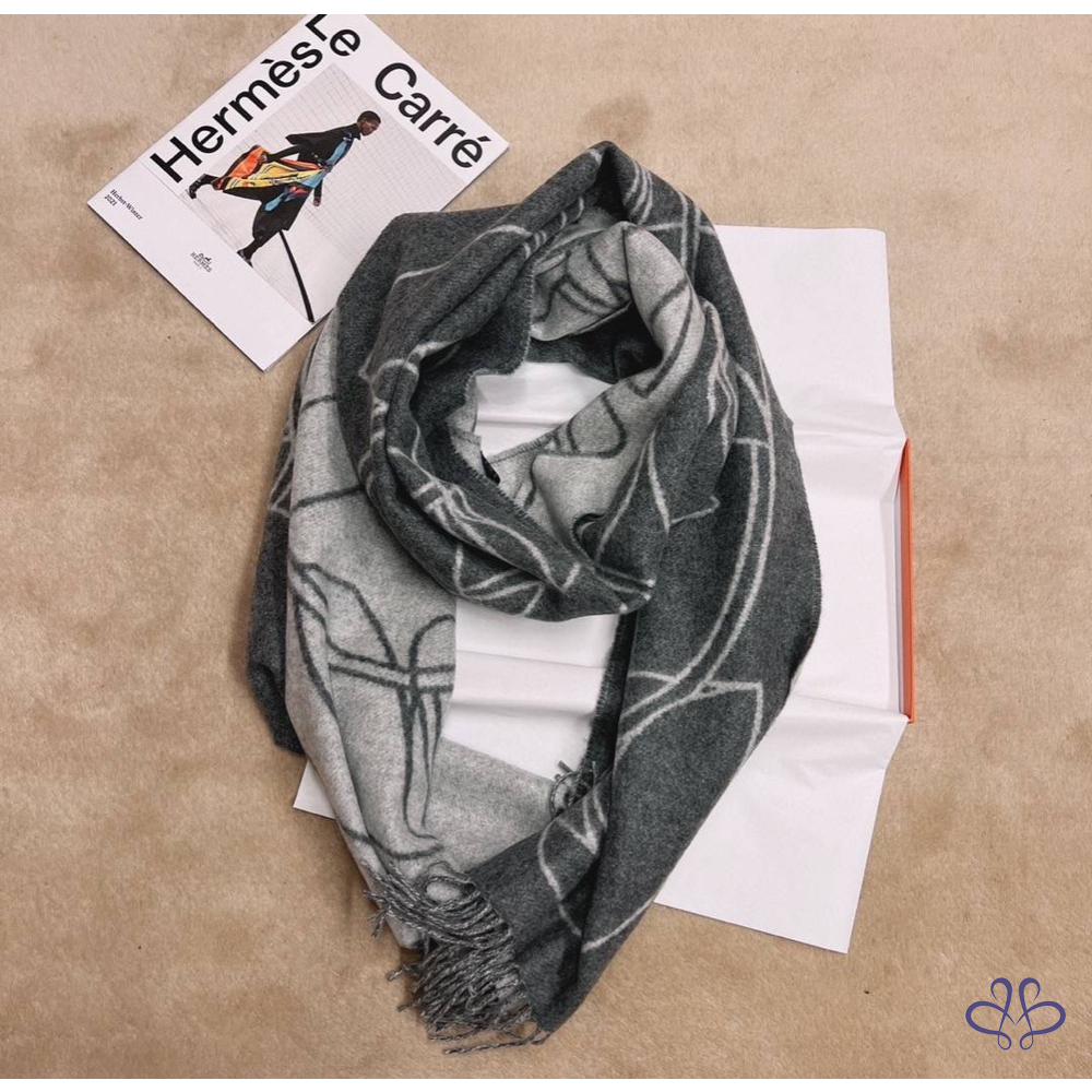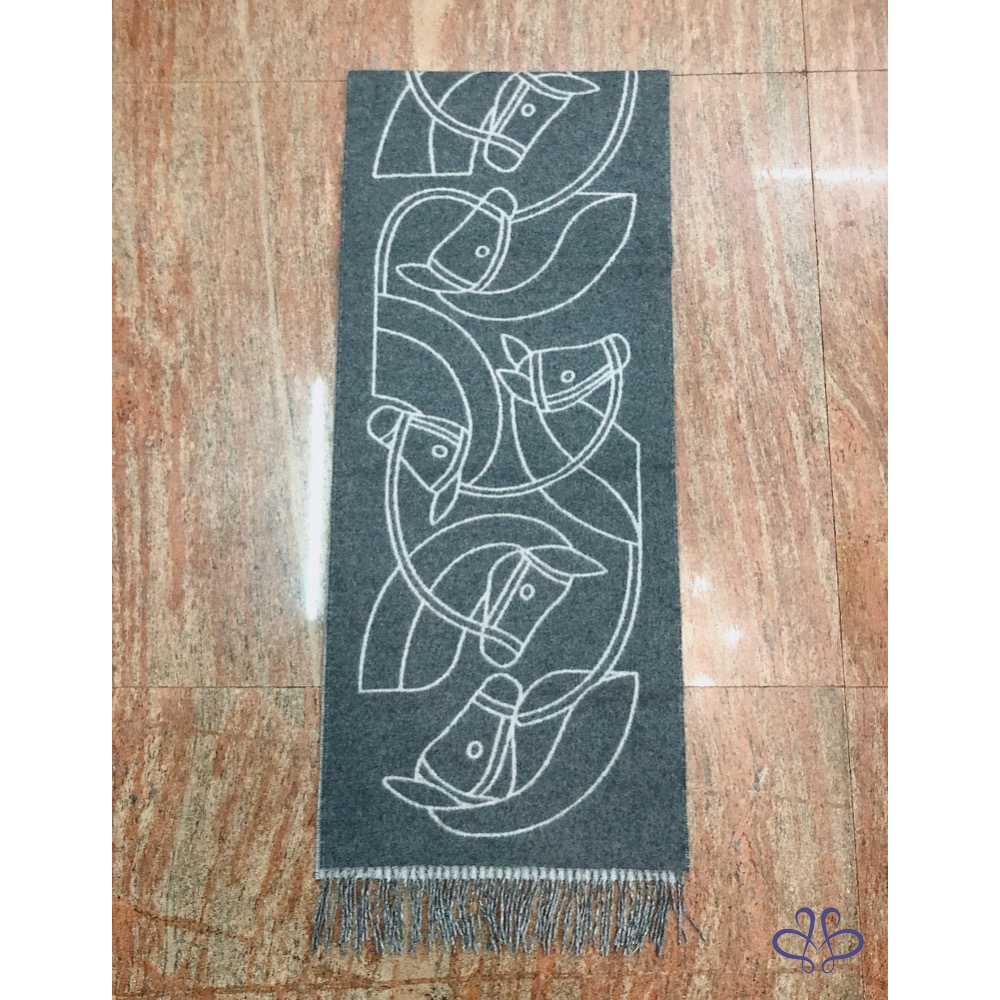 Hermes 愛馬仕 Casaque Entrelacs Equestres 馬頭 小馬 Anthracite炭灰 / Gris Clair淺灰色 喀什米爾羊毛 圍巾全新✨