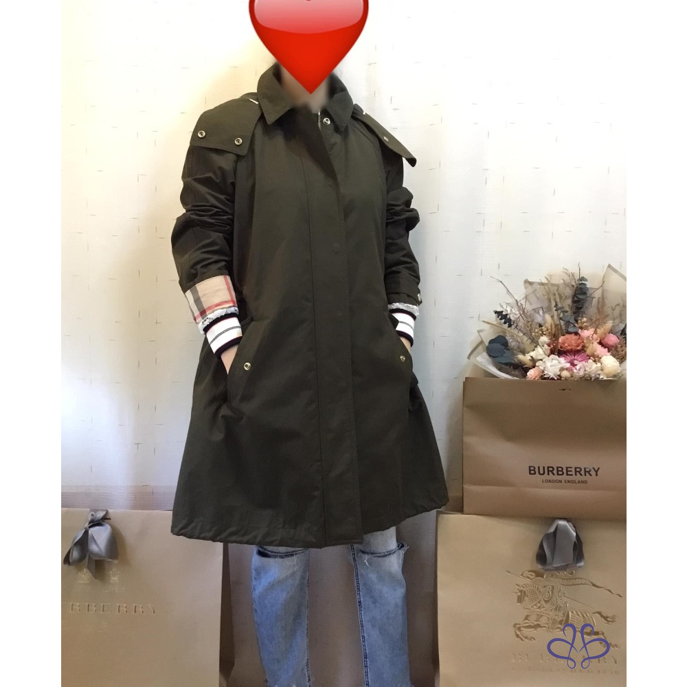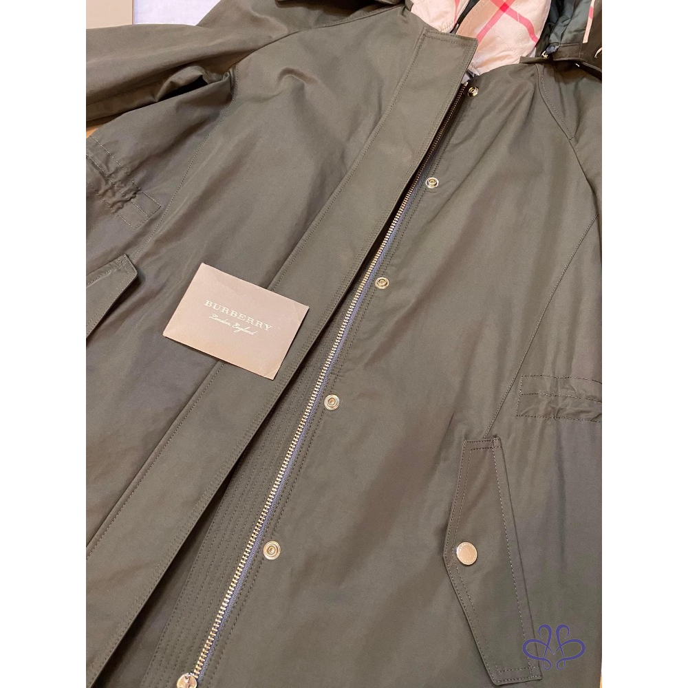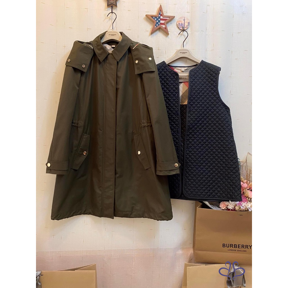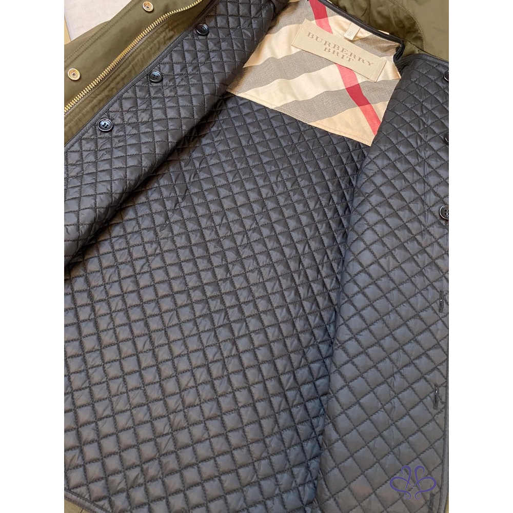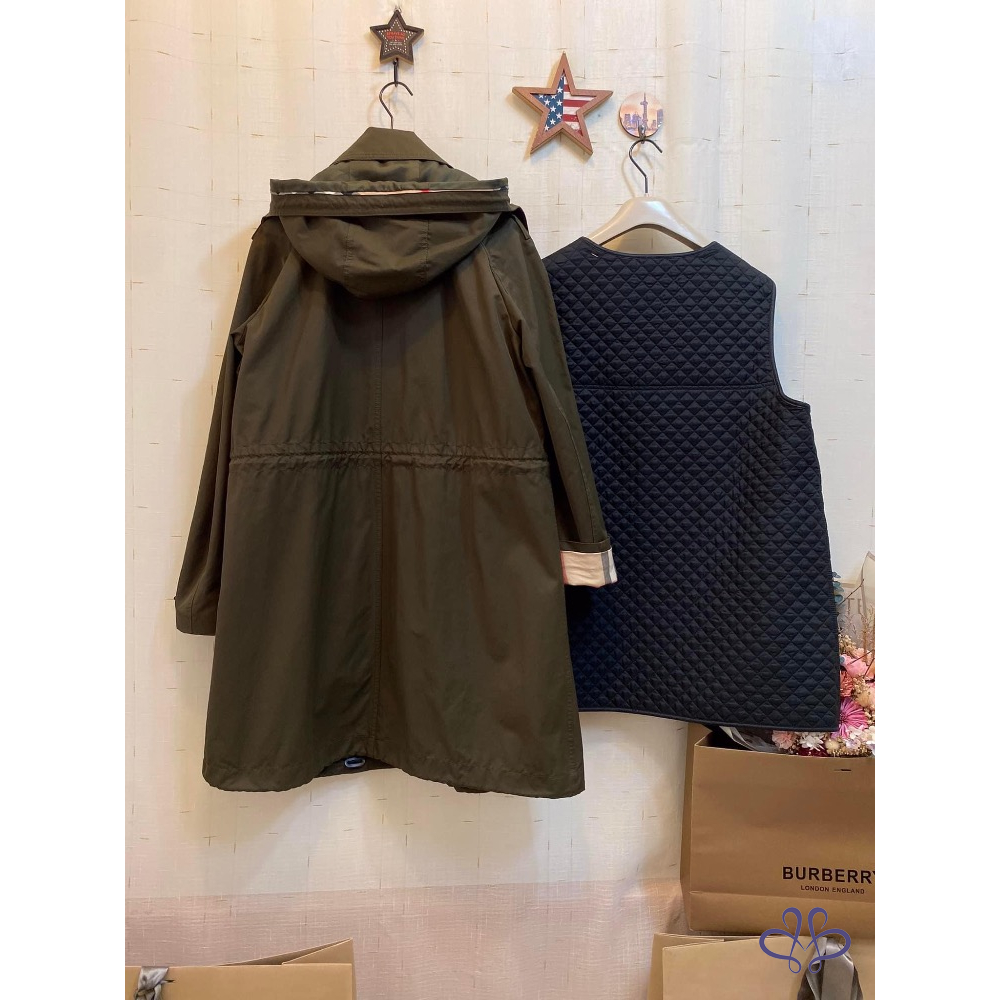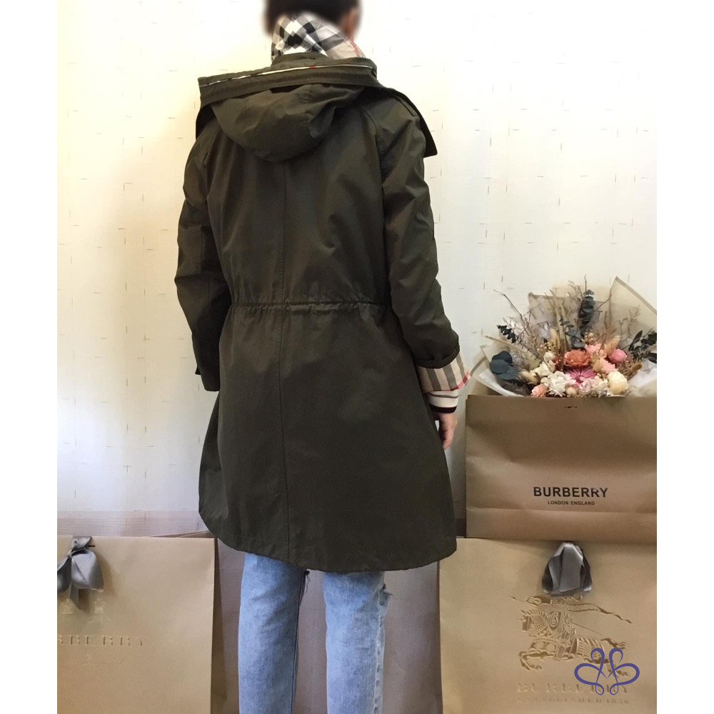 ????BURBERRY BRIT軍綠色連帽兩件式風衣