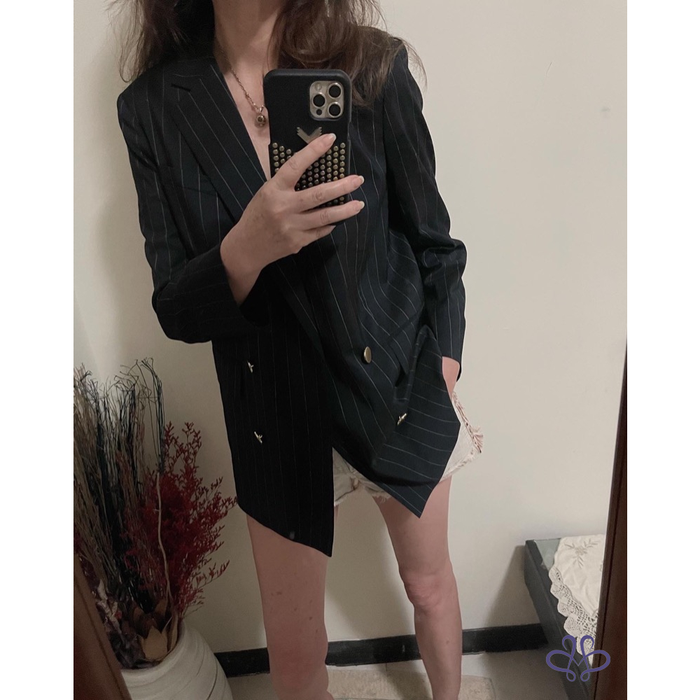 全新紐約極簡時尚品牌 THEORY 藍條紋排釦西裝外套