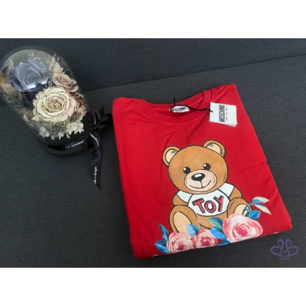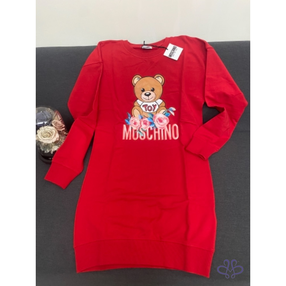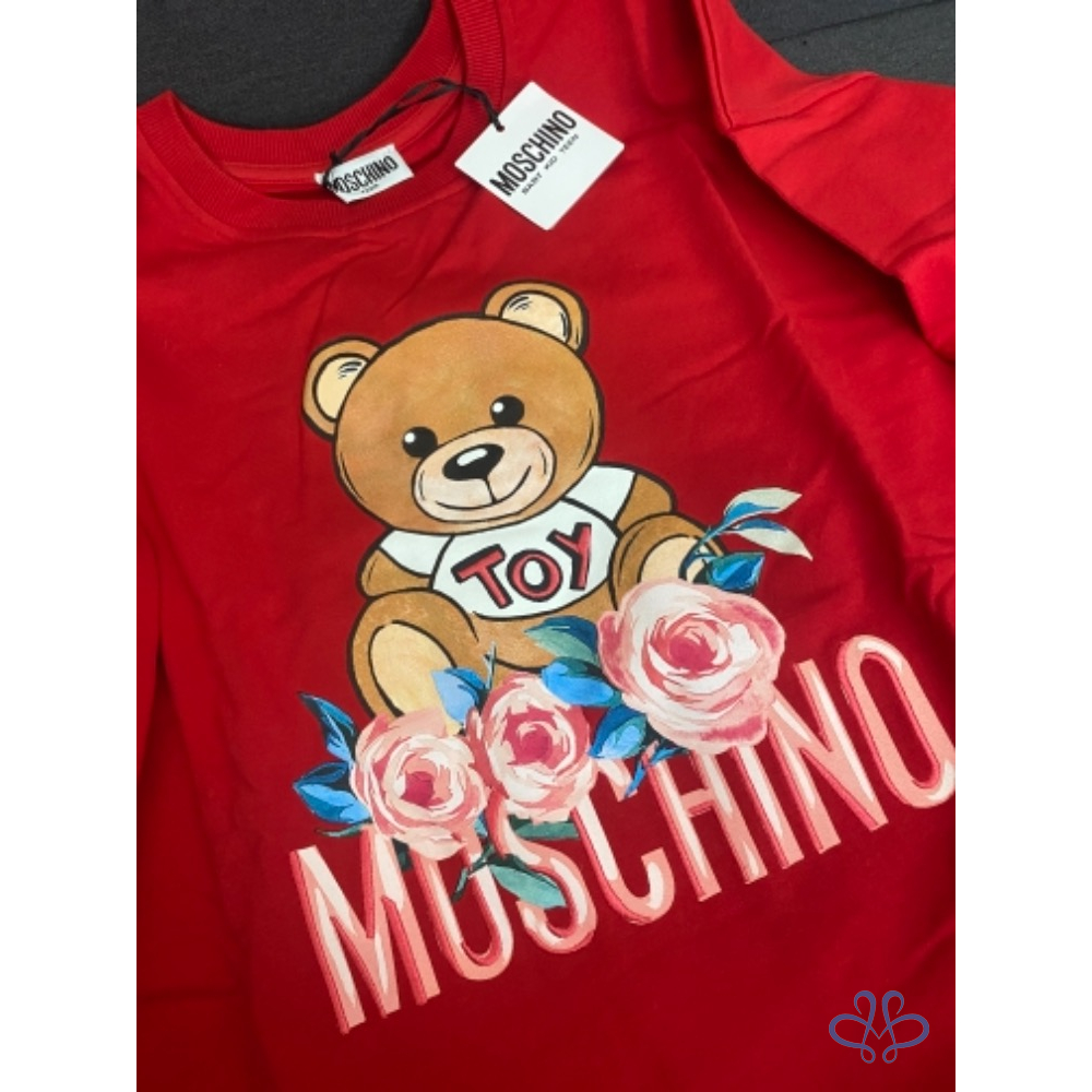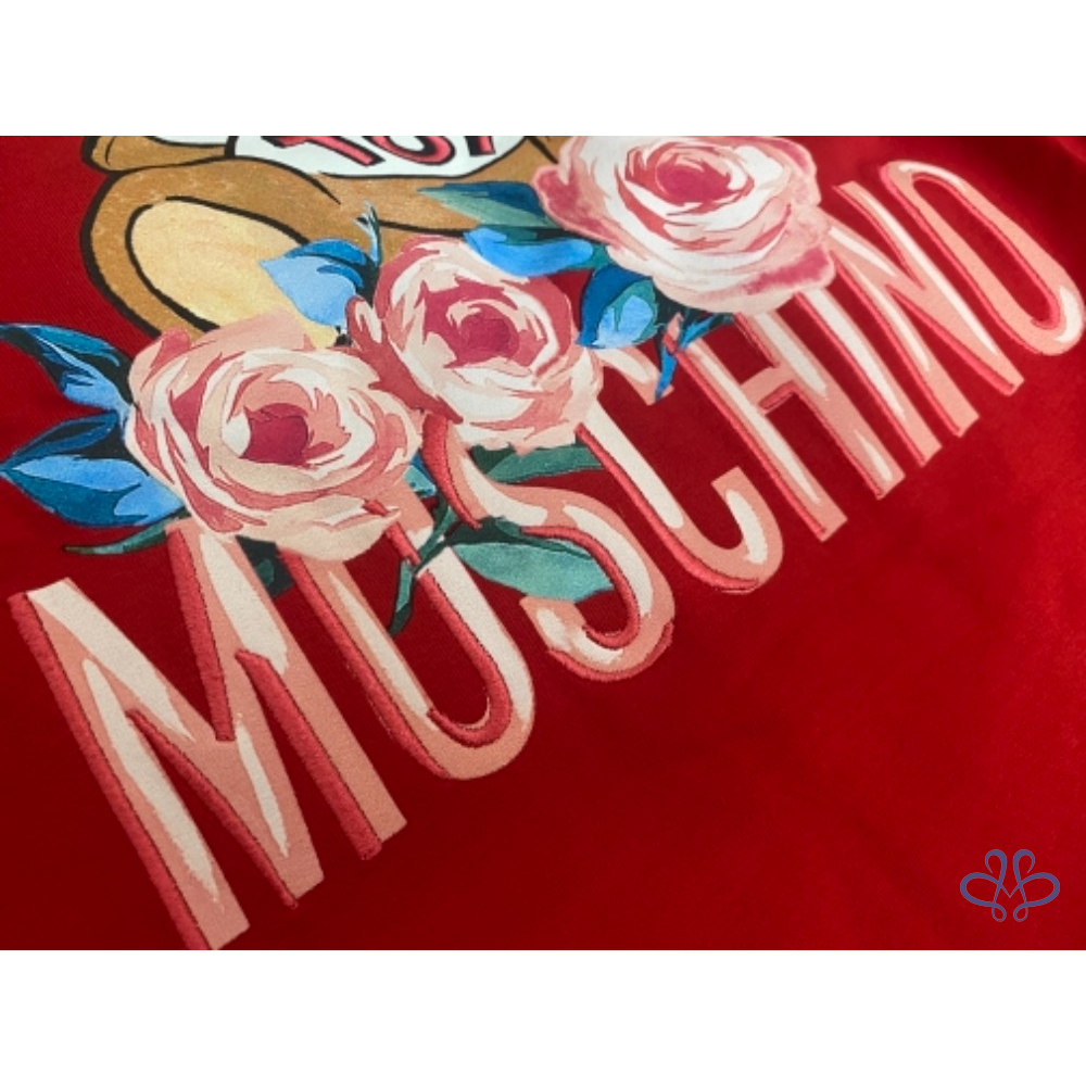 商品:新款Moschino 花朵小熊紅色長版衛衣