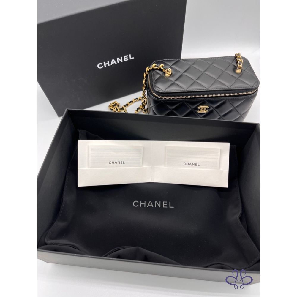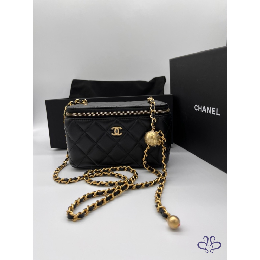產品信息 寵愛賣家認證A003897 Chanel 全新長盒子金球款包 新款內附鏡子,還能當化妝盒唷! 商品名稱:香奈兒黑色金球盒子 商品狀態:全新 附盒、緞帶防塵袋、購證正本去個資 欲售價:$102000 含運 北部可面交 喜歡喊要 售出不退