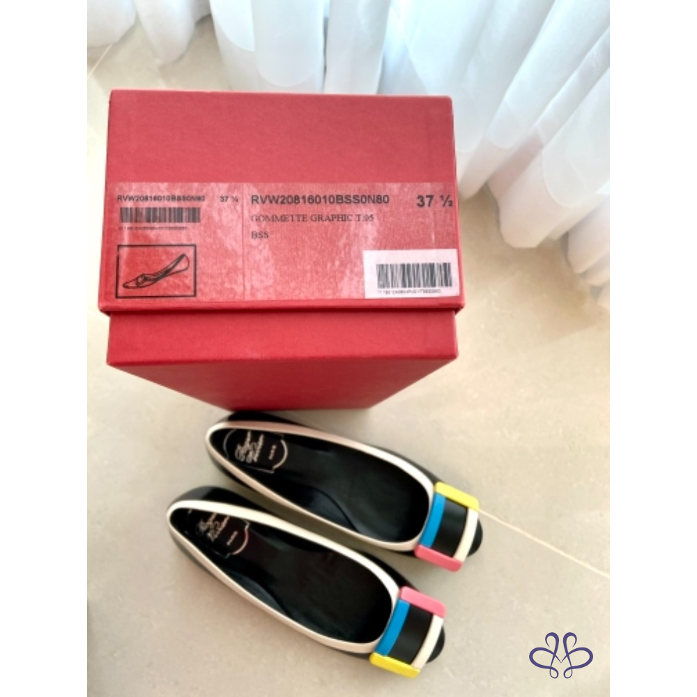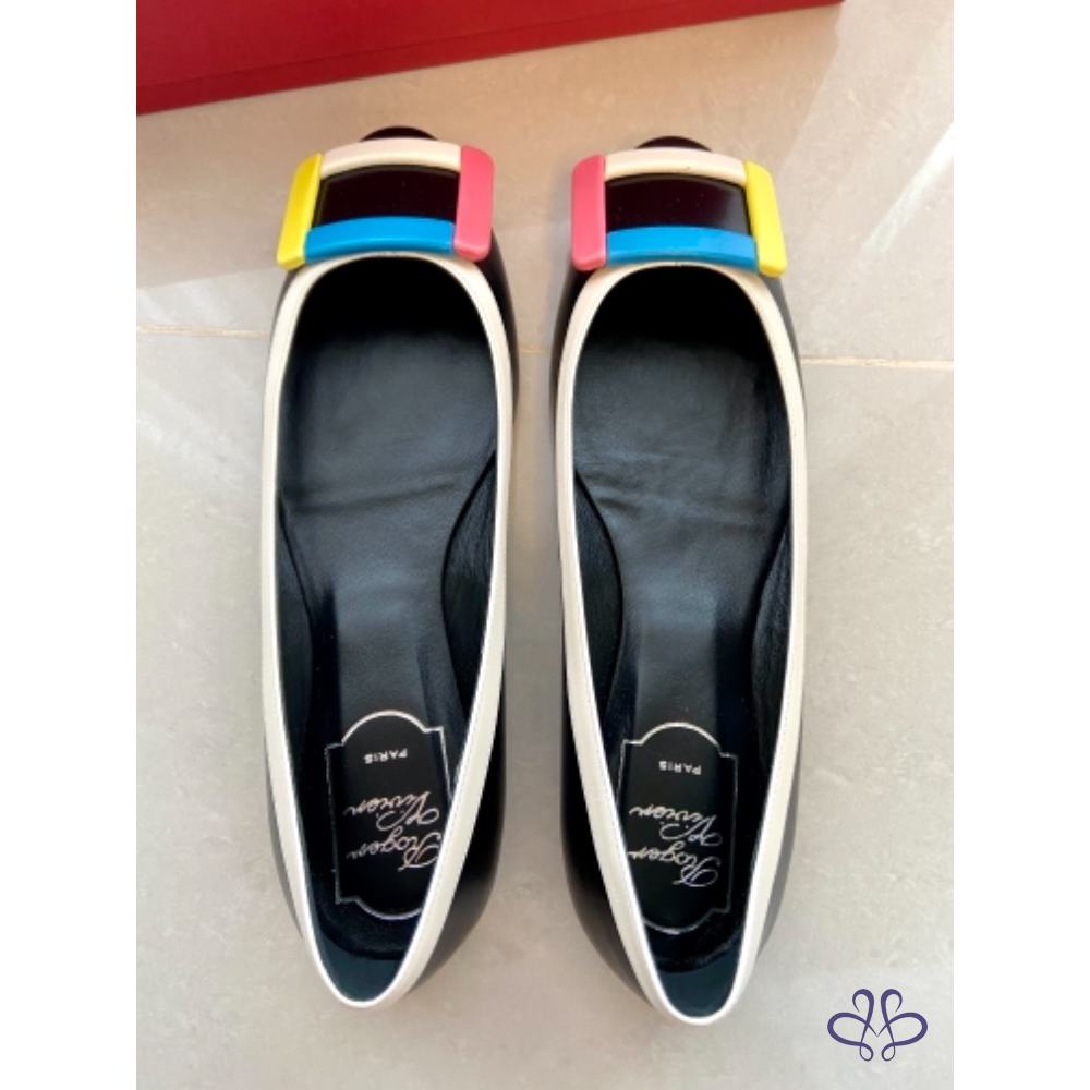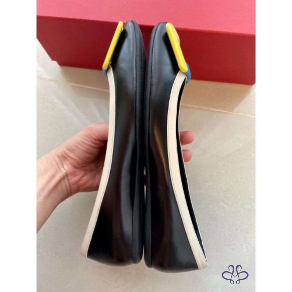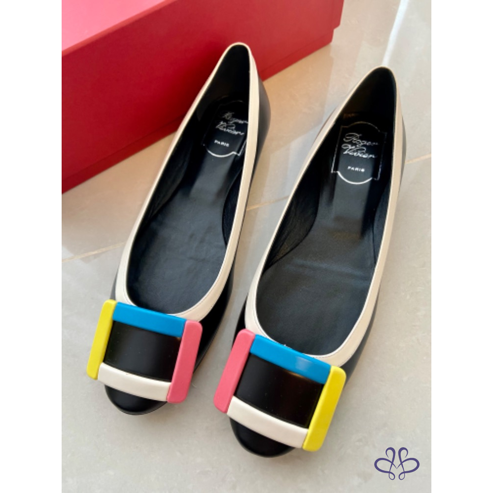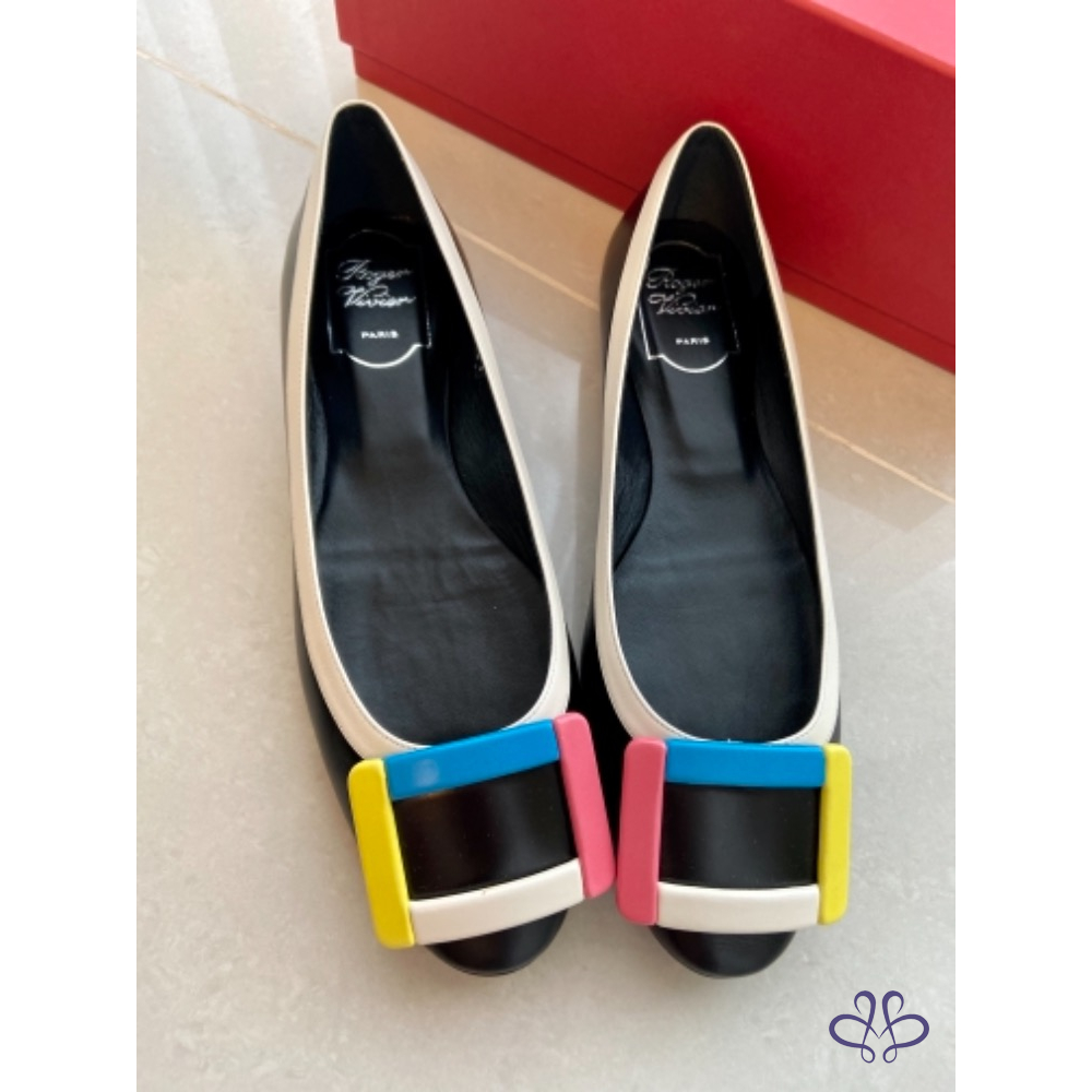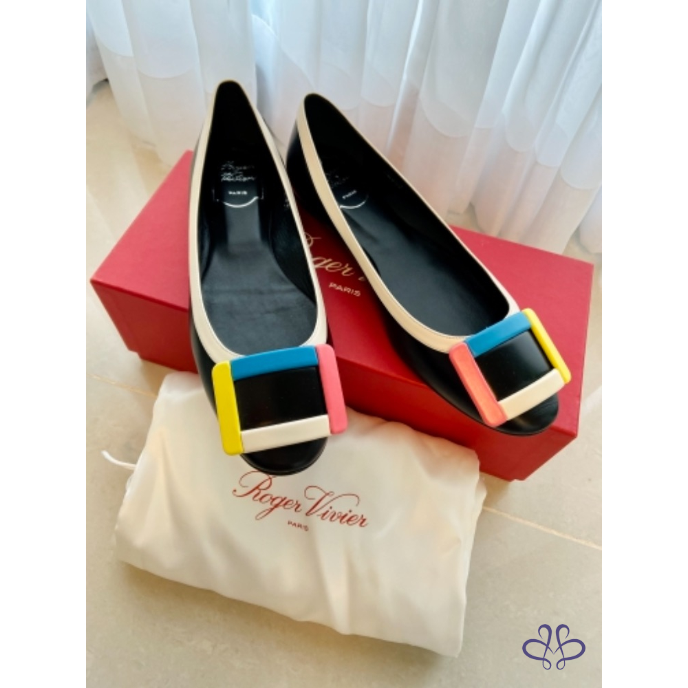 ~~Roger Vivier 彩色方釦黑色真皮平底娃娃鞋~~ (他團同步)