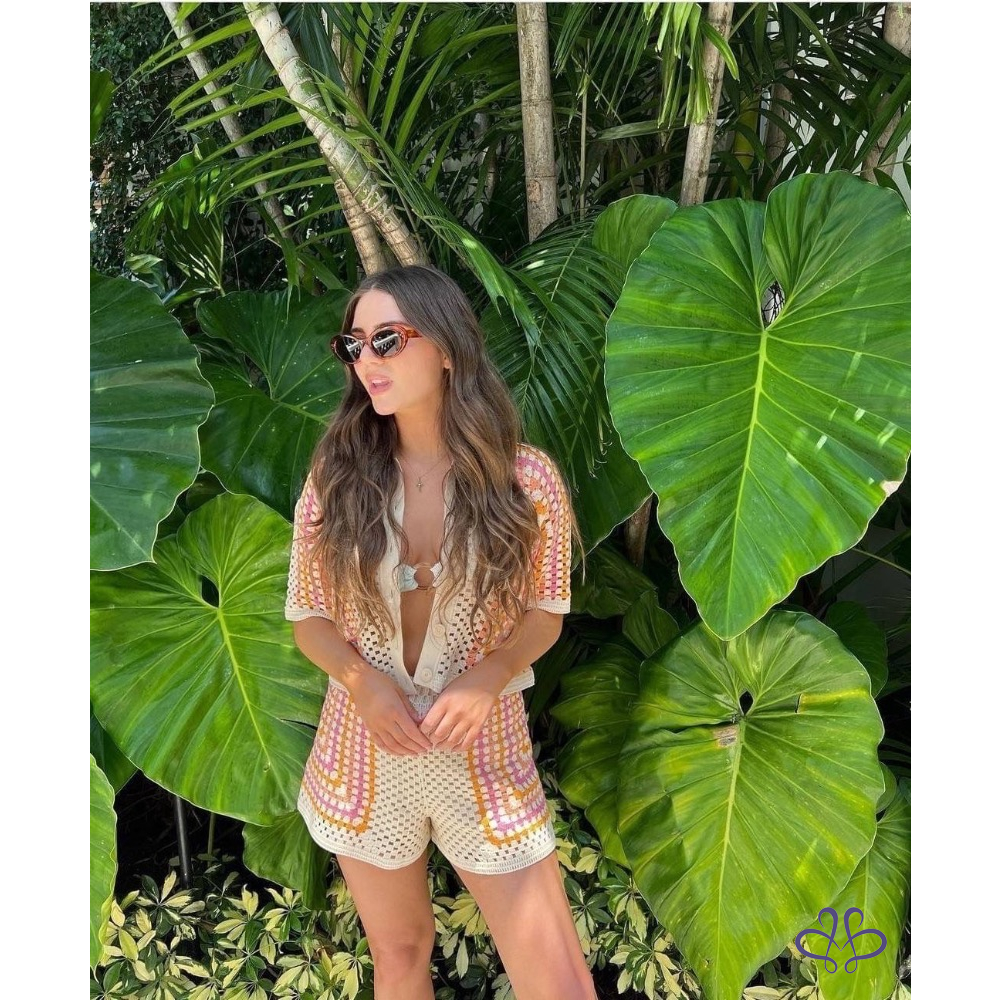 ????編織拼色鬆緊短褲????