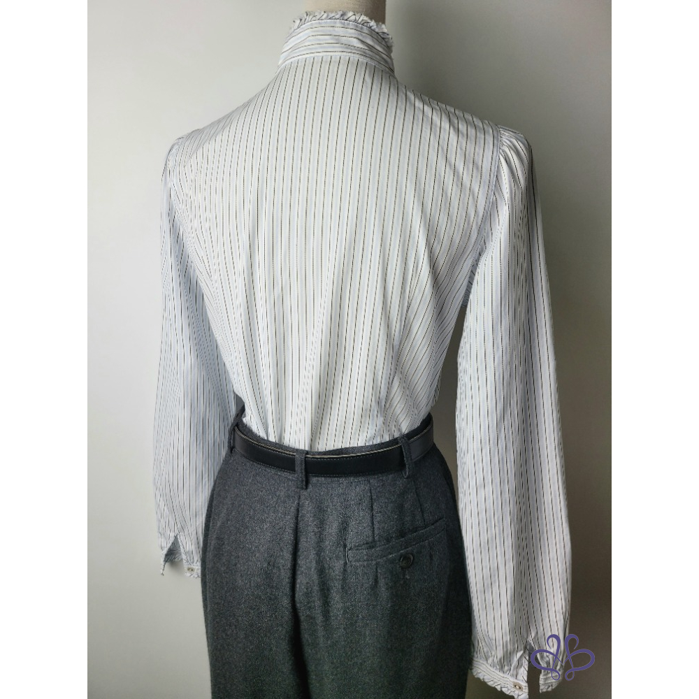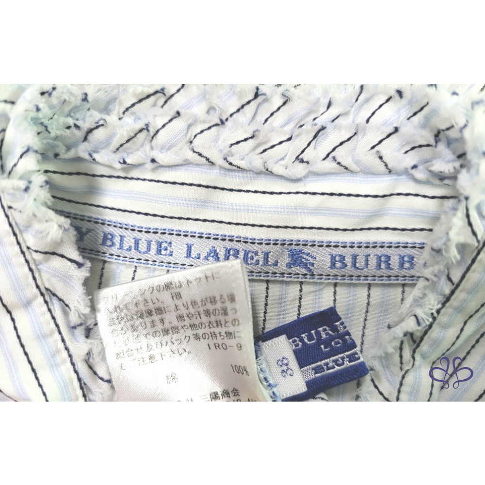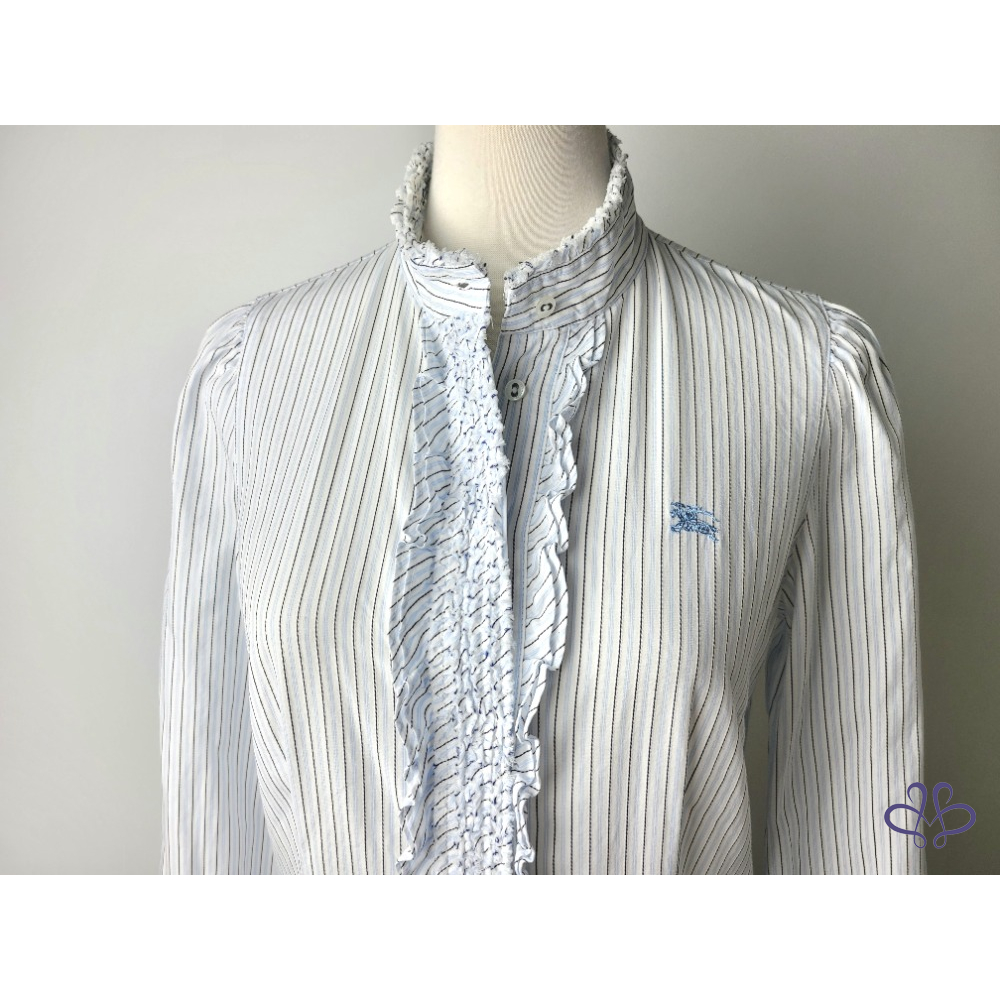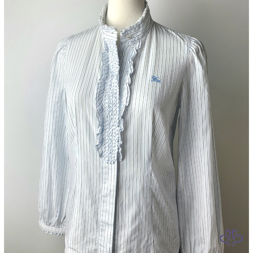 ~BURBERRY荷葉領胸前長袖藍條紋上衣38號