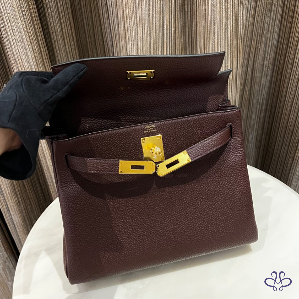 產品信息 寵編A000243 Hermès Kelly 28 U 金釦 全新 0G #超甜直購550000含運 28真的是很好用的尺寸 全新背帶連試背都沒有 馬鞍紅的顏色最適合秋冬了 配上衣服 真的美美的 氣質無極限 是非常深的顏色也不怕穿搭不好搭 圖五放上各總馬鞍紅的包款都非常美 附盒 塵套 購證 羊毛氈 雨衣 說明書