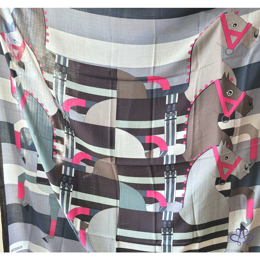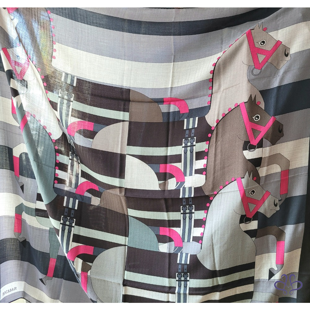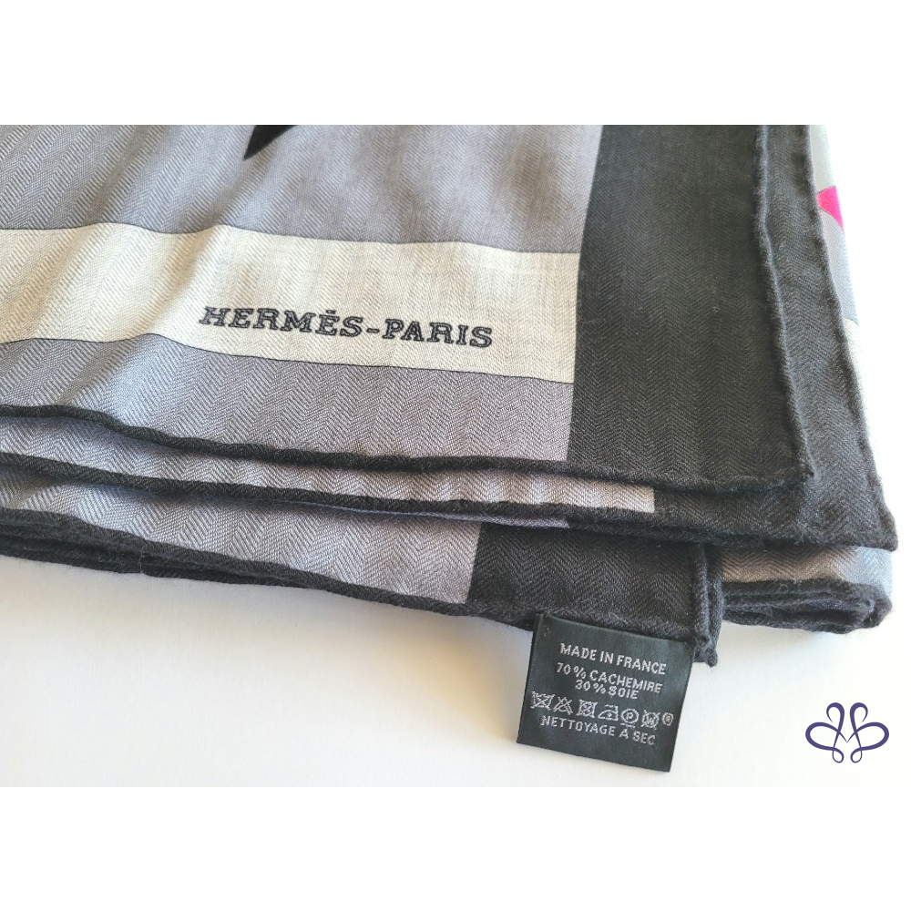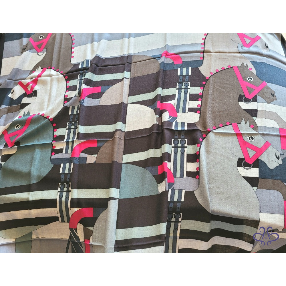 ~HERMES 附原廠盒 馬頭桃粉A字繩大圍巾 140x140cm 70% CASHMERE 30% SILK 大披肩/圍巾