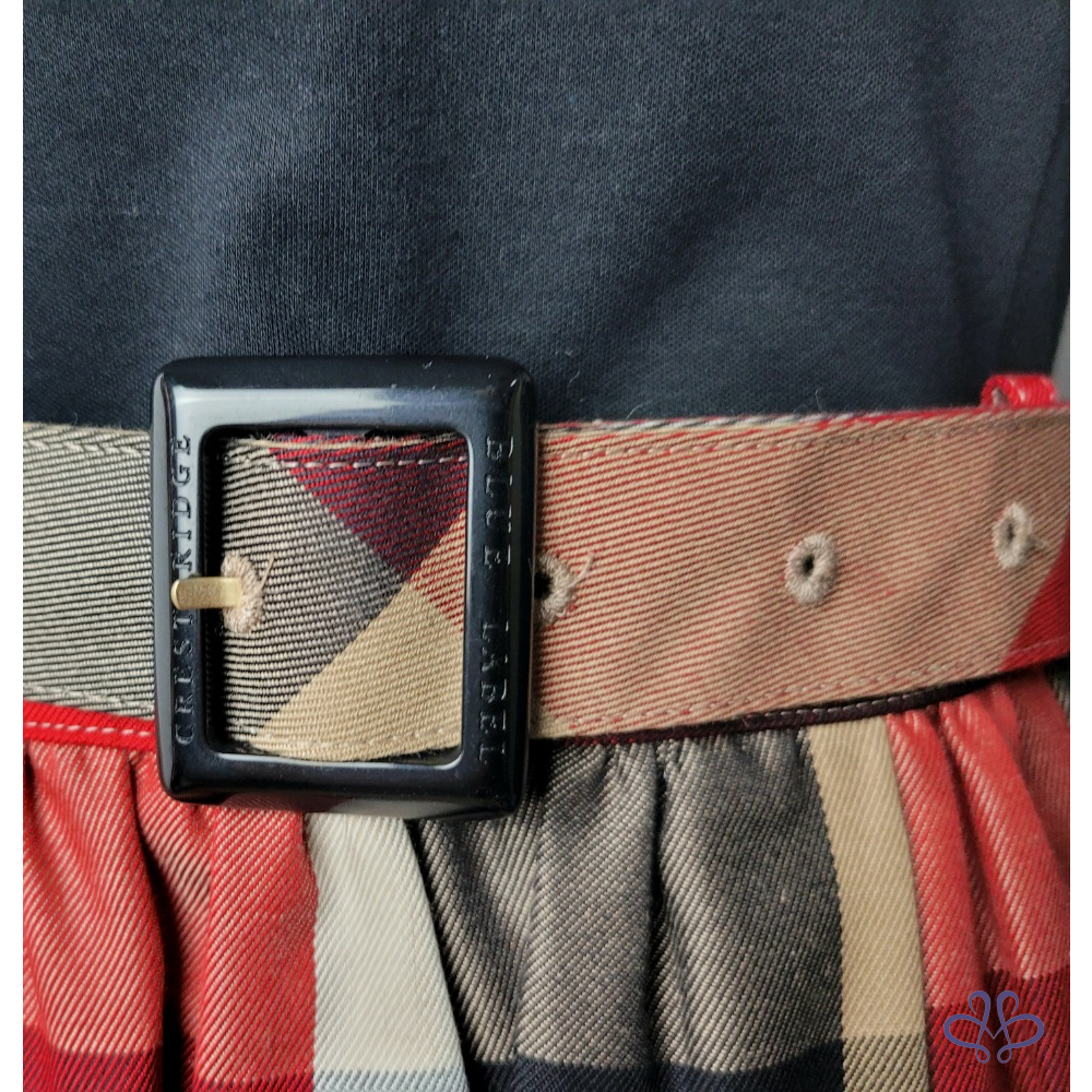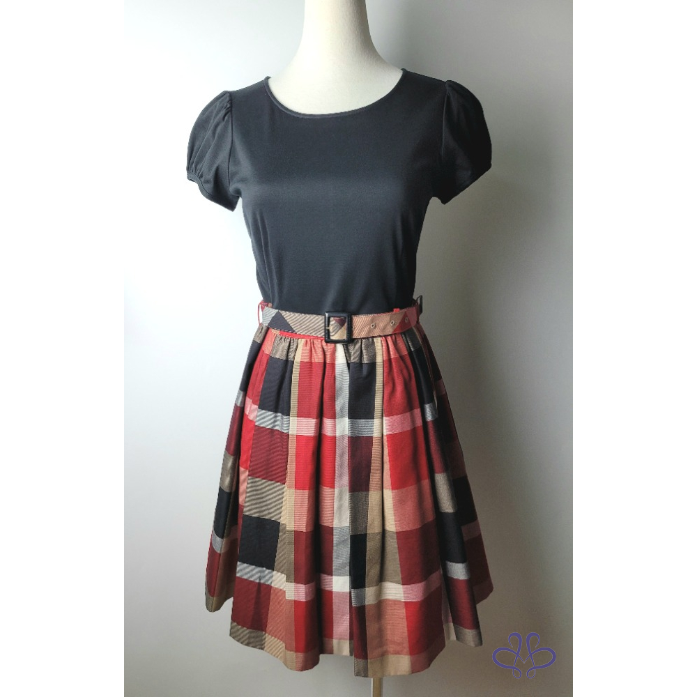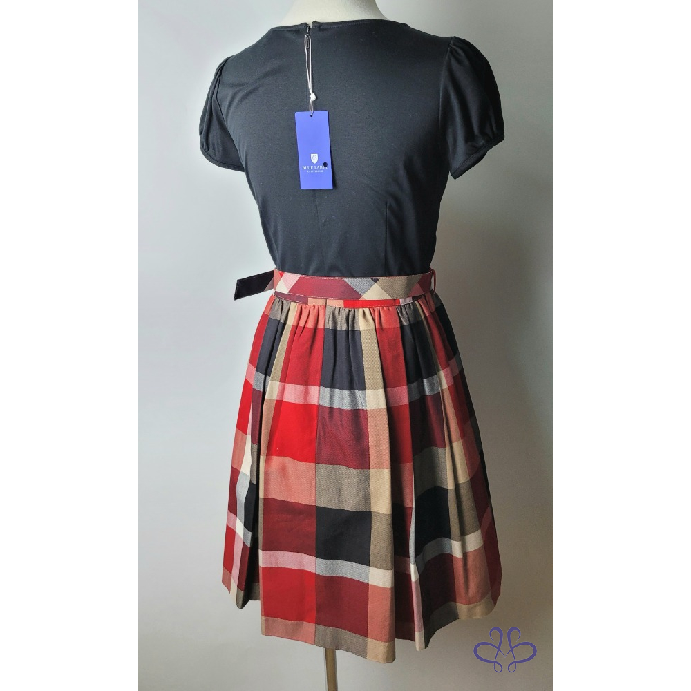 ~BURBERRY 全新(有吊牌) 極新極美 黑色短袖上衣紅黑格紋洋裝36號