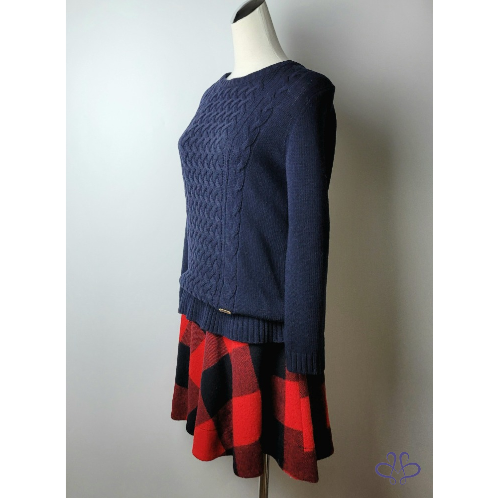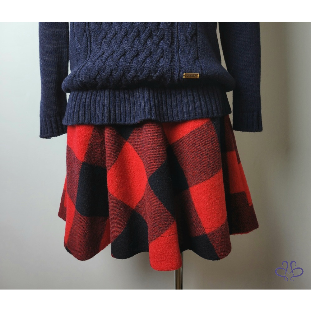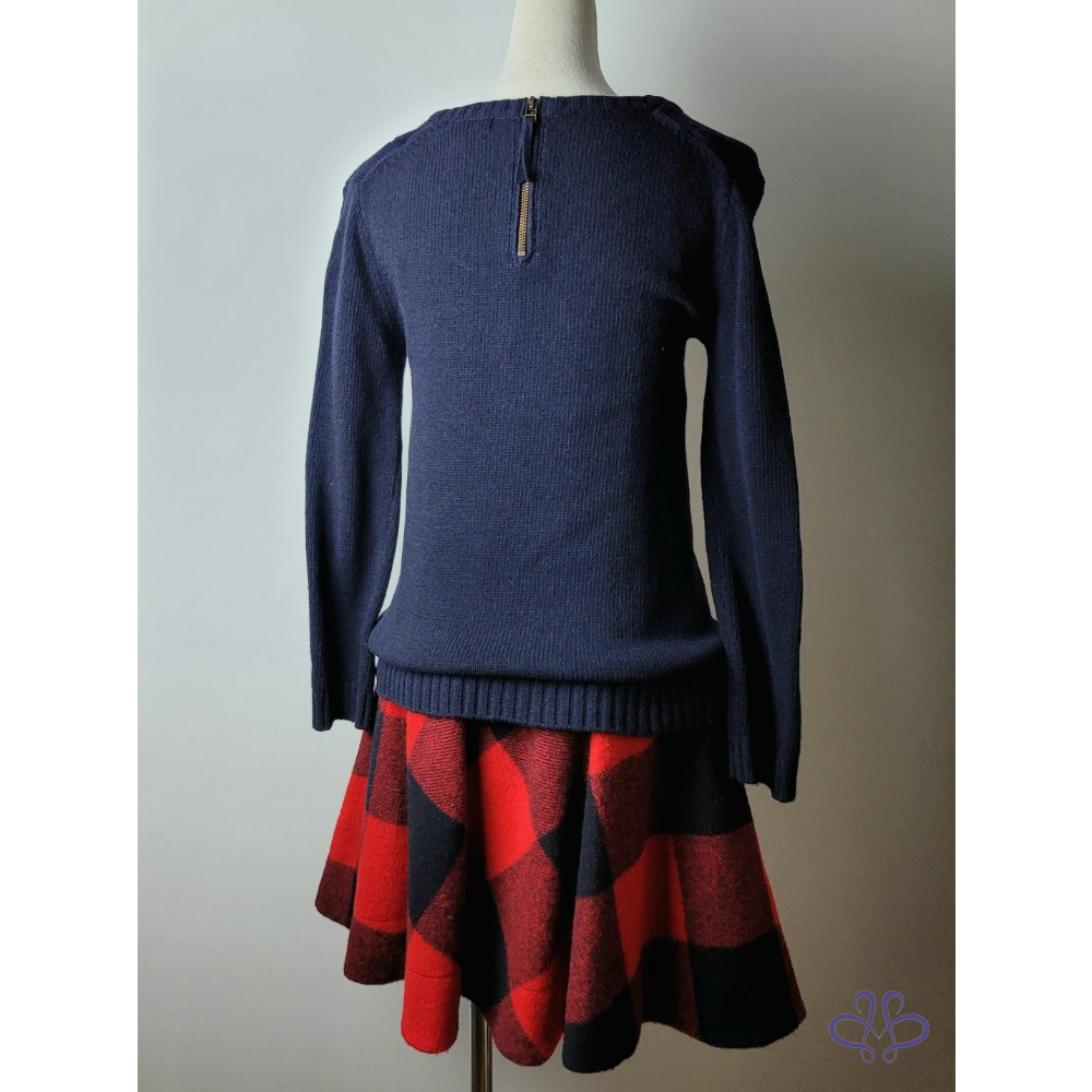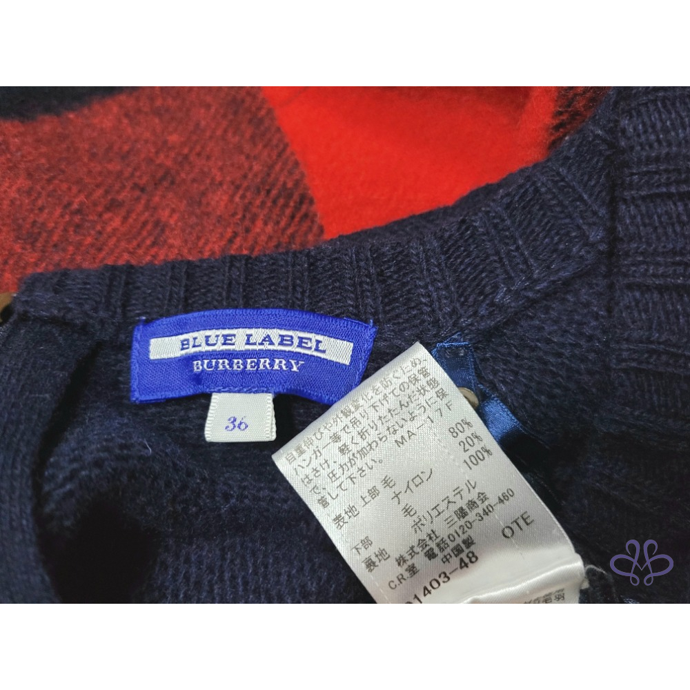 ~BURBERRY深藍長袖毛衣紅格裙洋裝36號