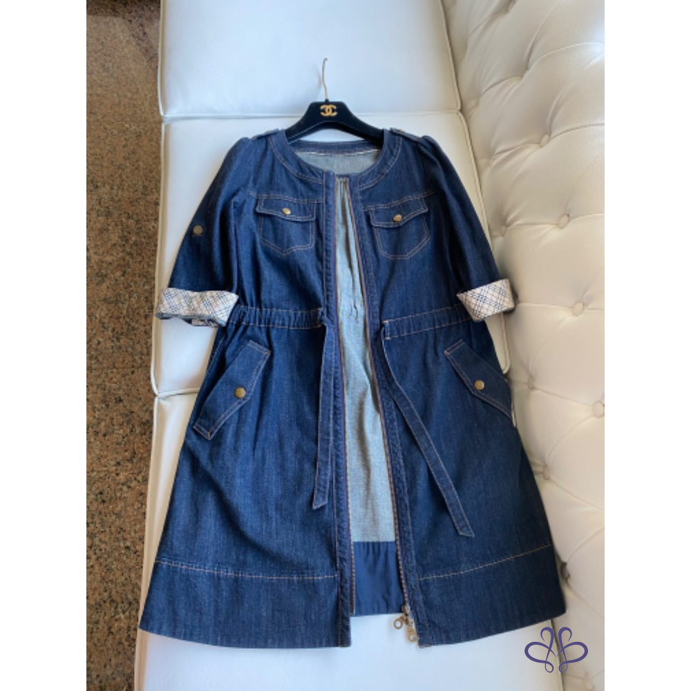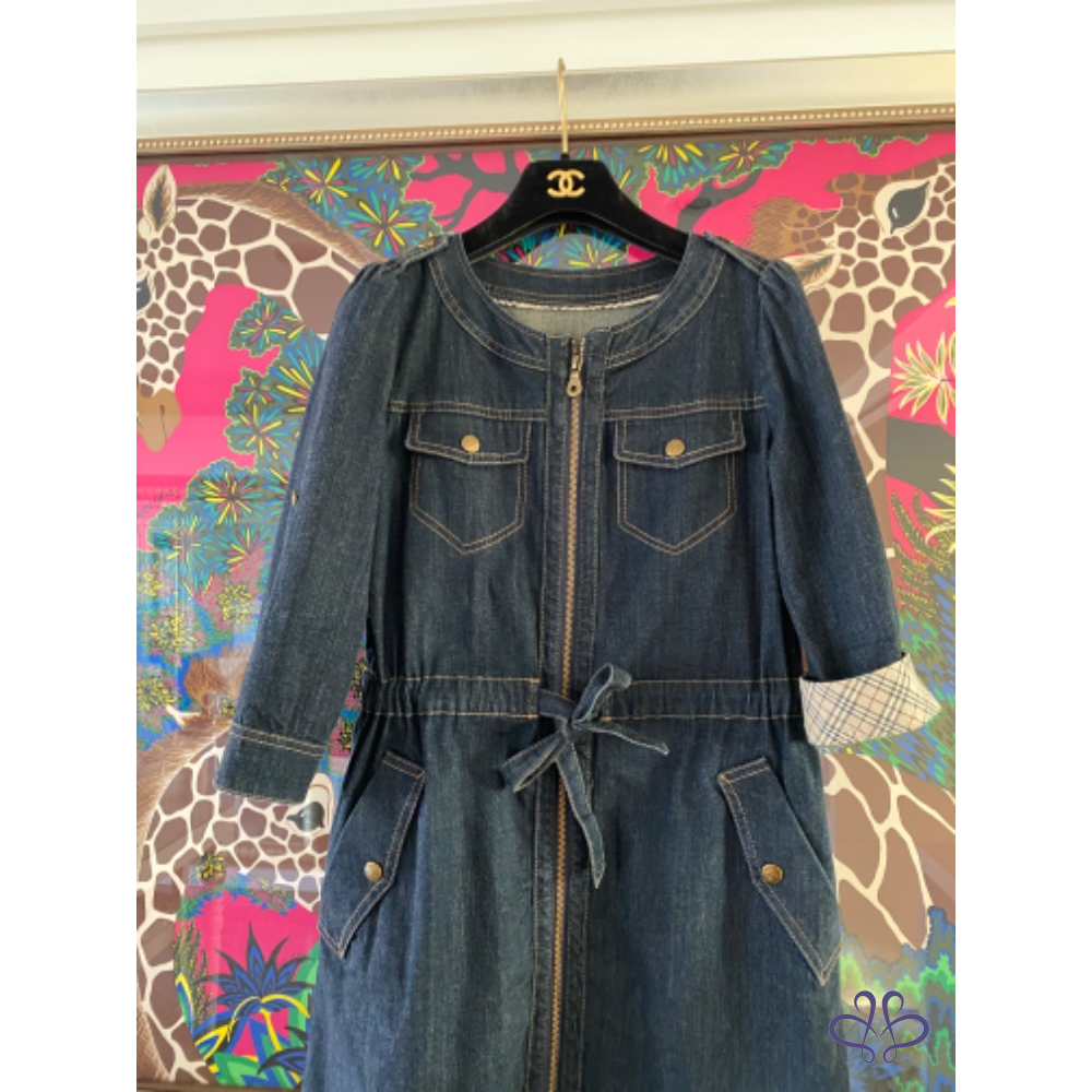 Burberry藍標復古刷色 2way 牛仔長外套 /洋裝