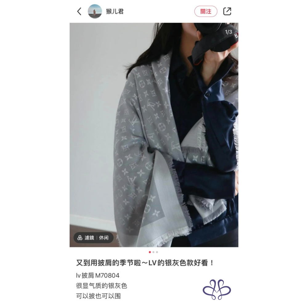 快買條漂亮的圍巾大家都辛苦關了將近三年,最實用的圍巾,最經典的LV monogram大方巾,當披肩跟圍巾都好好看,喜歡的姊妹不要錯過了