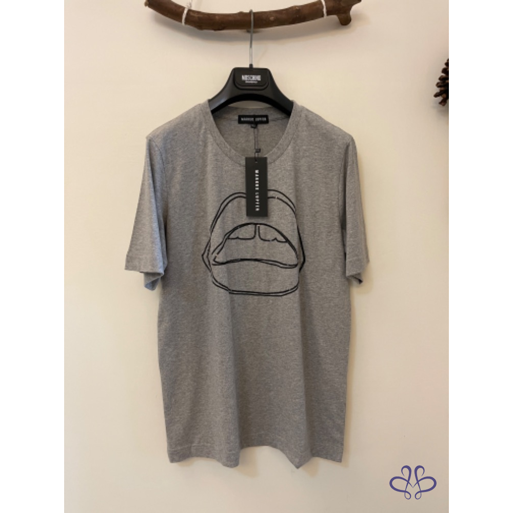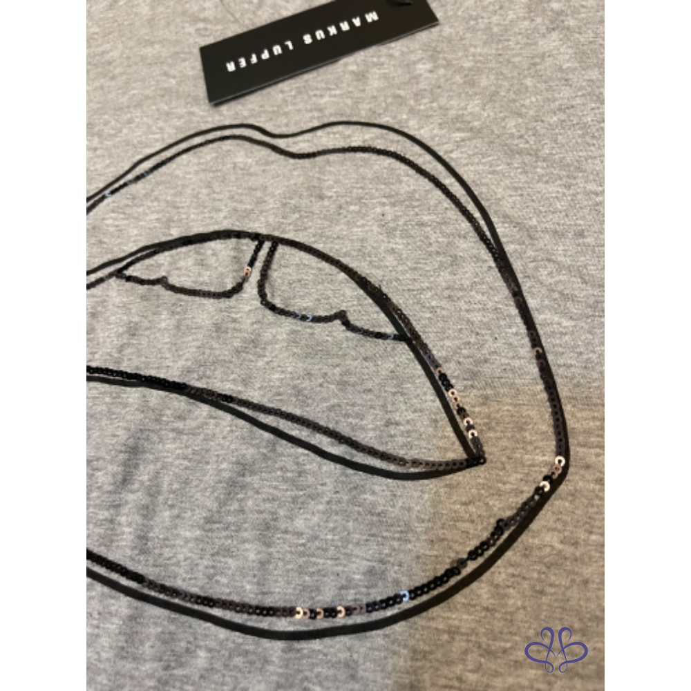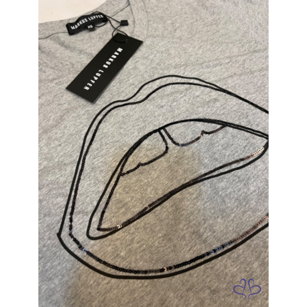 首頁 精品服飾 全新MARKUS LUPFER 灰色塗鴉款亮片唇純棉上衣