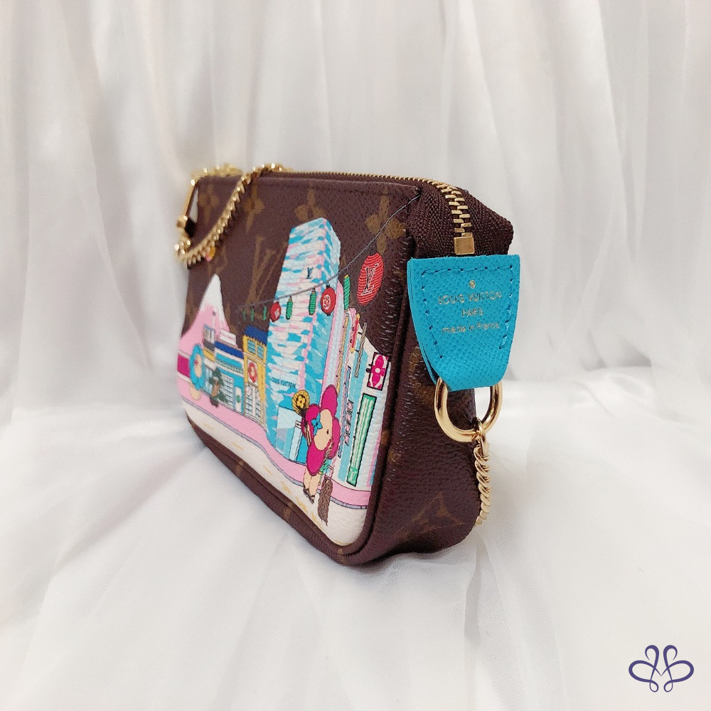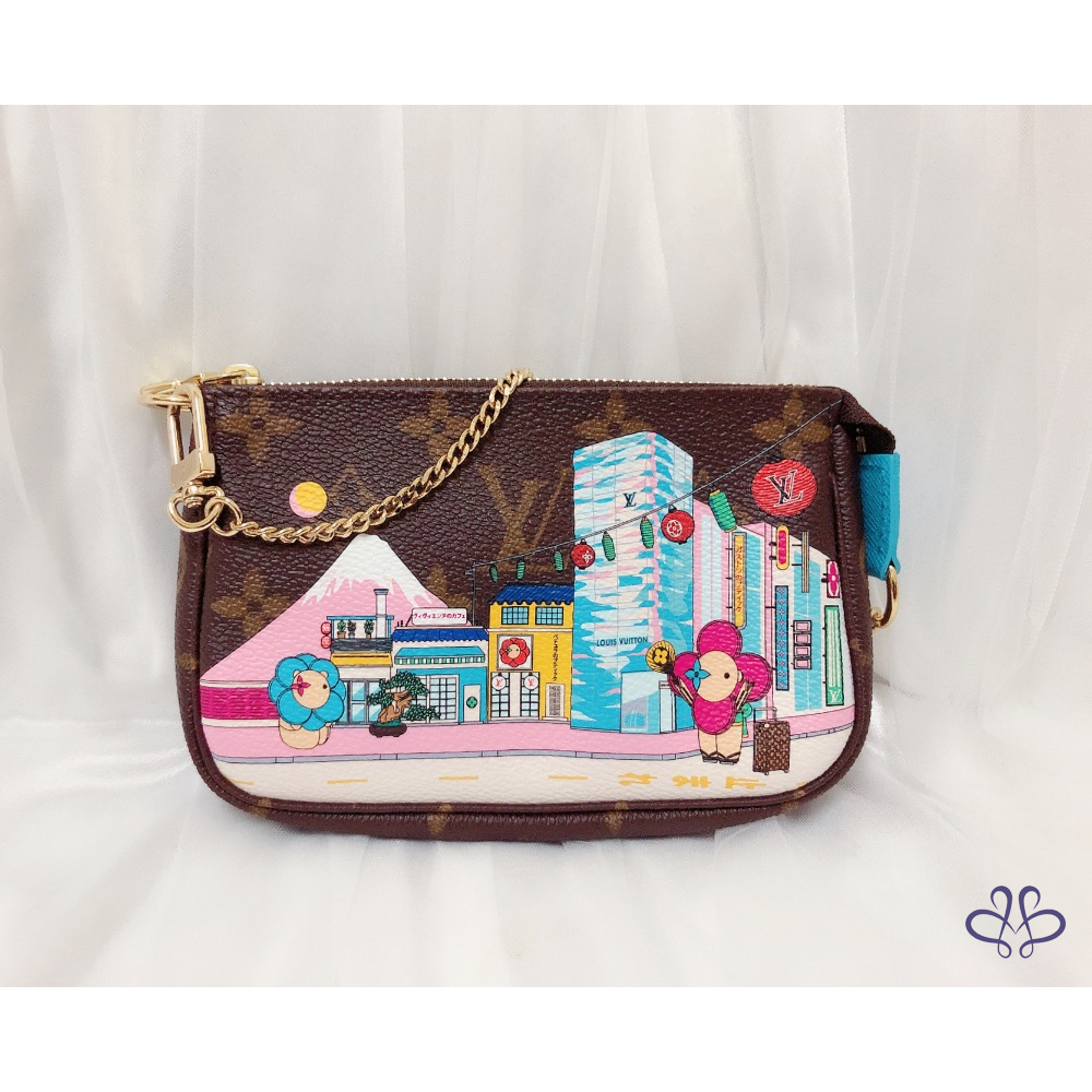 這款Holiday 2022系列的迷你小皮包別具收藏價值,以Monogram帆布製作,充分彰顯路易威登的旅遊精神。設計以富士山為背景,綴有別樹一格的印花圖案,向日本文化致敬,並描繪品牌吉祥物Vivienne於東京精品店前遊玩的情景。這款迷你隨身包設計百搭多變,配以藍色紡織襯裡,是理想的送禮精品。