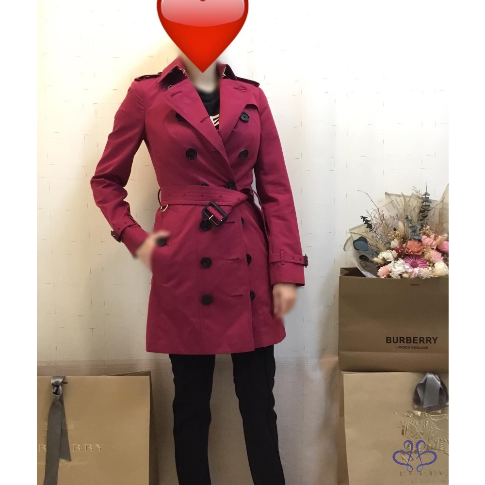 ????BURBERRY英國黑標Sandringham莓果紅風衣