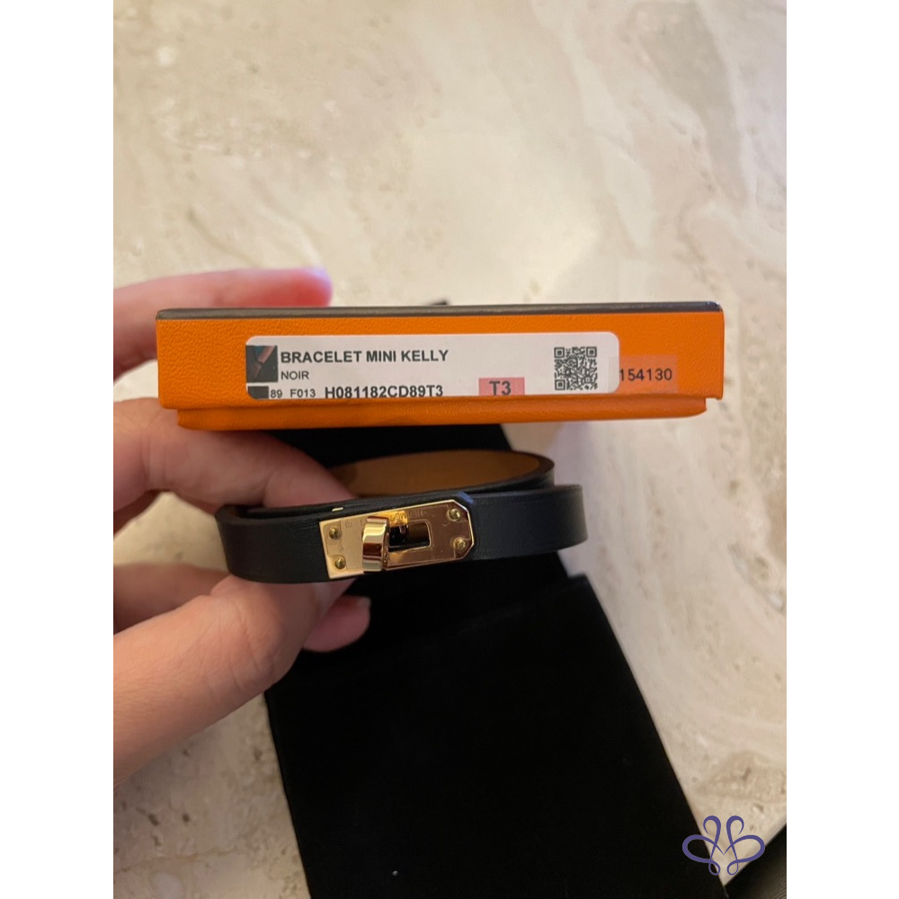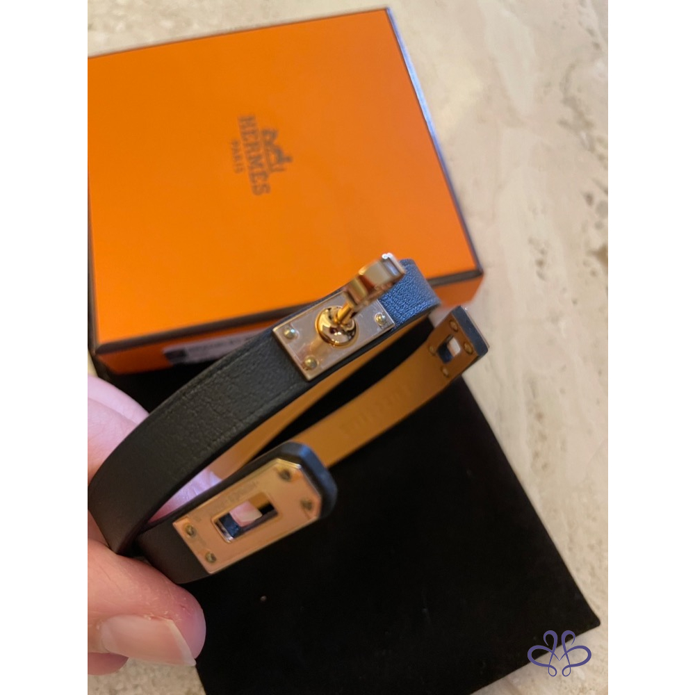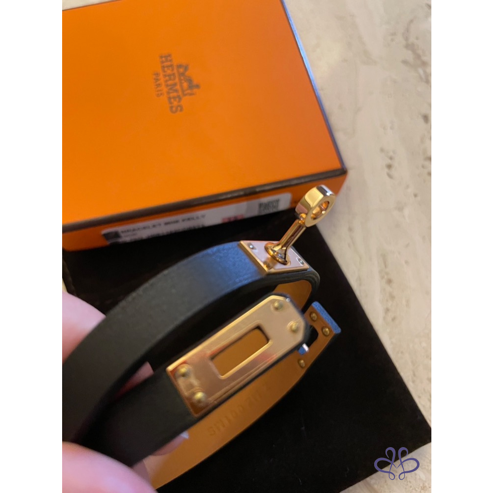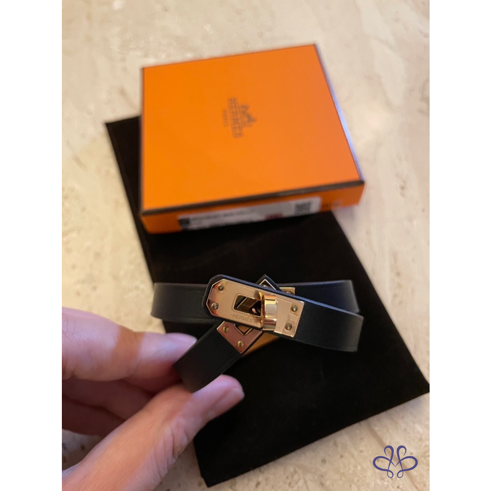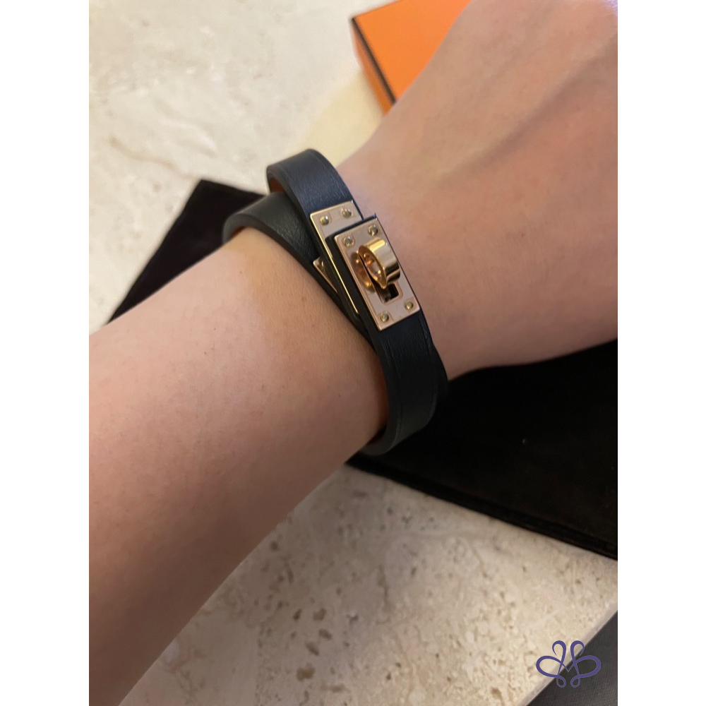 ❤️HERMES~經典黑色玫瑰金Kelly雙圈手環