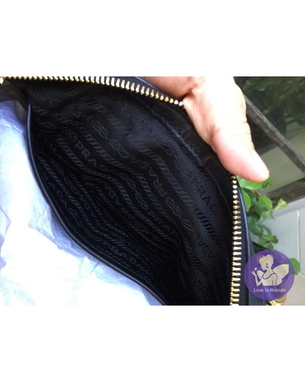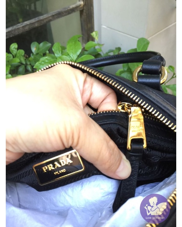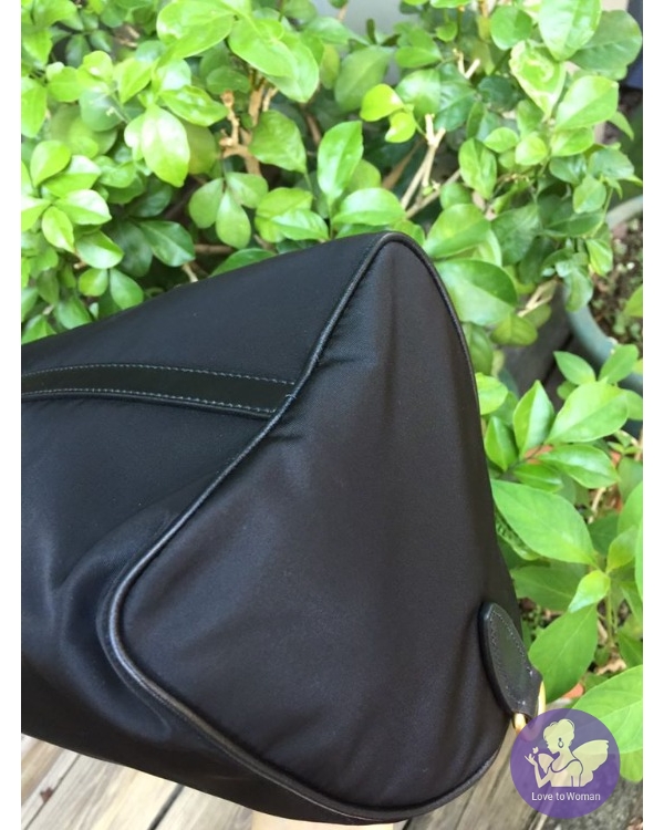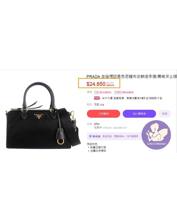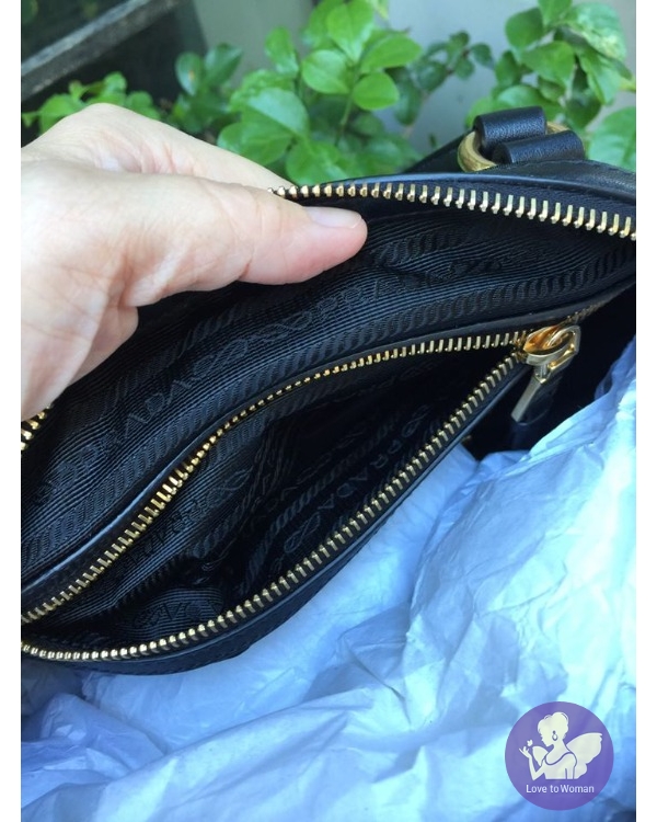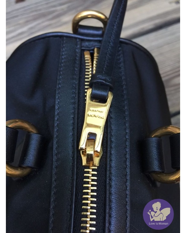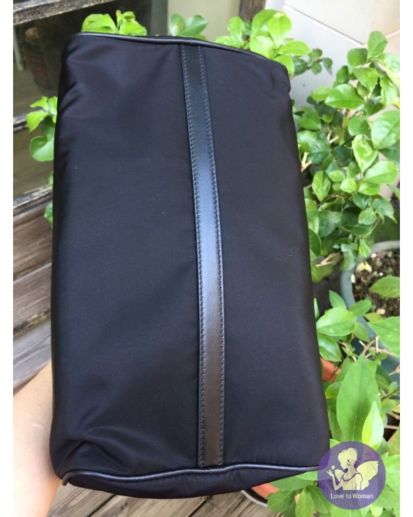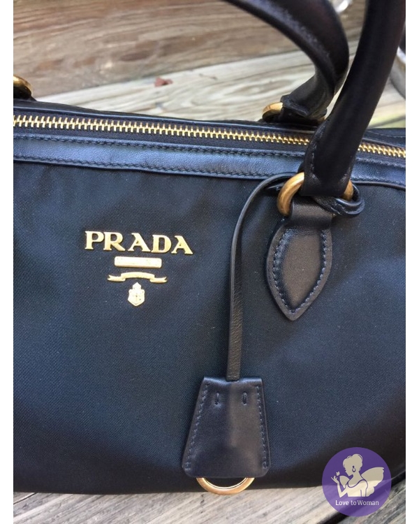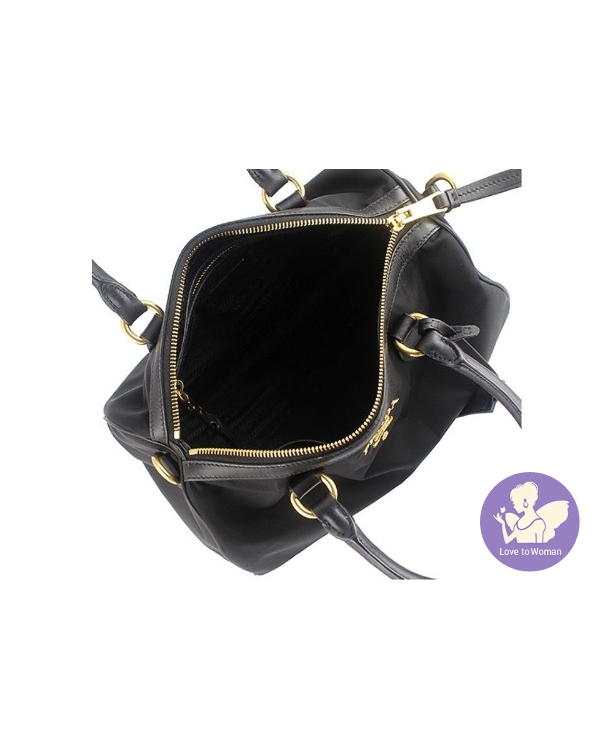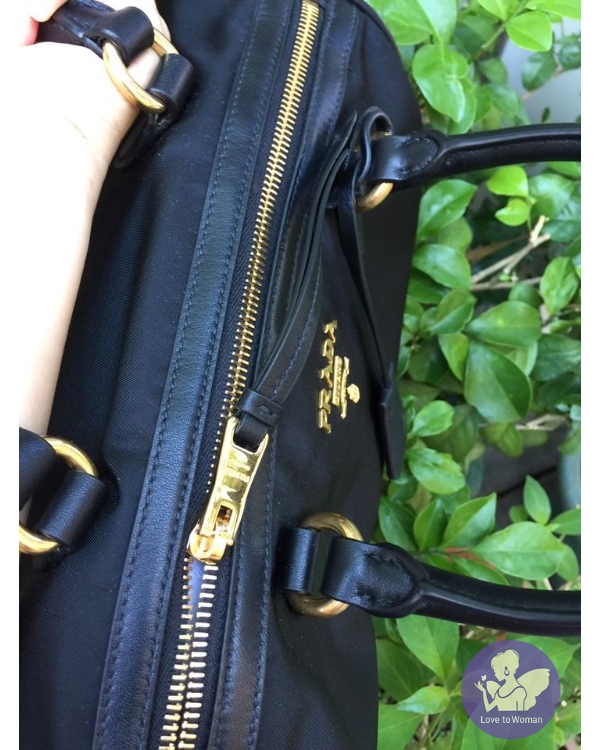 【商品名稱】PRADA浮雕LOGO金屬標誌可斜背尼龍布皮飾邊波士頓包二用包