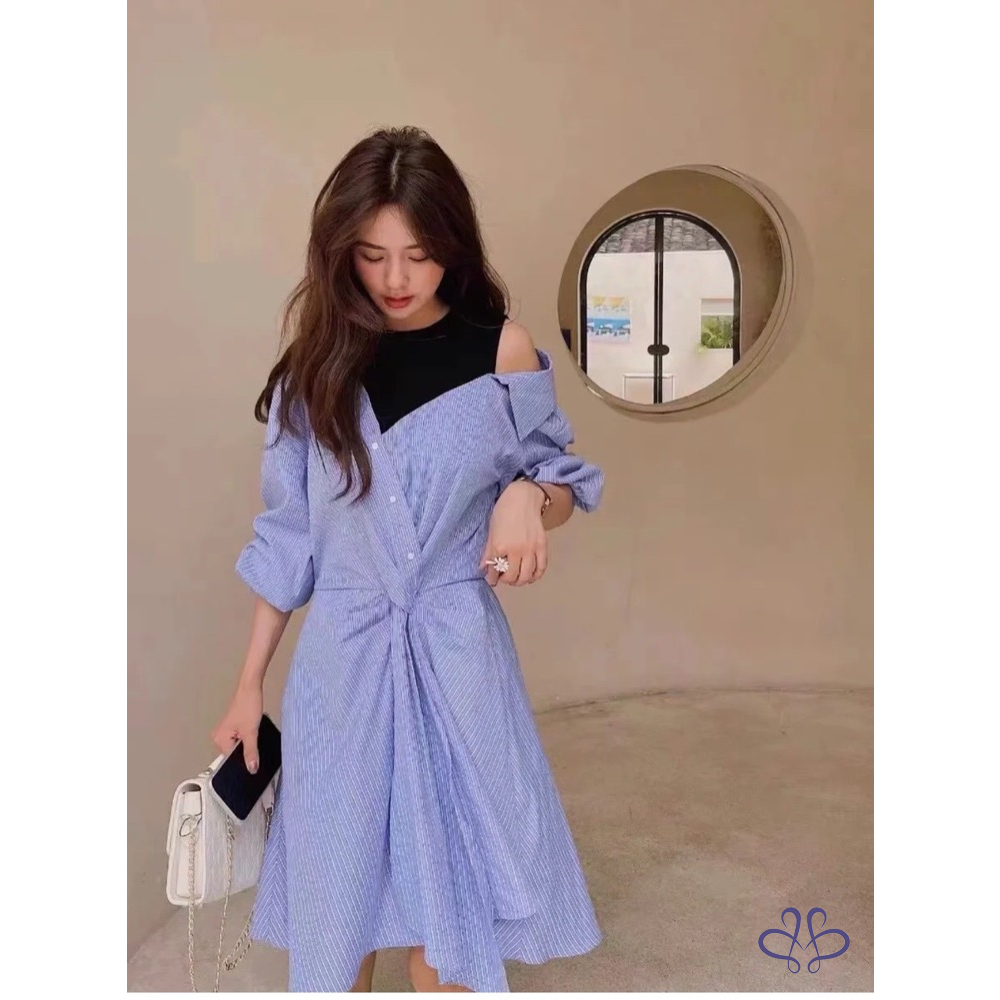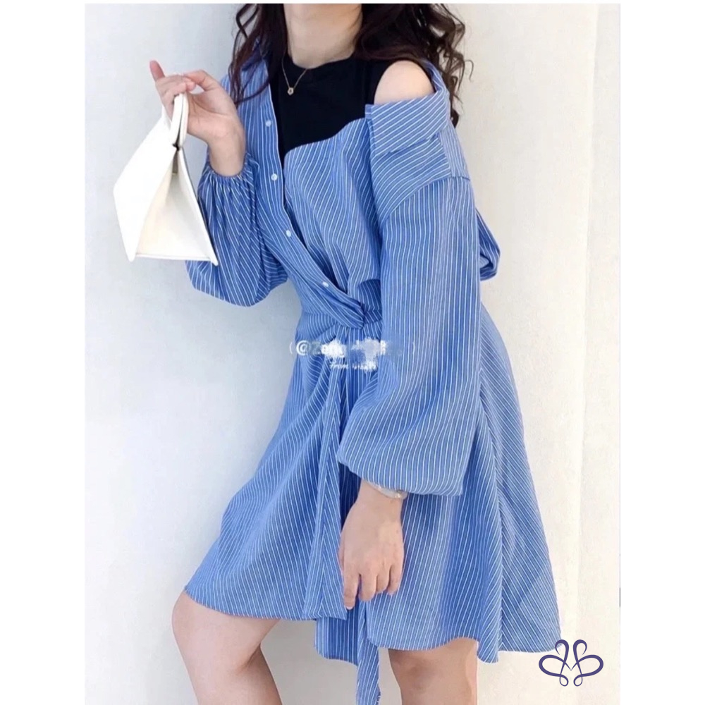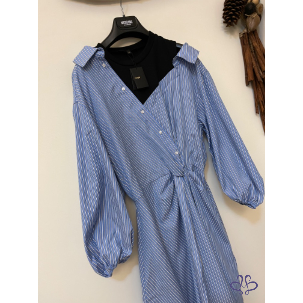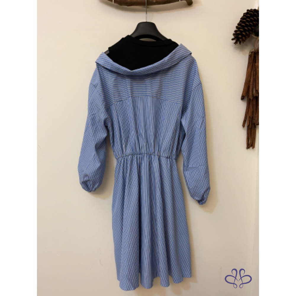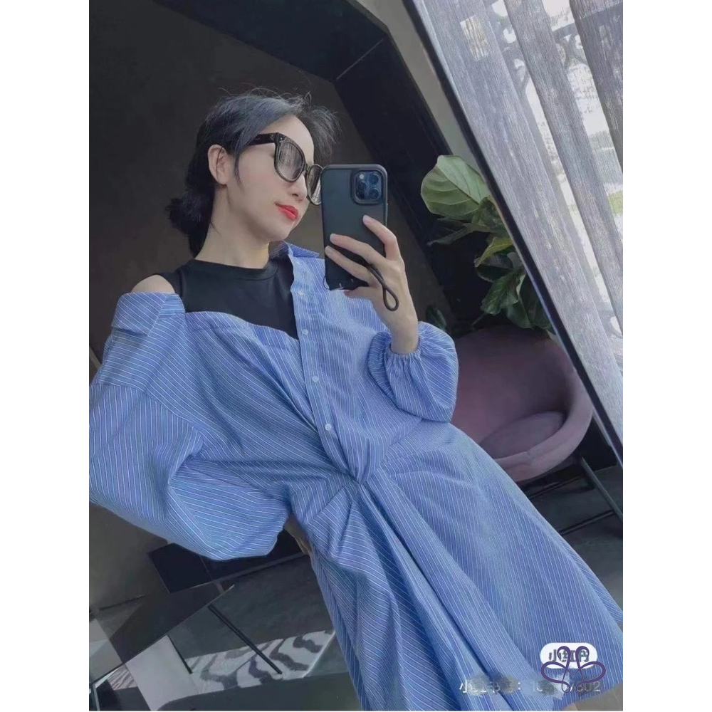 首頁 精品服飾 全新Maje Paris藍色條紋拼接假二件襯衫裙