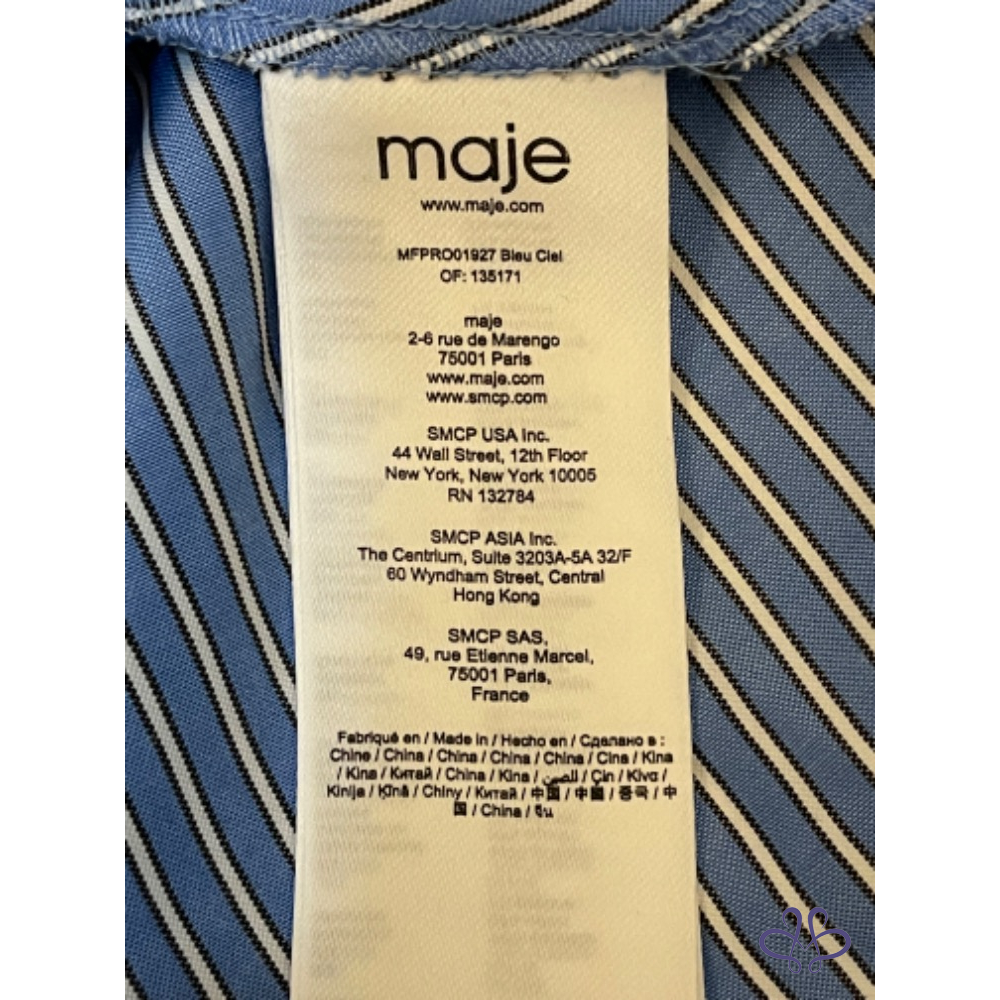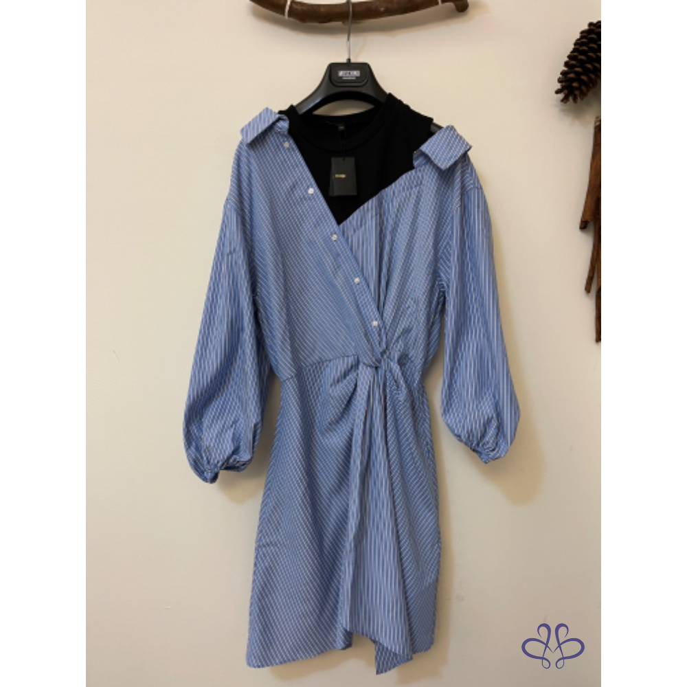 全新Maje Paris藍色條紋拼接假二件襯衫裙
